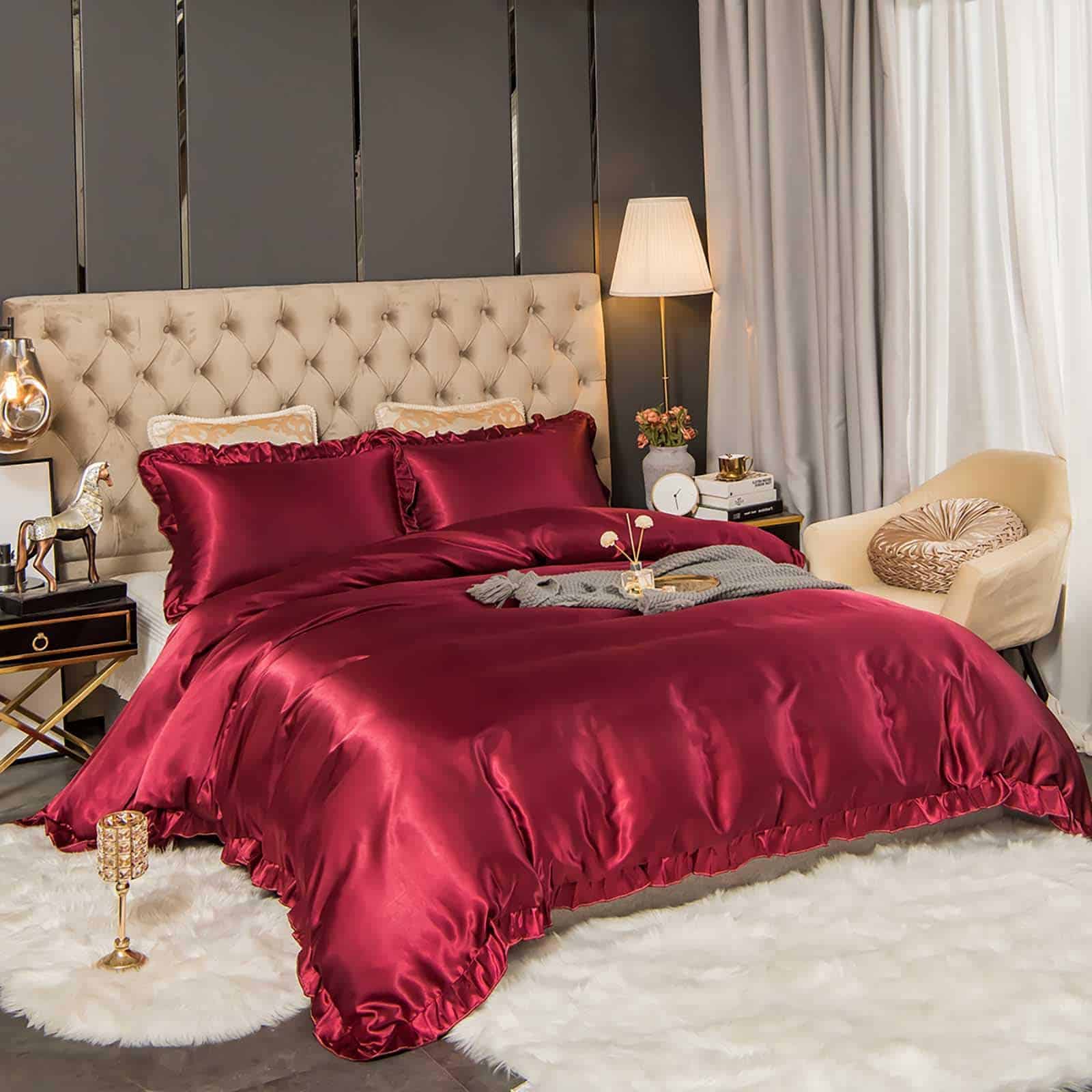 Famanti Juego de Funda de Edredón de Satén de 3 Piezas Juegos de Ropa Estilo Italiano Serie de Lujo Rica Seda Satinada Súper Suave