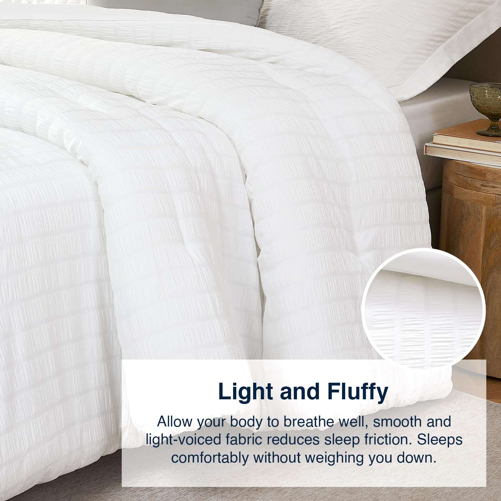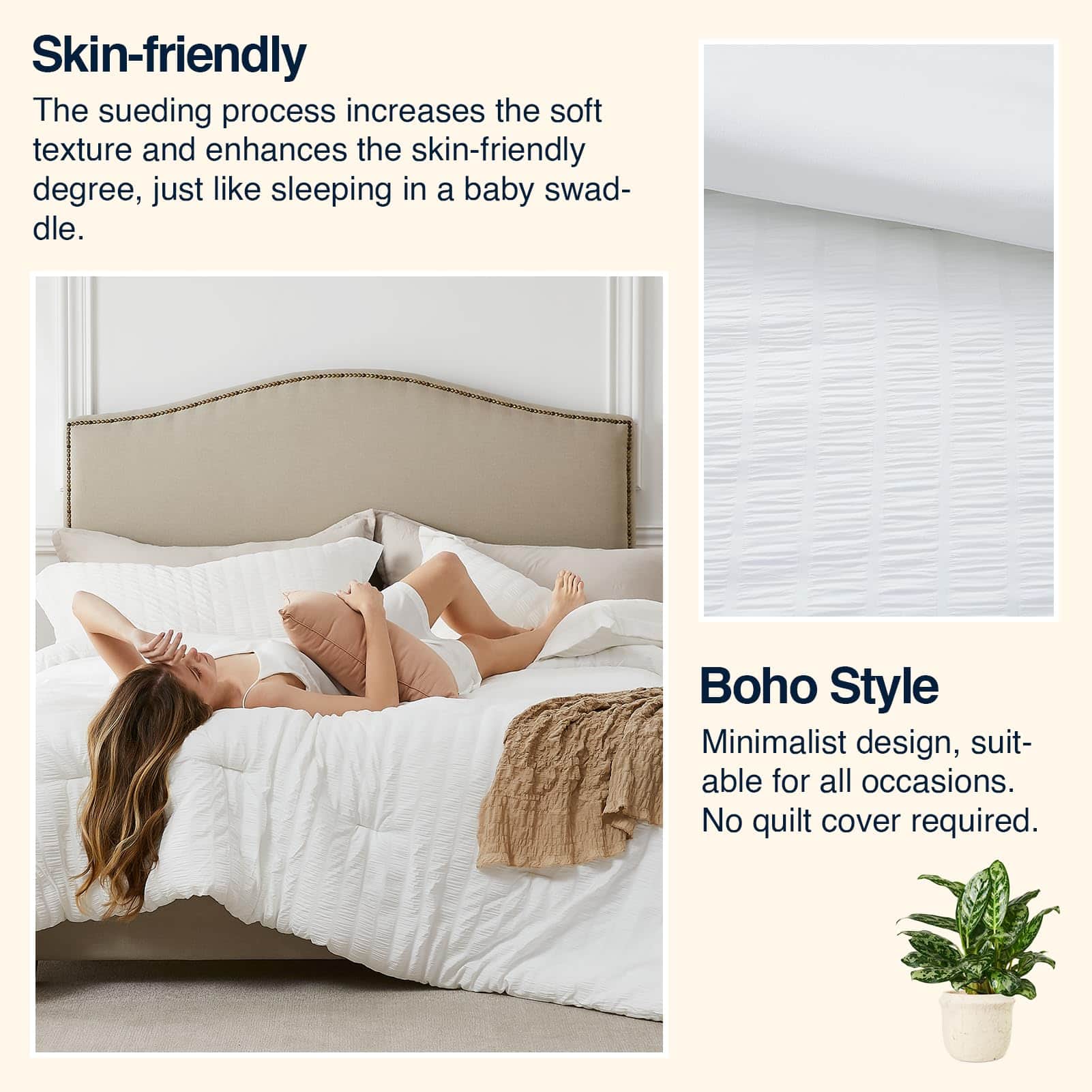 Nuestro juego de edredón blanco de 3 piezas está diseñado para brindarte la máxima comodidad y suavidad. El material de poliéster lavado al 100% es suave al tacto, cómodo de usar y duradero, lo que te permitirá relajarte y descansar en un ambiente acogedor. El edredón tiene un equilibrio perfecto de peso y calidez, siendo transpirable y amigable con la piel para que puedas disfrutar de una sensación de nube mientras duermes. La tecnología de costuras asegura que el relleno interno permanezca en su lugar, proporcionando un calor duradero y consistente. Además, nuestro juego de cama es apto para lavadora, sin encogimiento ni distorsión, lo que facilita su mantenimiento y garantiza un ambiente de sueño limpio. El material suave y duradero también es apto para mascotas, ya que no absorbe fácilmente el pelo de las mascotas y es fácil de limpiar. Adecuado para todas las estaciones, puedes elegir entre diferentes tamaños y combinaciones de colores para que coincidan con tu estilo personal y de hogar. Desde colores claros para primavera y verano hasta colores oscuros para otoño e invierno, nuestro juego de cama te proporciona la versatilidad que necesitas. El diseño innovador de nuestro edredón presenta un diseño microplisado con una textura única que crea un efecto visual de patrón de onda tridimensional. Este tejido agrega puntos destacados de diseño y es fácil de cuidar sin necesidad de planchado, lo que te permite ahorrar tiempo en el desarrugado. Además, el juego de cama viene con un edredón extragrande para cama Queen y dos fundas de almohada. El paquete viene sellado al vacío, por lo que recomendamos lavar el edredón suavemente antes del primer uso para devolverle su esponjosidad. Añade un toque de romance y elegancia a tu habitación con nuestro juego de edredón blanco extragrande para cama Queen. ¡Si tienes alguna pregunta, no dudes en contactarnos!