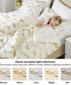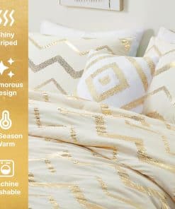 Juego de Edredón Blanco y Dorado Codi, Lindo Juego de Cama