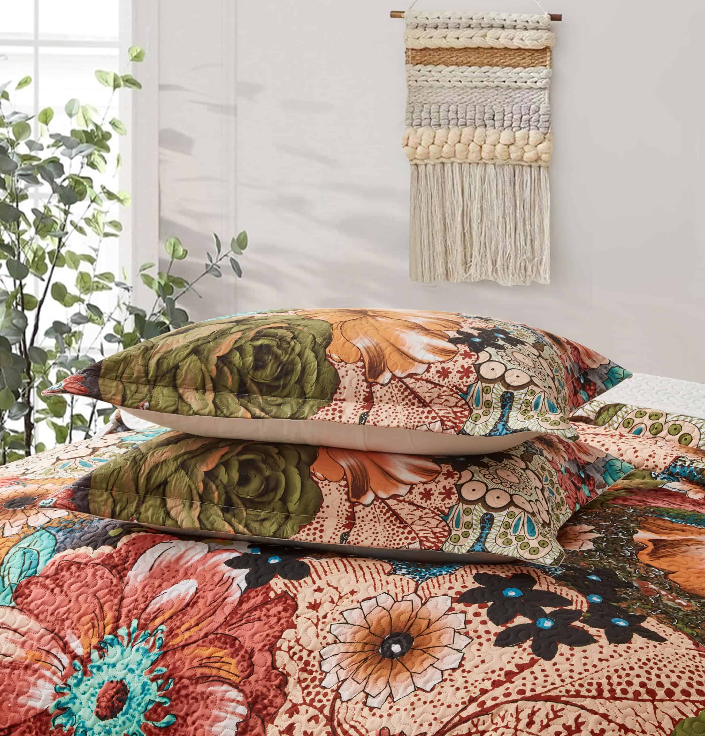 Juego de Edredón Boho Floral de 3 Piezas para Cama