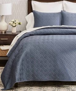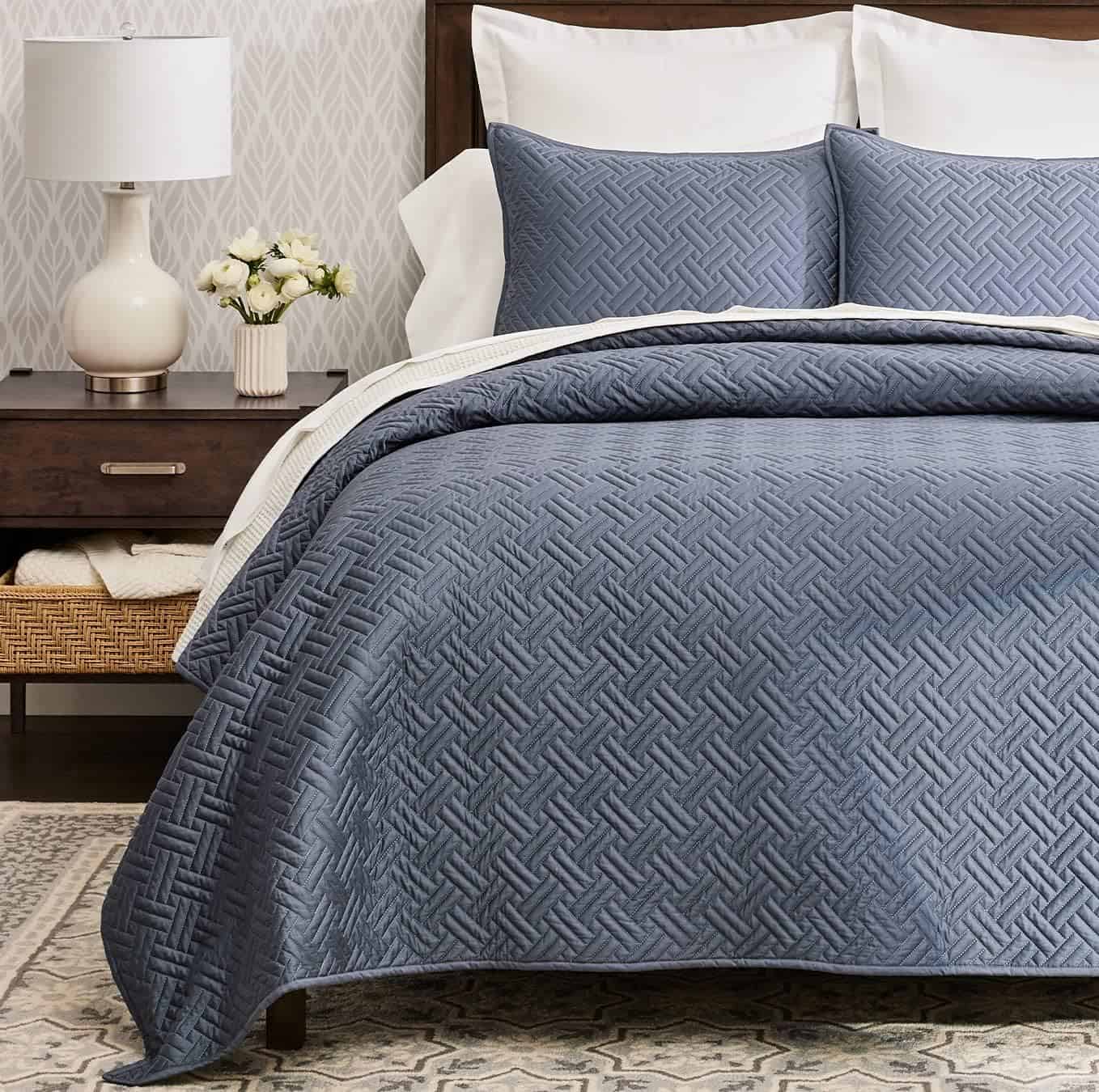 1. JUEGO DE EDREDÓN DE FIRMAS CON TEJIDO DE CANASTA: Suave como la mantequilla y transpirable con un peso verdaderamente de cuatro estaciones, este juego de cama y fundas de almohada de calidad heredada tiene un patrón de tejido de canasta acabado a mano con un elegante brillo suave.