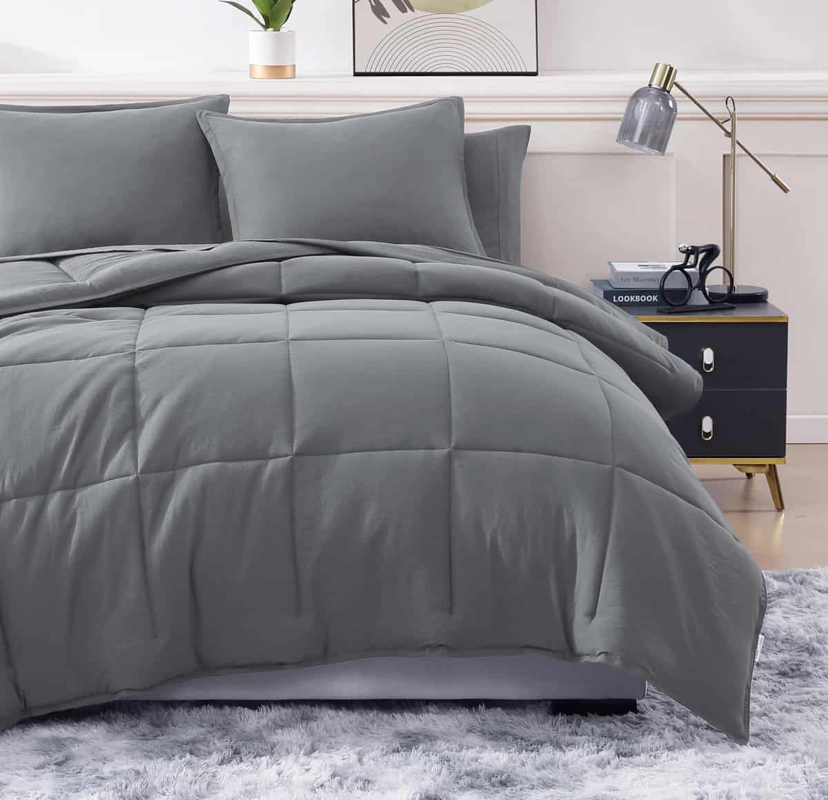 2. Lujo y confort intemporal: Nuestro Juego de Edredón California King Pre-Lavado de 7 Piezas puede adaptarse a cualquier decoración del hogar y añadirá elegancia a cualquier estética del hogar. Disfruta de la suavidad excepcional de nuestras finas sábanas de microfibra 100% pre-lavadas y cojines de almohada y shams. Este set está especialmente diseñado para que tengas un sueño cómodo y reparador.