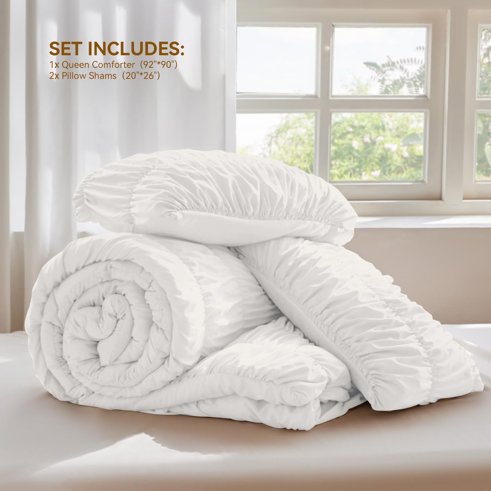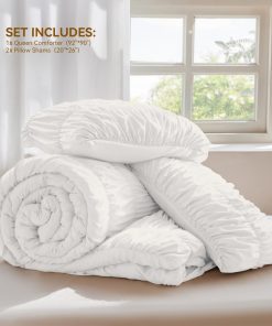 3. Lo que Recibes El juego de edredón Queen incluye 1 edredón (92 x 90 ) con 2 fundas de almohada estándar (20 x 26 ). El acogedor juego de cama es apto para todas las estaciones.