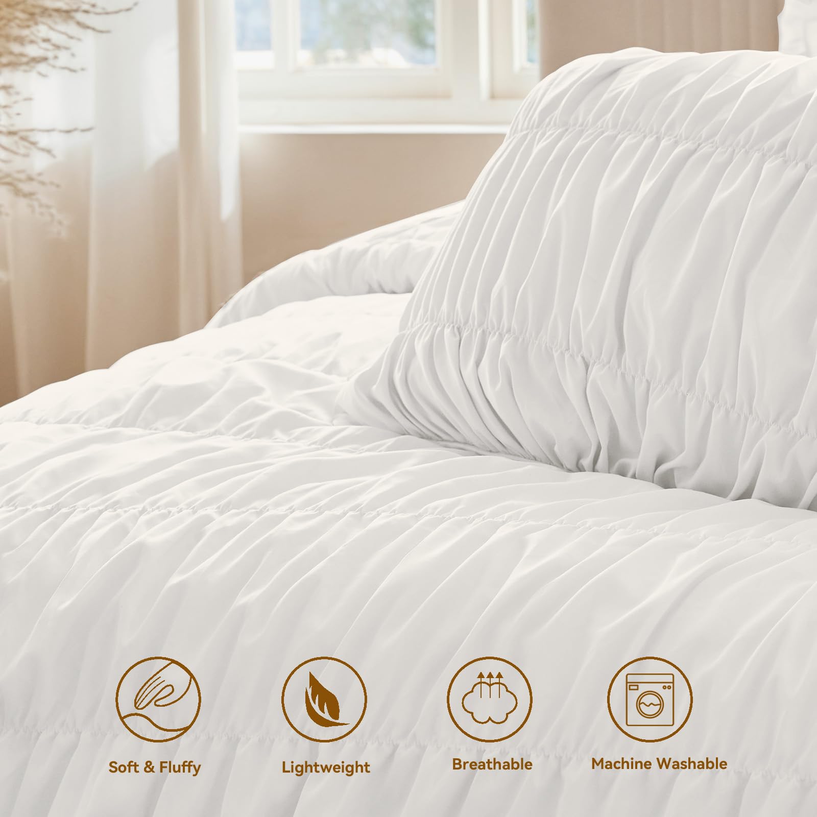 4. Cuidado Fácil Por favor, lavar a máquina suavemente en agua fría, secar colgado o secar en secadora a baja temperatura, sin lejía. Se recomienda secar al sol durante unas horas para que vuelva a estar esponjoso.