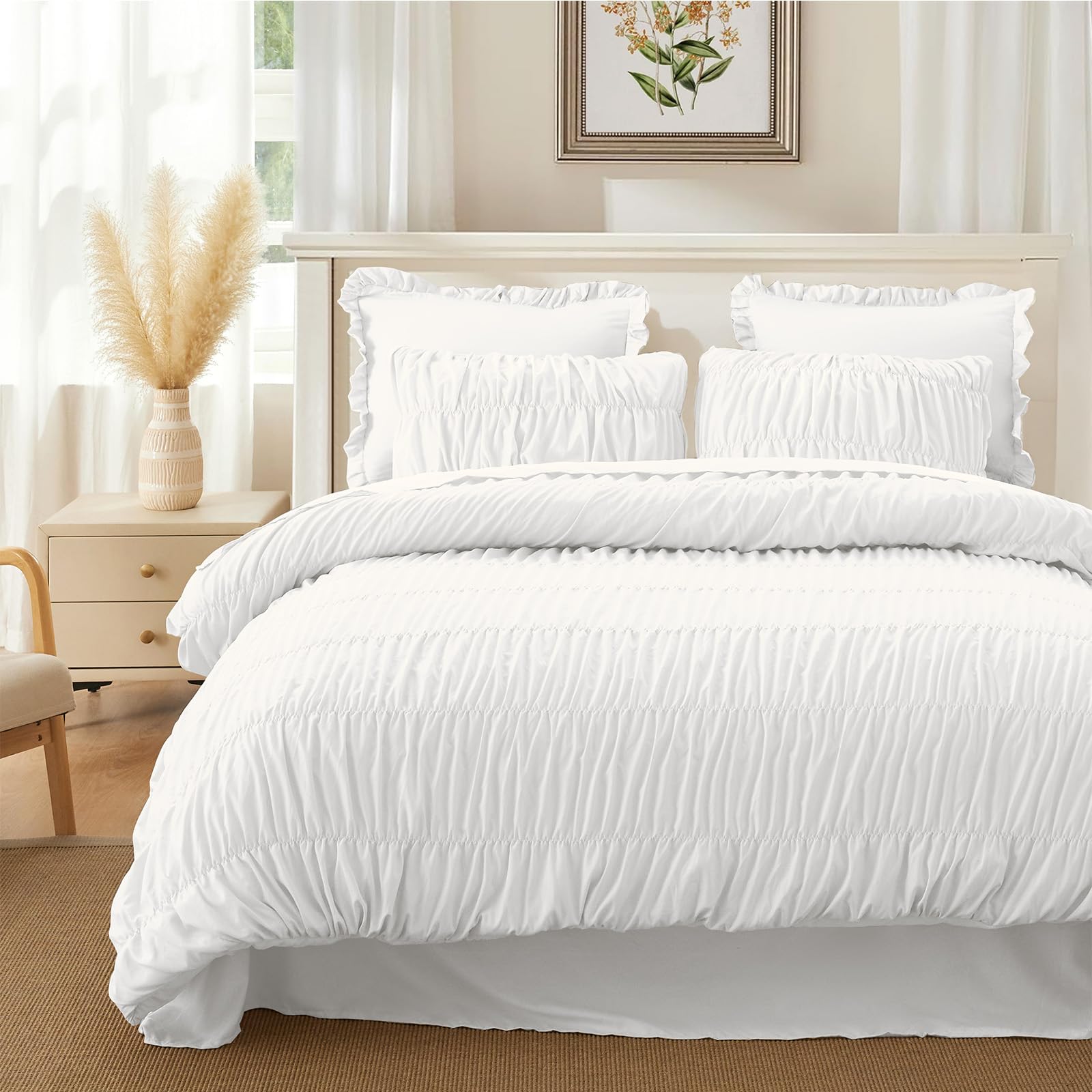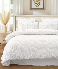 1. Diseño de Volantes Único: El exquisito juego de edredón presenta un diseño único con una textura de volantes natural, creando un ambiente relajado y cómodo que realza la elegancia de tu dormitorio.