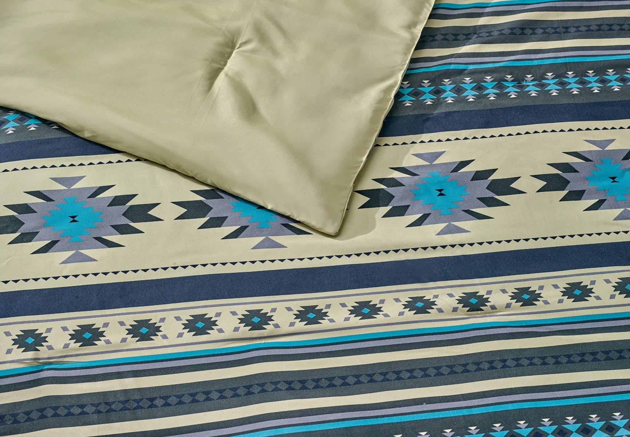 Crea una atmósfera de estilo suroeste en tu dormitorio con el Juego de Edredón Prescott de 3 Piezas de Chezmoi Collection. Este juego incluye 1 edredón y 2 fundas de almohada en tamaño King. El edredón mide 104″ x 92″ y las fundas de almohada miden 20″ x 36″. Con patrones geométricos impresos con tonos de color relajantes, este edredón ofrece una ambientación tranquila y serena. Fabricado en poliéster de microfibra, el edredón es super suave, versátil y ligero, lo que lo hace adecuado para su uso durante todo el año. Además, es fácil de cuidar, ya que se puede lavar a máquina en agua fría, secar a baja temperatura y no usar lejía.