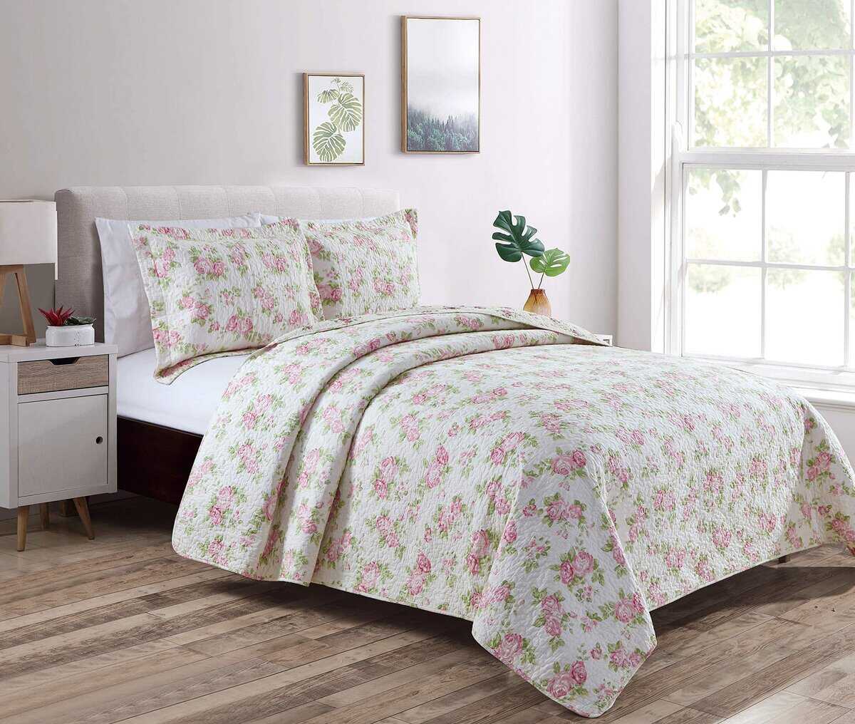 Un juego de edredón único y divertido con estampado floral de rosas rosadas y un estampado floral reversible complementario. Este edredón tradicional y acogedor sirve como un hermoso punto focal en tu dormitorio o habitación de invitados, o como una bonita capa adicional para completar la decoración de tu dormitorio. Hecho con una opción reversible de motivos de hibiscos fucsias en la parte inferior para darle un ambiente más tradicional a tu habitación. Ideal para todas las estaciones, este edredón ligero garantiza comodidad sin sobrecalentamiento, lo que lo hace perfecto para las noches cálidas de verano o como una capa adicional en el invierno. Experimenta la mezcla perfecta de estilo y comodidad con este exquisito juego de edredón.