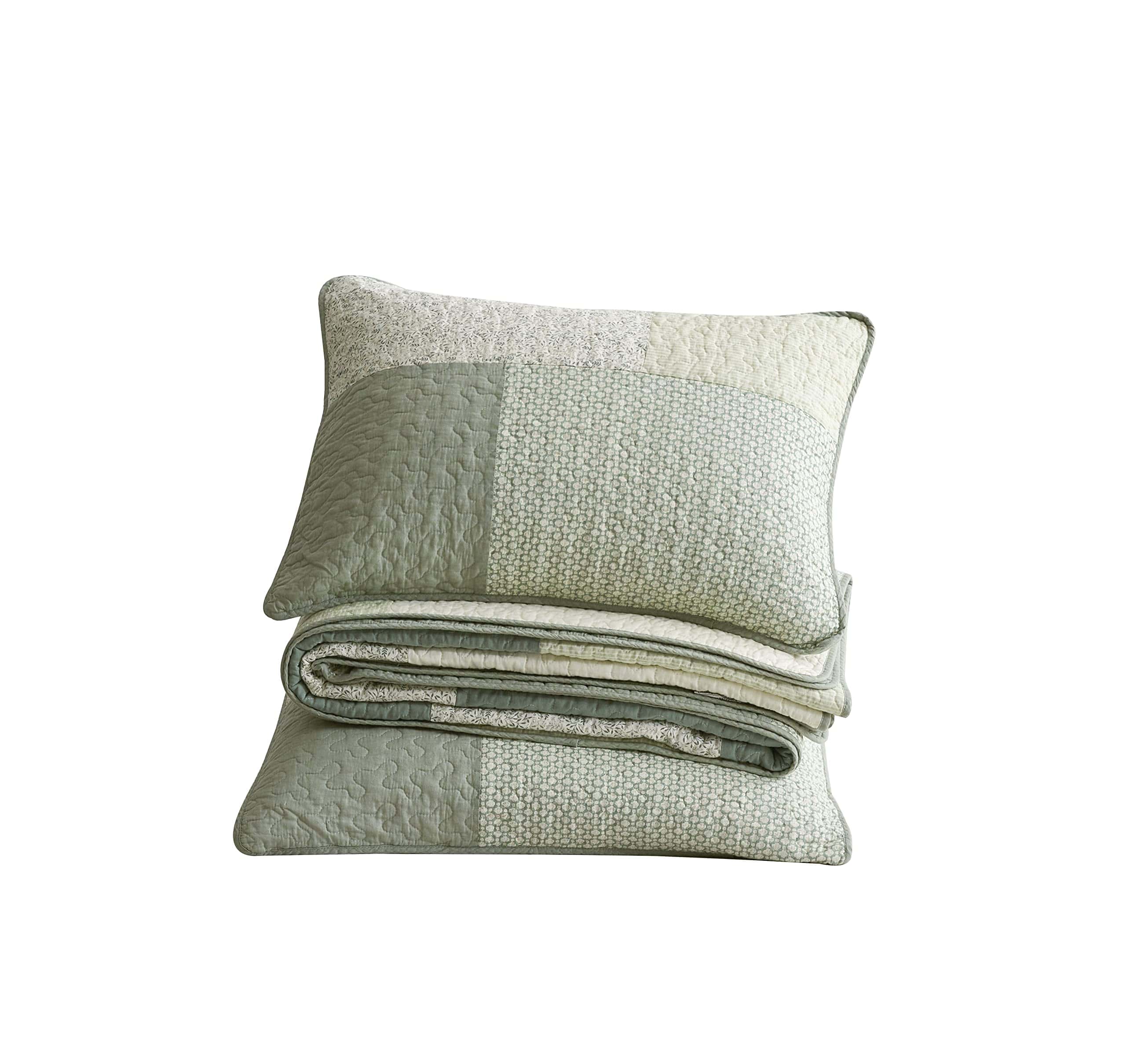 Un juego de edredón único y encantador que presenta diversos parches florales y sólidos en diseños elegantes. Este acogedor edredón de patchwork sirve como un hermoso punto focal en tu dormitorio o habitación de invitados, o una bonita capa adicional para completar la decoración de tu dormitorio. Hecho con opción reversible con el reverso de color verde sólido. La combinación de colores de cada patchwork agrega un elemento complementario animado y confortable en tu dormitorio, adecuado para cualquier decoración. Ligero pero no falta de calor, proporcionando comodidad transpirable para uso durante todo el año, el edredón está hecho de 100% algodón y stone-washed para una sensación súper suave.