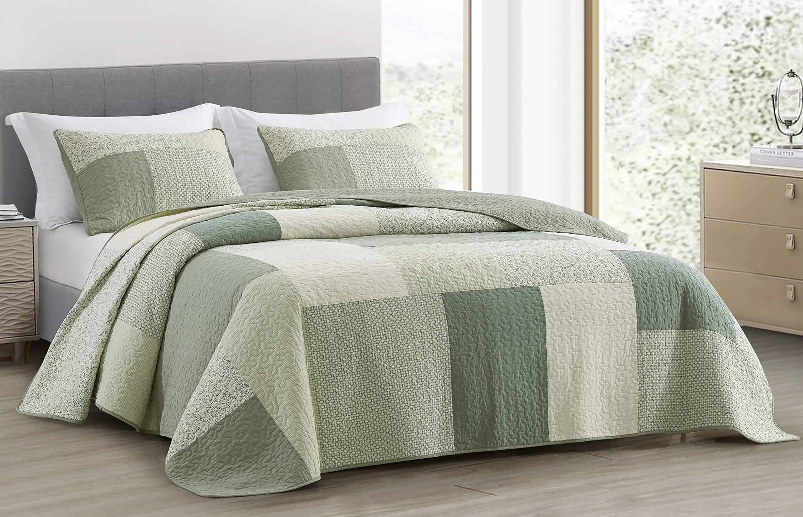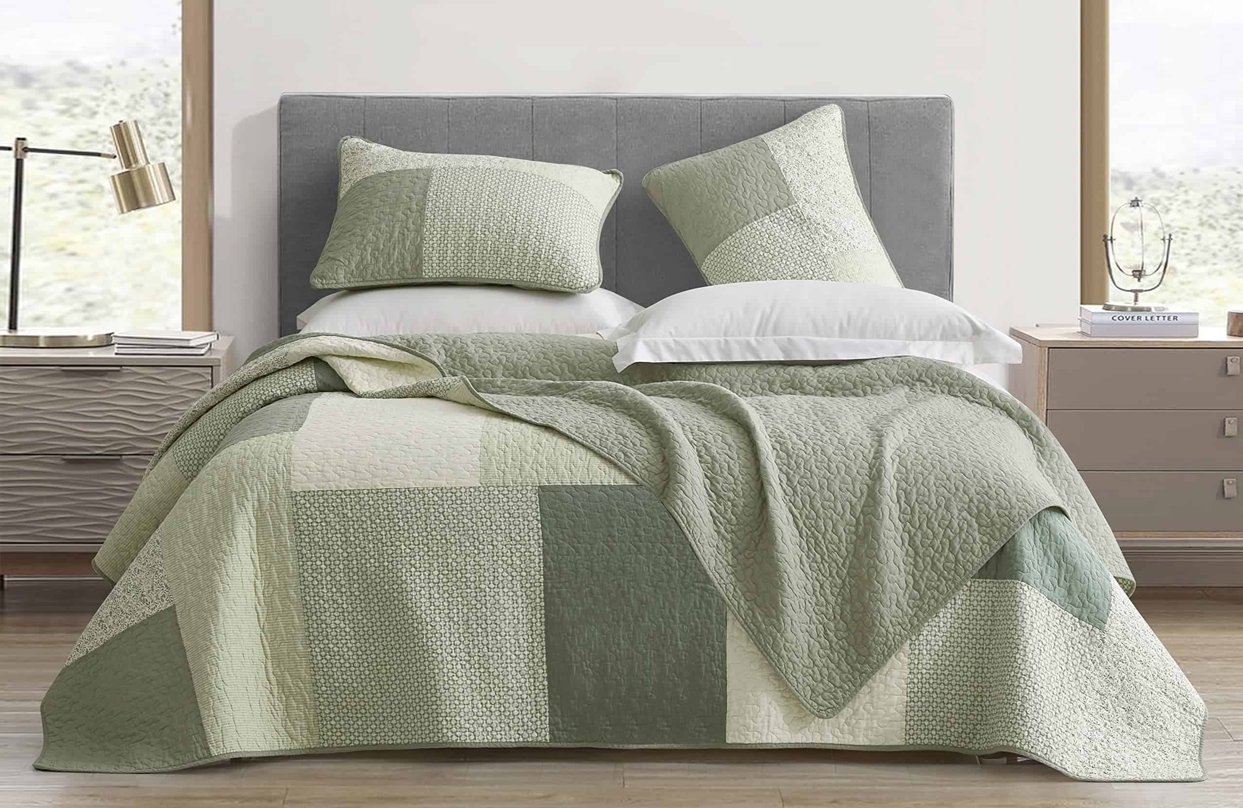 Juego de Edredón Chezmoi Collection Elm de 3 Piezas – Verde