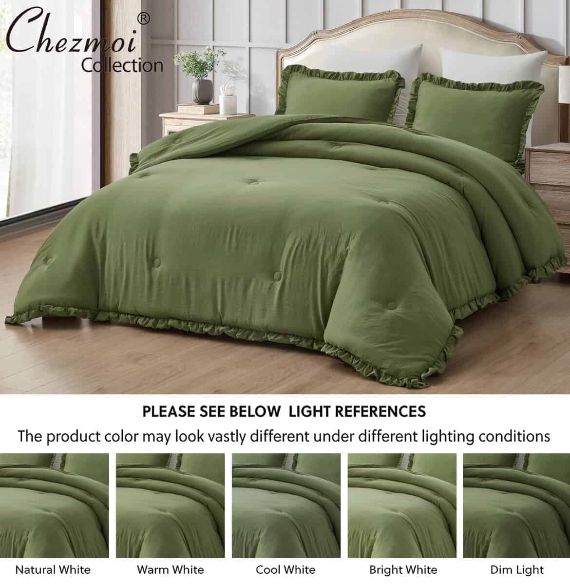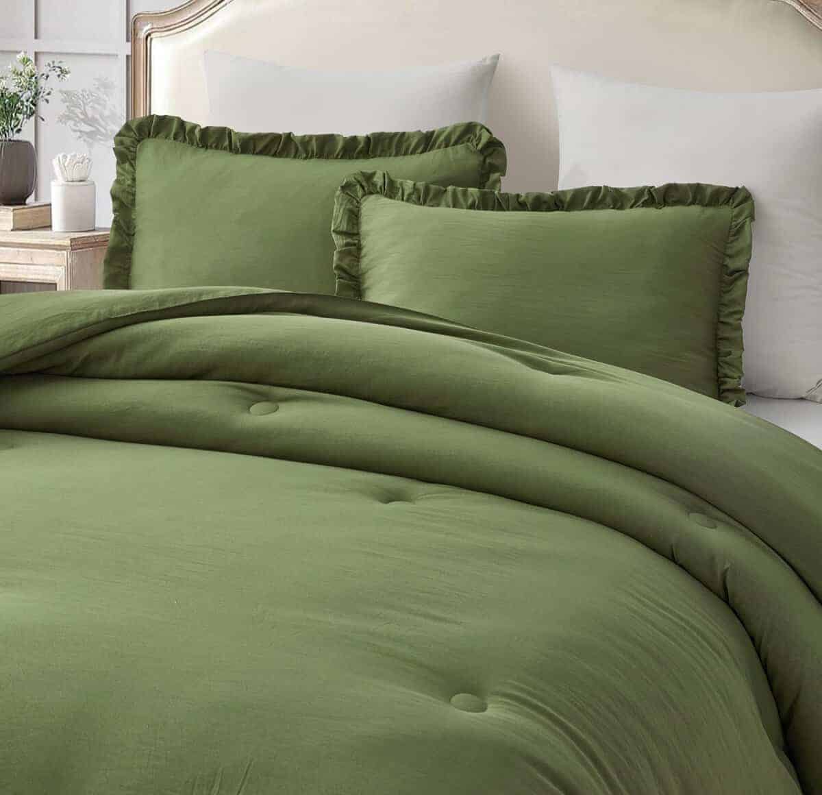 Juego de edredón Chezmoi Collection Nora verde -Verde oliva