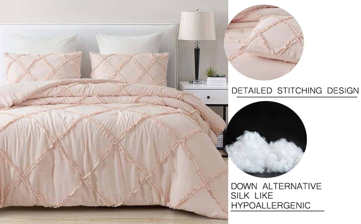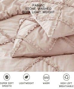 Transforma tu dormitorio de una manera sofisticada y lujosa con este acogedor juego de ropa de cama. Hecho con atención meticulosa al detalle, este edredón es el epítome de la comodidad y la elegancia, proporcionando un ambiente acogedor e invitante para tu santuario de sueño. El atractivo patrón de acolchado de diamantes complementado con ribetes de volantes agrega un toque delicado, otorgando un aire de sofisticación a la apariencia del edredón que te hace sentir como en casa. La tela está lavada a piedra lo que le da una apariencia única y encantadoramente desgastada, creando una estética vintage que complementa sin esfuerzo diferentes estilos de decoración. Ofreciendo comodidad diaria de una manera elegante con una sensación suave y sedosa contra tu piel, haciéndolo un placer acurrucarse durante las noches más frías. El diseño ligero pero acogedor garantiza un calor óptimo sin el peso, permitiéndote disfrutar de un sueño reparador durante todo el año. El material de microfibra resiste las arrugas, el desvanecimiento y el encogimiento, asegurando que el edredón mantenga su apariencia prístina y su calidad excepcional durante años. Disponible en una gama de colores atemporales, nuestro Edredón de Microfibra Lavada de Piedra Vivian con Patrón Acolchado de Ribetes de Diamantes es la adición perfecta a cualquier dormitorio que busque un toque de encanto vintage shabby chic. Ya sea que estés decorando una suite principal, una habitación de invitados o incluso una acogedora cabaña, este edredón mejora sin esfuerzo la estética general, creando un santuario acogedor y elegante para el descanso y la relajación. Experimenta la mezcla perfecta de encanto vintage y funcionalidad moderna, y transforma tu dormitorio en un refugio con este juego de edredón!