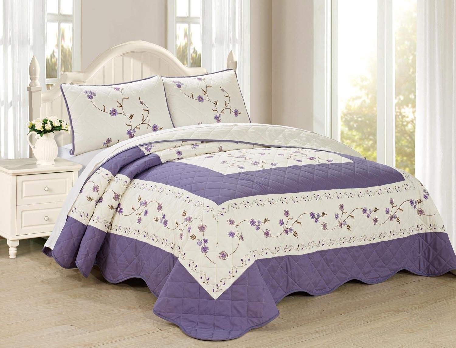 Juego de Edredón/Colcha Bordado Floral de 6 Piezas de All
