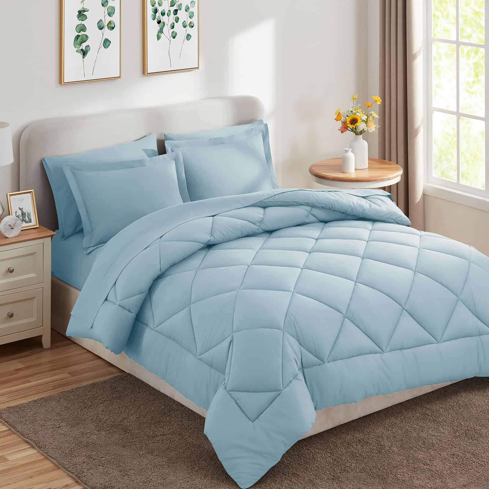 Juego de Edredón Completo CozyLux con Sábanas 7 -Azul Claro