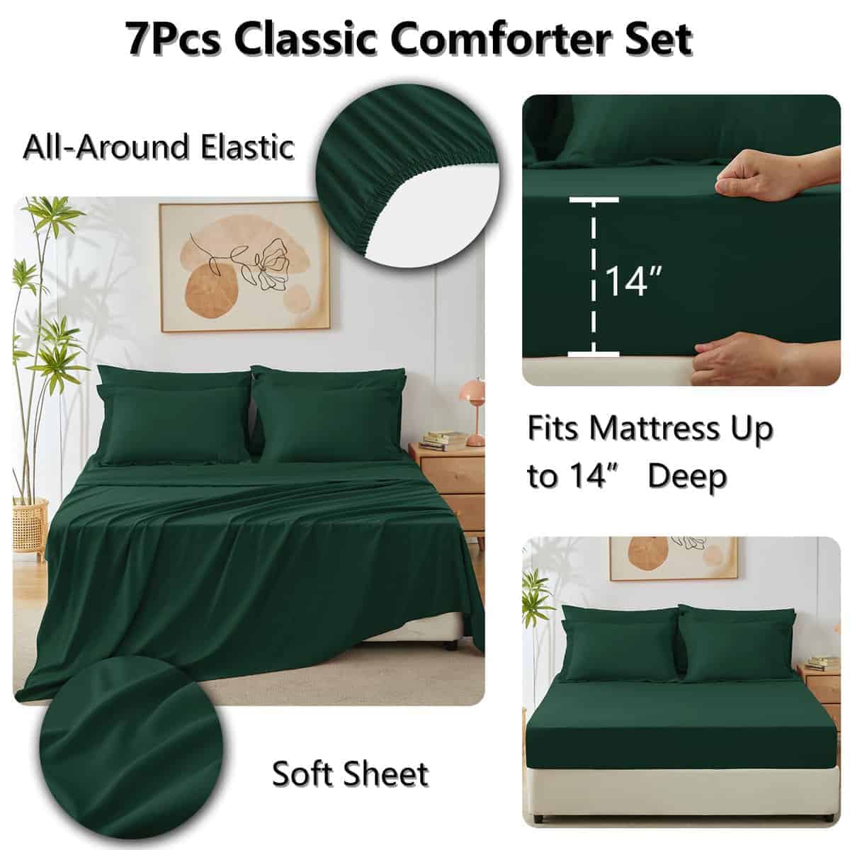 Juego de Edredón Completo CozyLux con Sábanas 7 -Verde Esmer