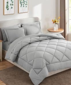 Los juegos de edredón completo de CozyLux son la elección perfecta para aquellos que buscan comodidad y estilo en su dormitorio. Con su tela de microfibra premium suave y transpirable, te garantiza un descanso fabuloso por la noche. El edredón está relleno con microfibra alternativa extremadamente suave, ideal para aquellos con alergias a plumas de ganso. El diseño elaborado incluye una sábana ajustable con bolsillo elástico profundo que se adapta a un colchón de hasta 14″ de profundidad. El edredón cuenta con un acolchado en cajas resistente que ofrece una apariencia sofisticada junto con simplicidad y también mantiene el relleno estable en el interior.