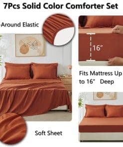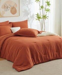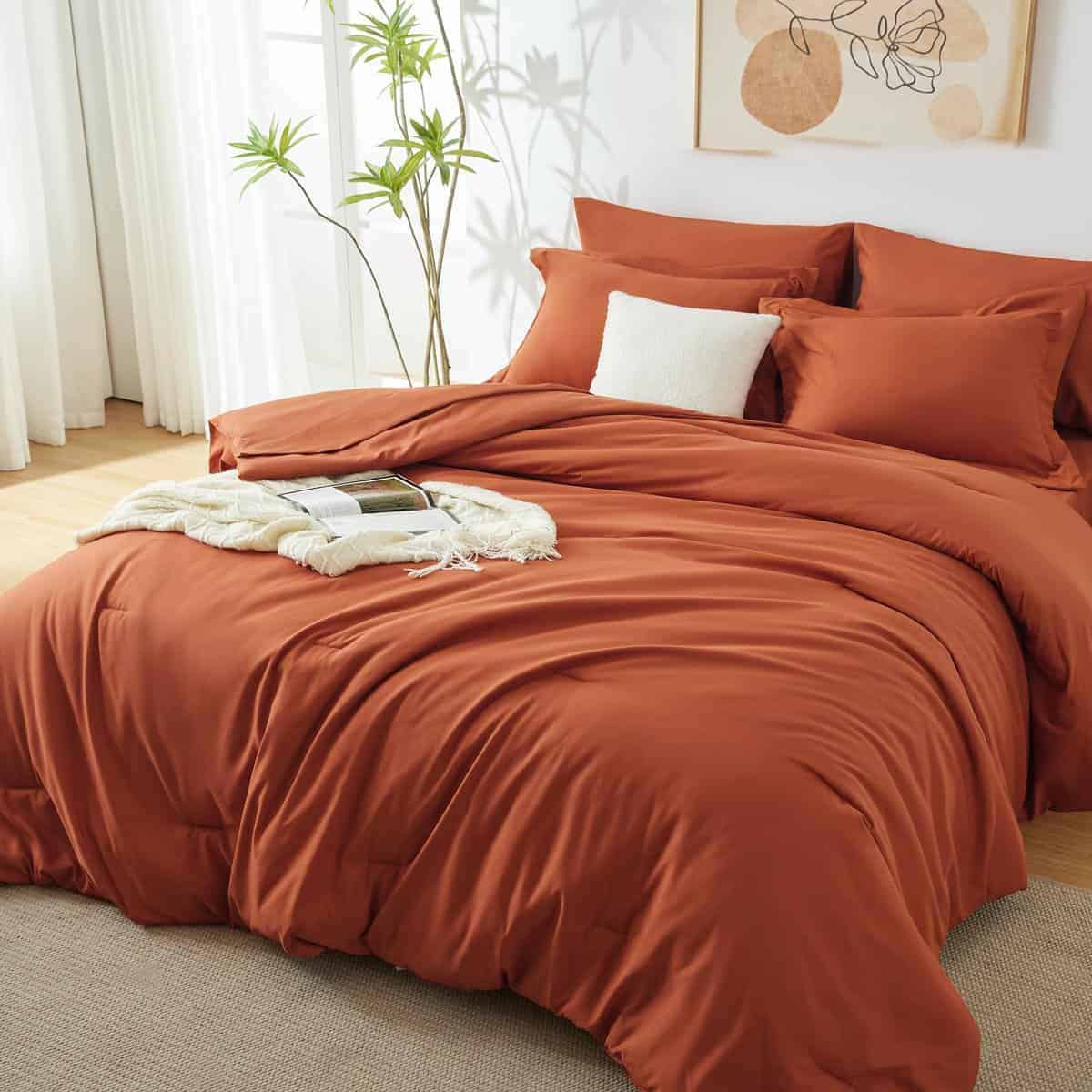 Juego de Edredón Completo CozyLux Naranja Quemado, 7 Piezas