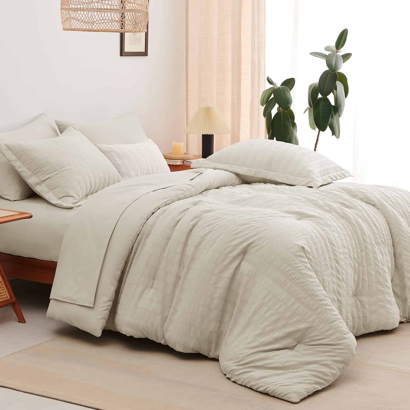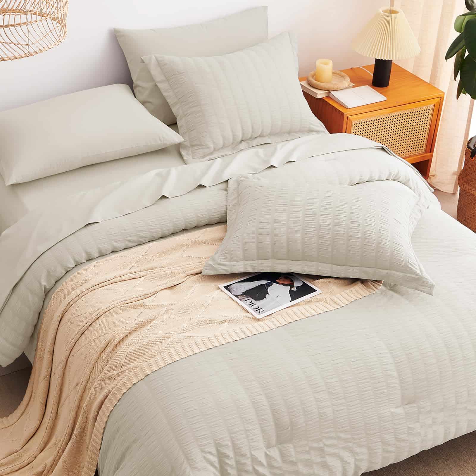 Juego de Edredón Completo de Seersucker CozyLux -Avena