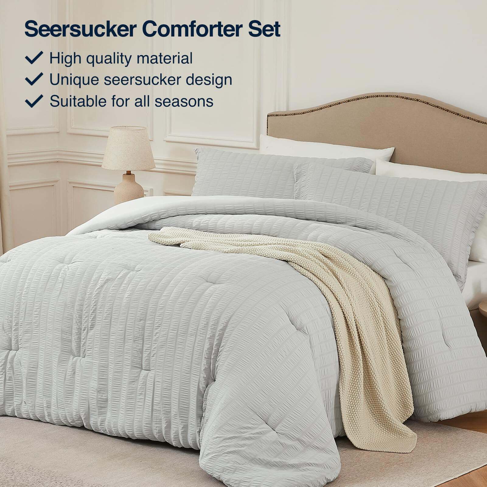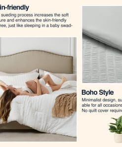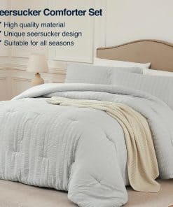 2. Cuidado Fácil y Amigo de las Mascotas: El edredón de seersucker está asegurado con costuras para garantizar que el relleno interno no se desplace, proporcionando un calor duradero. Este conjunto completo de ropa de cama es compatible con lavado a máquina, sin encogimiento, sin distorsión, conveniente para que mantengas un entorno de descanso limpio. El material suave y duradero es resistente a las mascotas y fácil de limpiar.