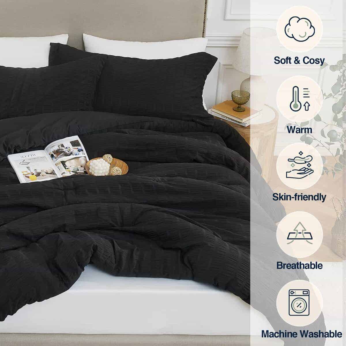 Juego de Edredón Completo Quataly Negro – 3 Piezas de Ropa
