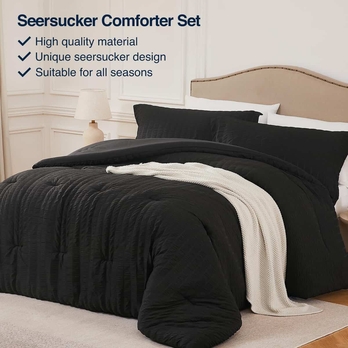 1. Comodidad y Suavidad: Nuestro juego de edredón negro de 3 piezas está hecho de material 100% poliéster lavado que es suave, cómodo y duradero. Con un equilibrio perfecto entre peso y calor, este edredón es transpirable y amigable con la piel sin agobiar tu cuerpo. Permítete relajarte con un toque tipo nube y dejar atrás la fatiga del día en dulces sueños. 2. Cuidado Fácil y Amigable con Mascotas: El edredón seersucker está asegurado con costuras para garantizar que el relleno interno no se desplace, proporcionando calor duradero. Este juego completo de ropa de cama es apto para lavadora, sin encogimiento, sin distorsión, conveniente para mantener un ambiente de sueño limpio. El material suave y duradero es amigable con las mascotas, no es fácil de absorber el pelo de mascotas y fácil de limpiar. 3. Universal para Todas las Estaciones: Este juego de cama completo negro ofrece versatilidad para todas las estaciones. Con diferentes tamaños y combinaciones de color para elegir, puedes combinarlos según tu preferencia personal y estilo de hogar. Colores ligeros de primavera y verano a colores oscuros de otoño e invierno, para satisfacer tus necesidades en diferentes estaciones y ocasiones, agregando un toque de color a tu dormitorio. 4. Diseños Innovadores: Este edredón seersucker de diseño microplisado tiene una gran textura, creando un efecto visual de patrón de onda tridimensional vívido. En comparación con otros edredones tradicionales, esta tela agrega puntos destacados de diseño, fácil de cuidar sin necesidad de planchar, ahorrando mucho tiempo para desarrugar. Añade una romántica y elegante singularidad a tu habitación. 5. Lo Que Puedes Obtener: El juego de edredón completo negro incluye 1 edredón (82»x86»), 2 fundas de almohada (20»x26»). Los juegos de ropa de cama vienen en un paquete sellado al vacío, y recomendamos lavar el edredón suavemente y secar a baja temperatura antes del primer uso, o dar golpecitos suaves para esponjarlo de nuevo. Si tienes alguna pregunta, no dudes en contactarnos.