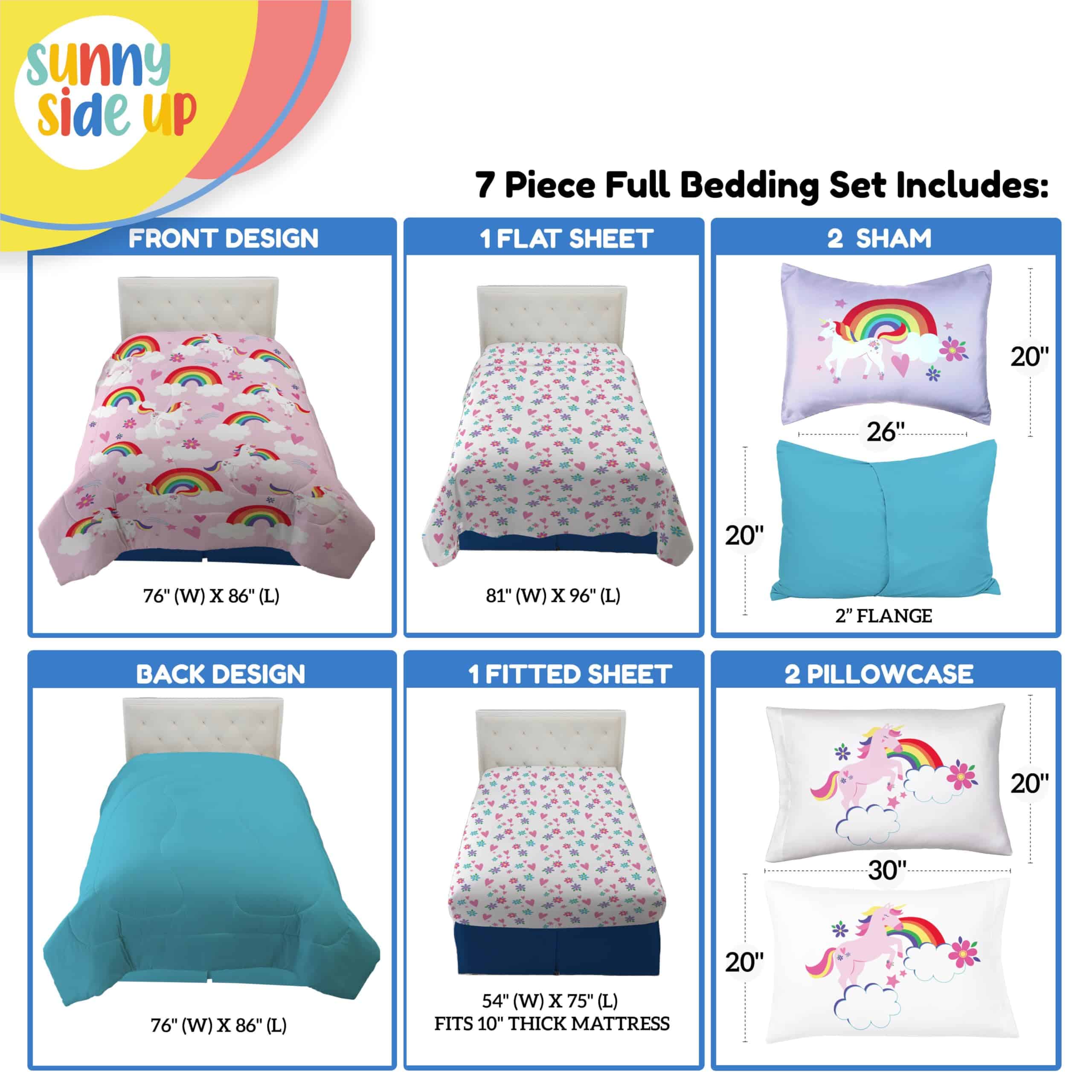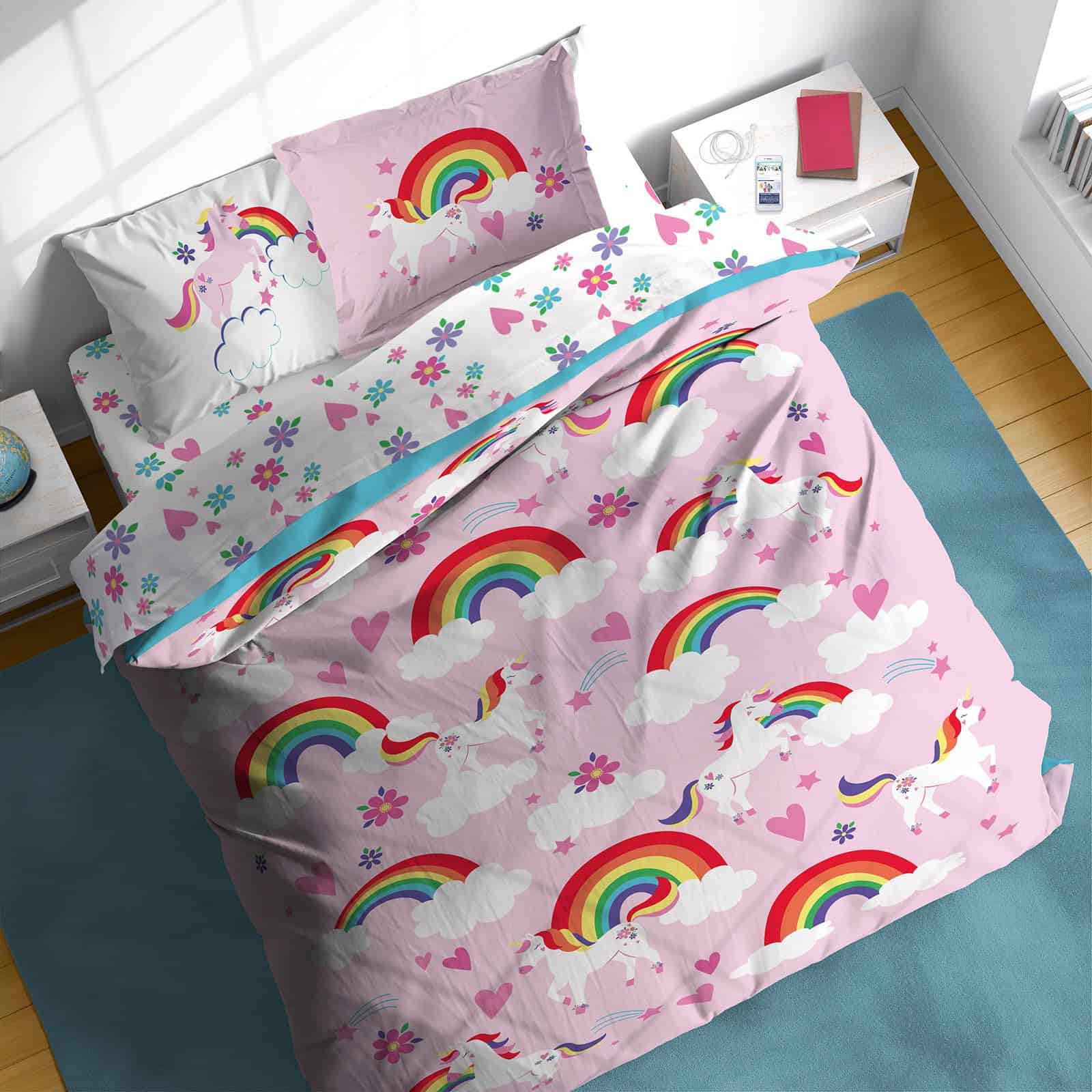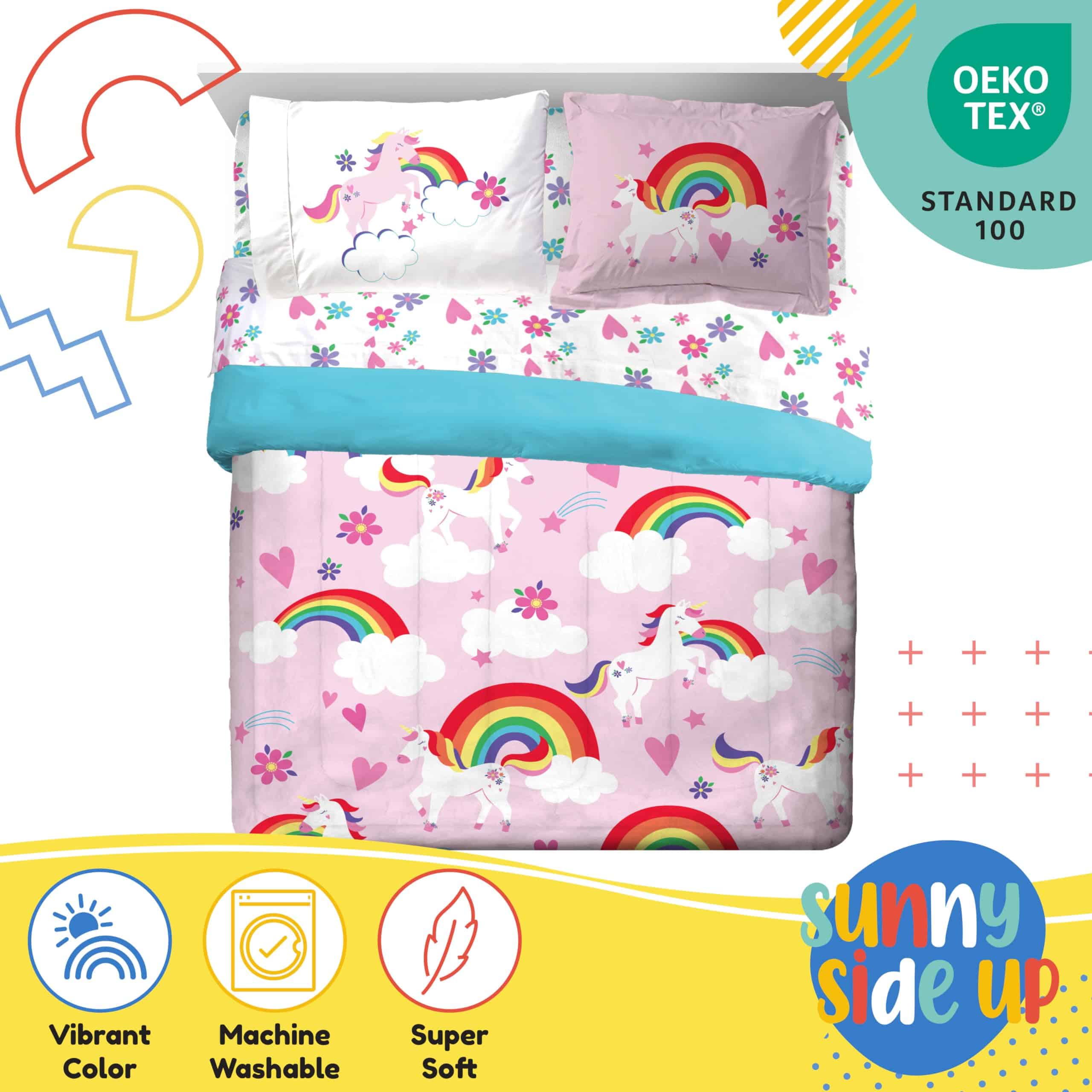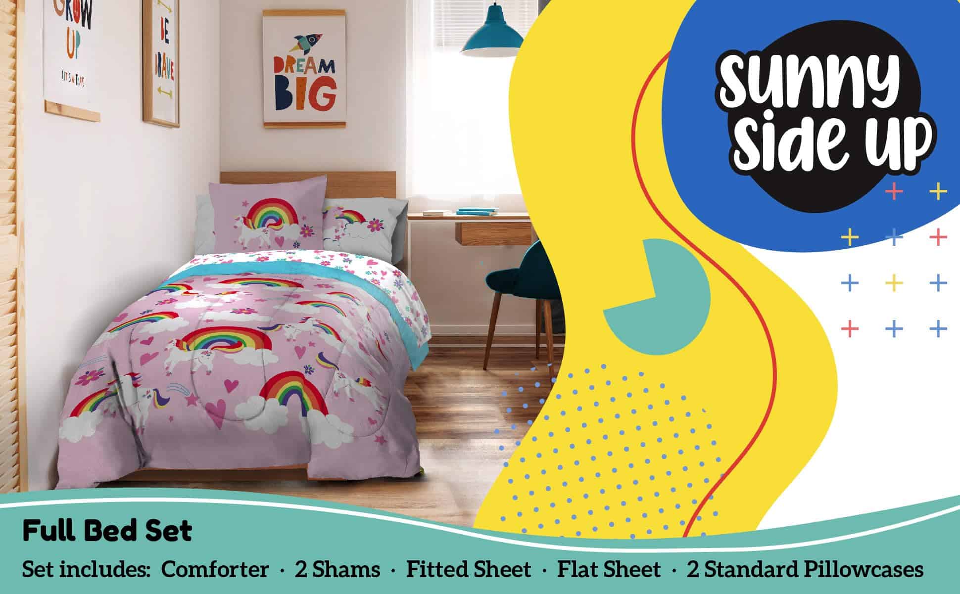 Juego de Edredón Completo Sunny Side Up Rainbow Unicorns –