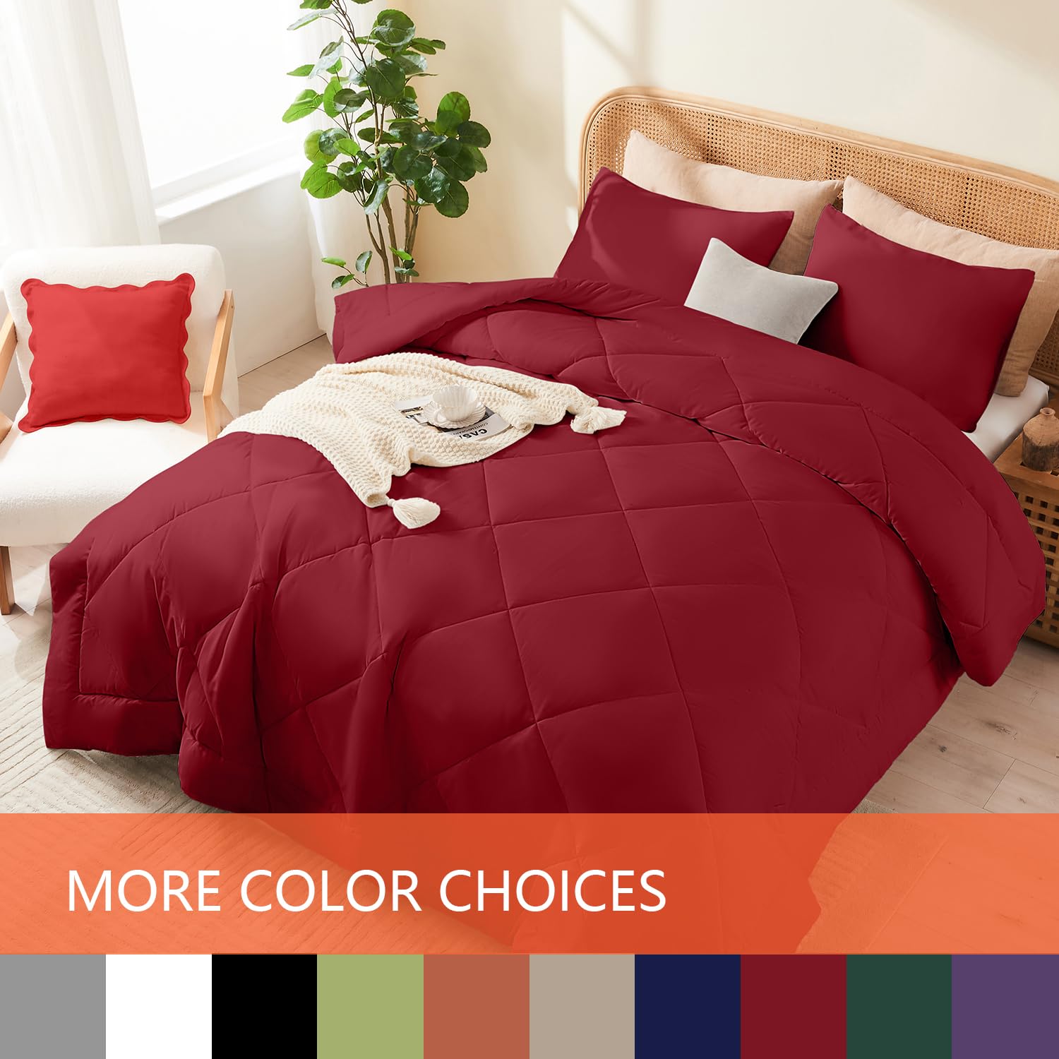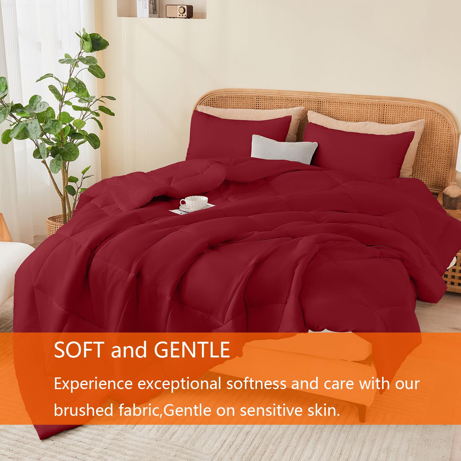 Juego de edredón completo YOOHU rojo, 3 piezas Juego de