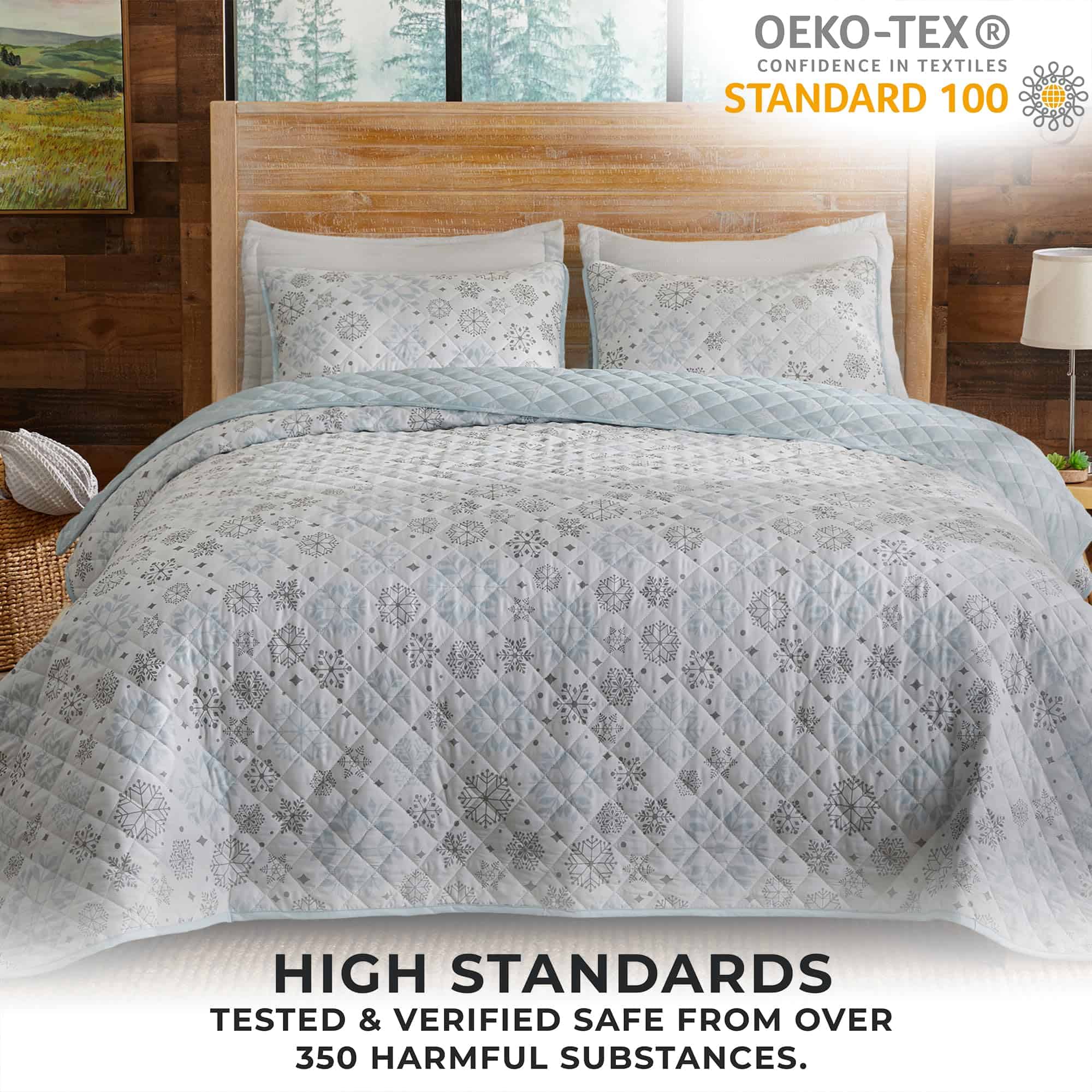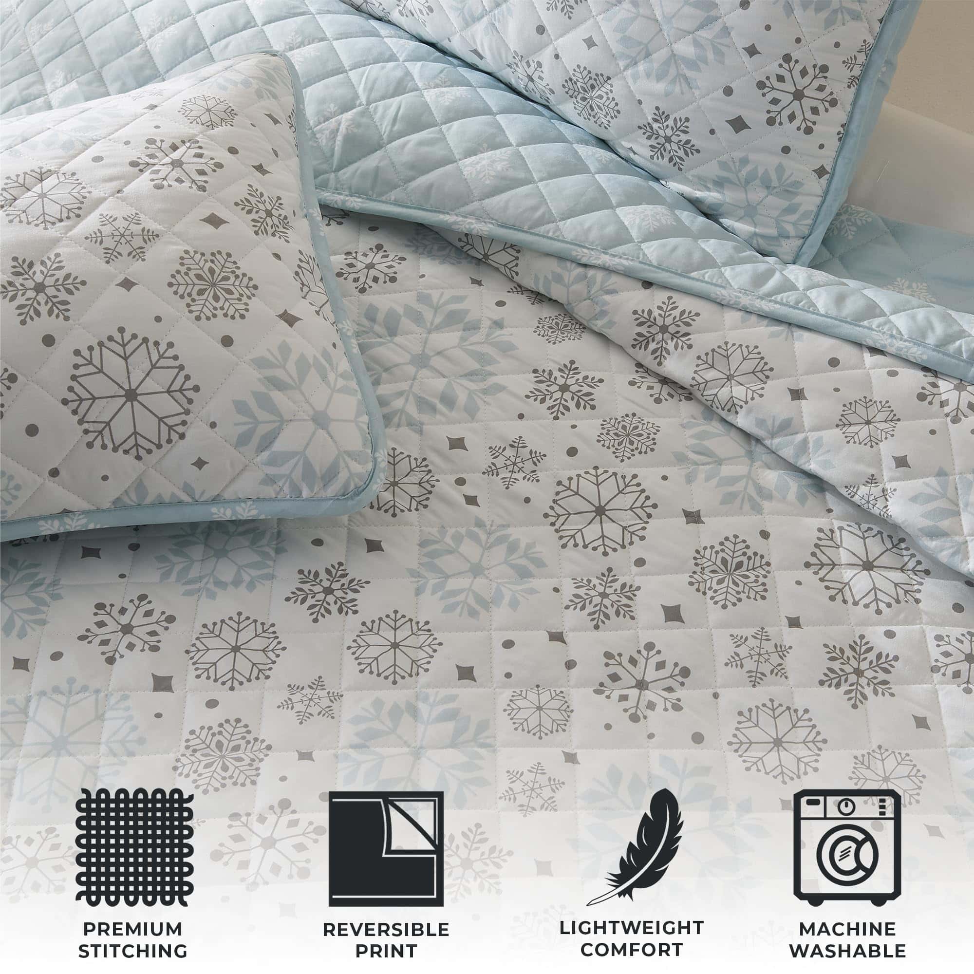 Este juego de edredón de copos de nieve de invierno Twin/Twin XL es la solución perfecta para aquellos que buscan una opción acogedora y duradera para la temporada de invierno. Confeccionado con una microfibra cepillada súper suave, este edredón mantendrá abrigado y cómodo a cualquier persona que lo use. El diseño reversible con un patrón festivo versátil de copos de nieve le dará un toque especial a tu decoración invernal. Lavable a máquina, este edredón es fácil de cuidar y está diseñado para un uso prolongado. El juego incluye un edredón tamaño Twin de 66″ x 90″ y una funda de almohada estándar de 20″ x 26″. No comprometas la calidad de tu ropa de cama y elige este set de edredón de invierno que te ofrecerá confort y estilo durante toda la temporada.