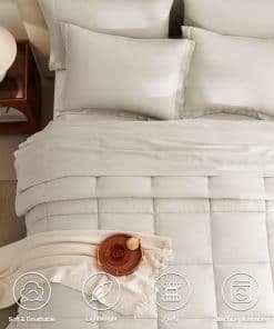Juego de edredón CozyLux beige tamaño King 7 piezas Juego