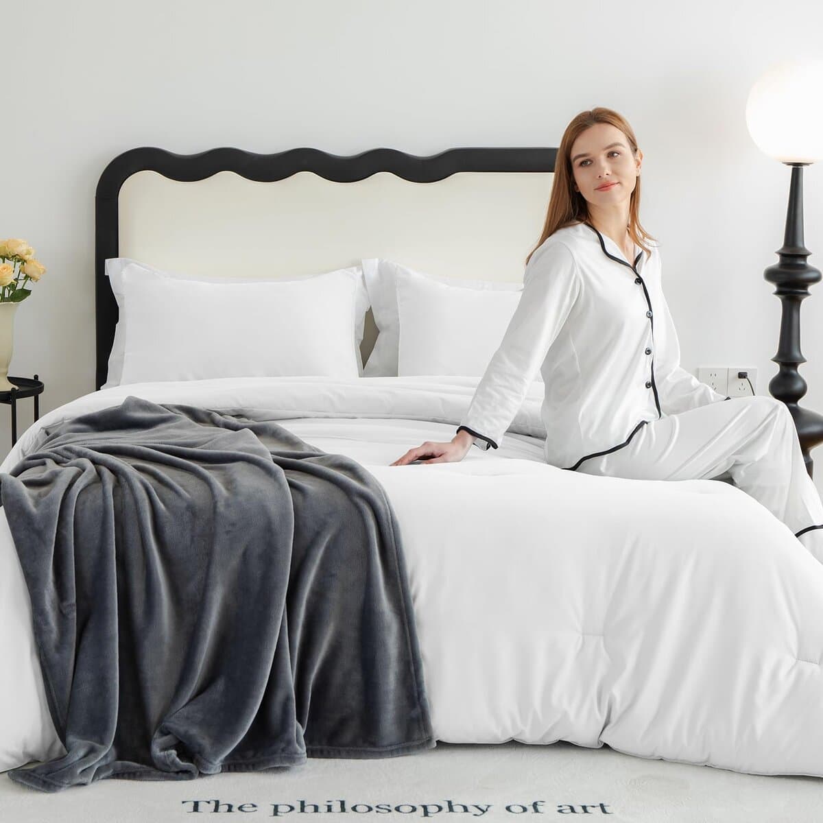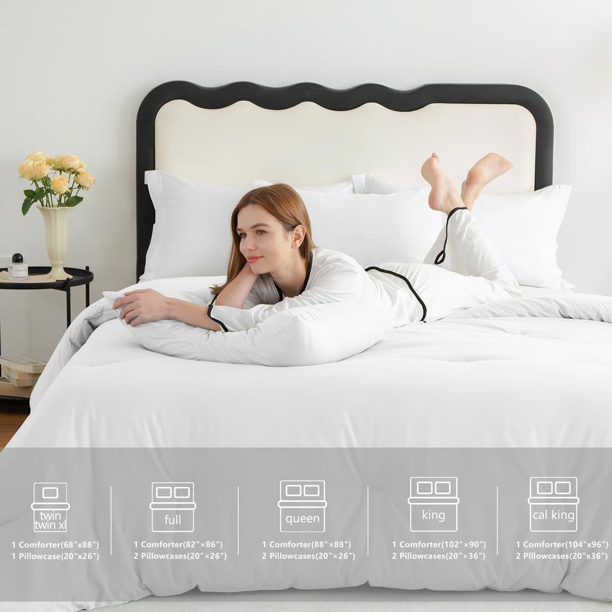 Juego de Edredón CozyLux Blanco Tamaño Queen, 3 Piezas