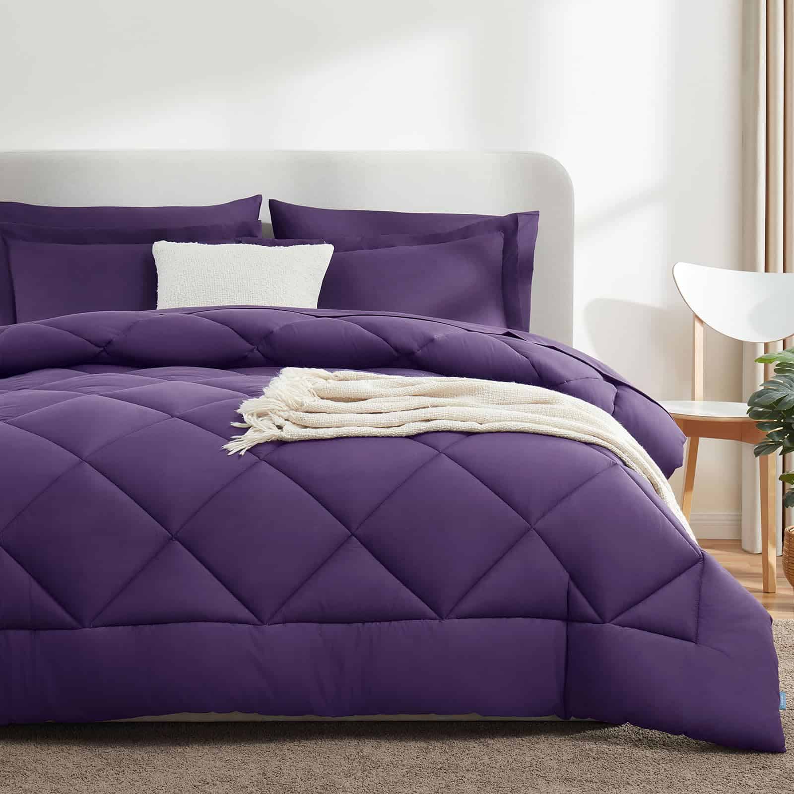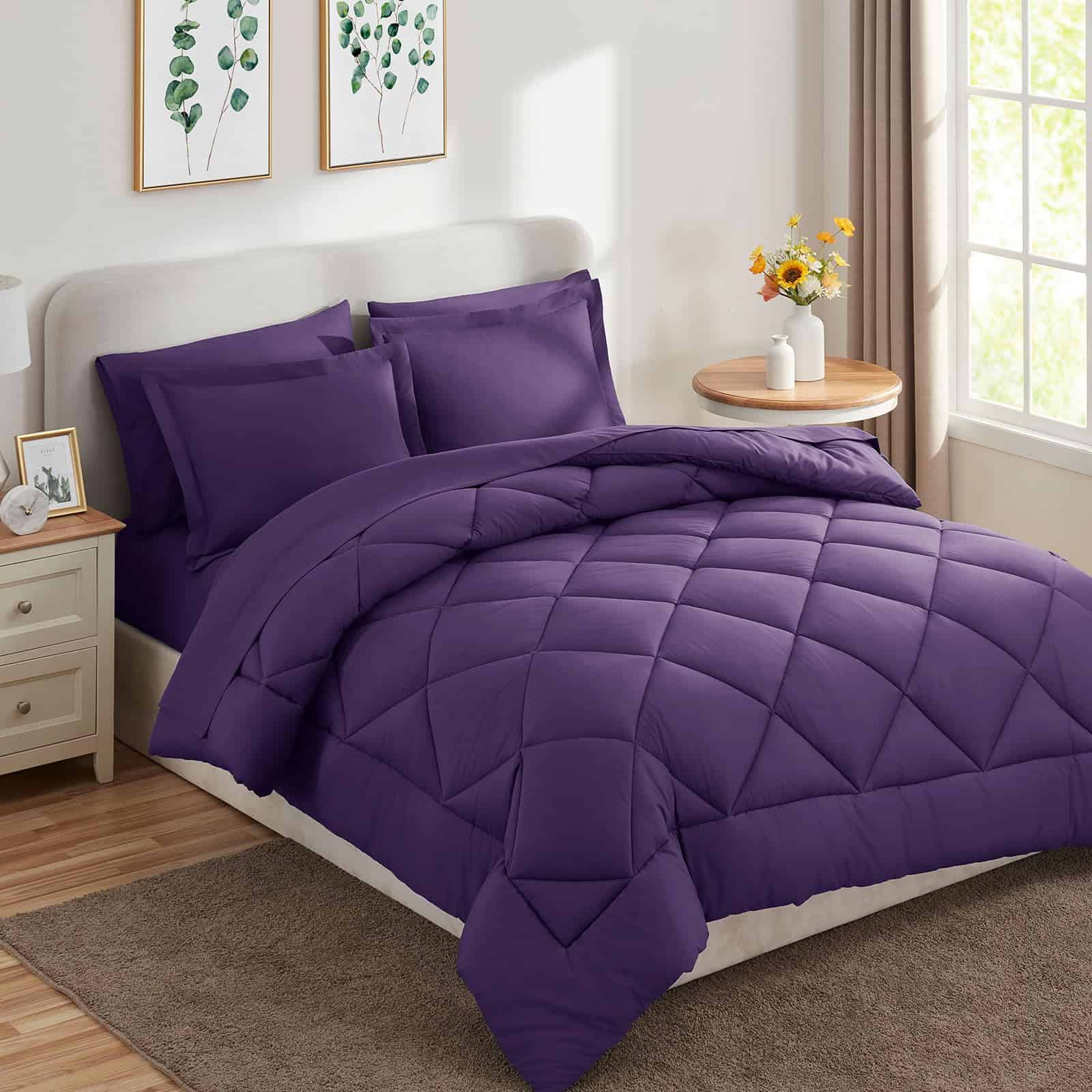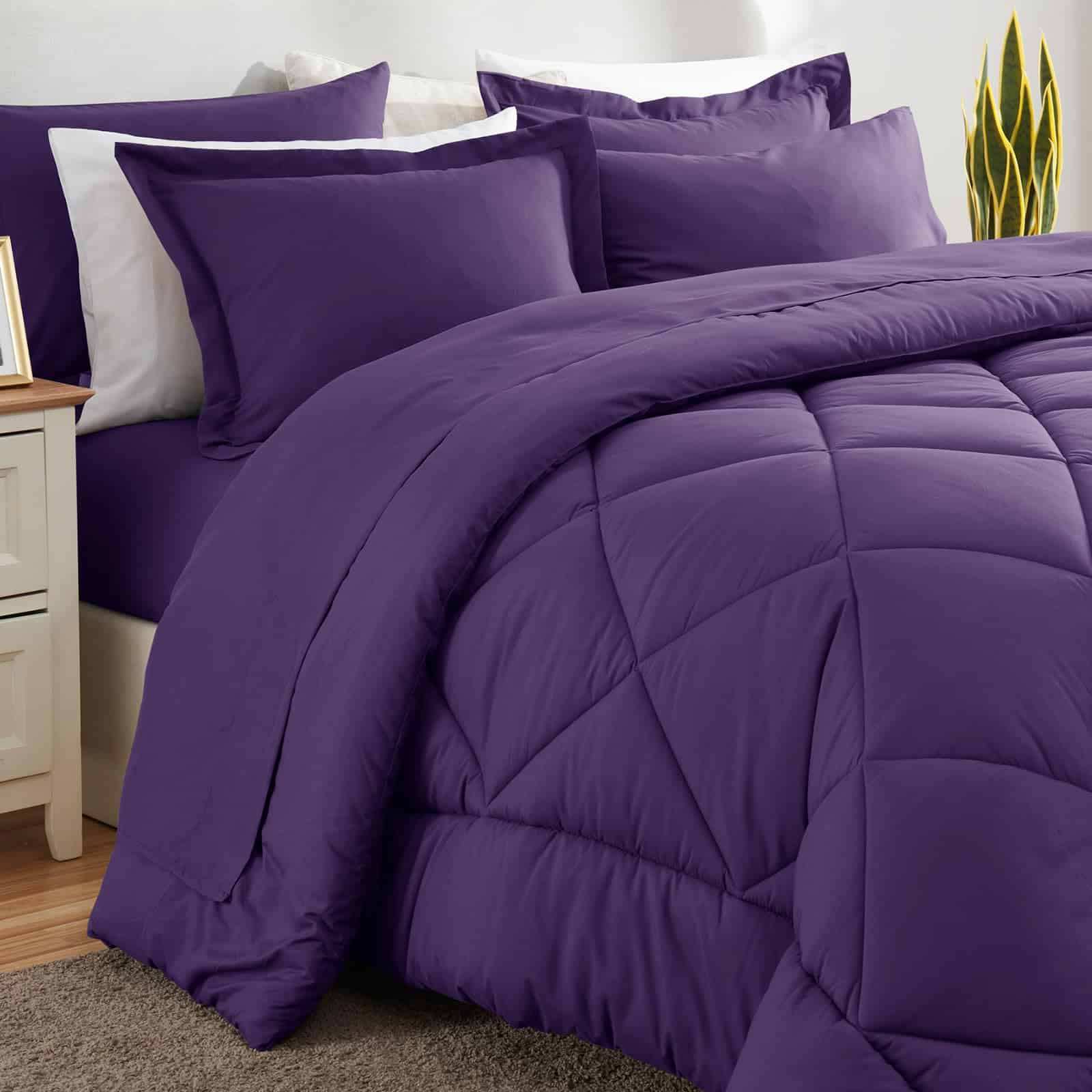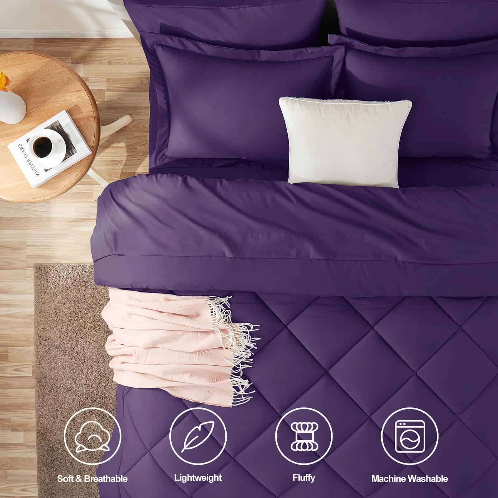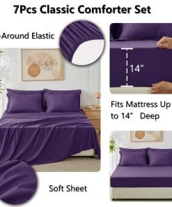 Juego de Edredón CozyLux King 7 Piezas con Sábanas Morado