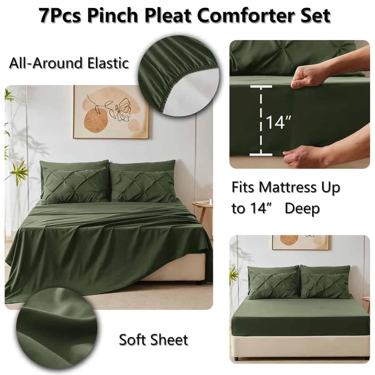 Juego de edredón CozyLux Olive Green King – 7 Piezas King