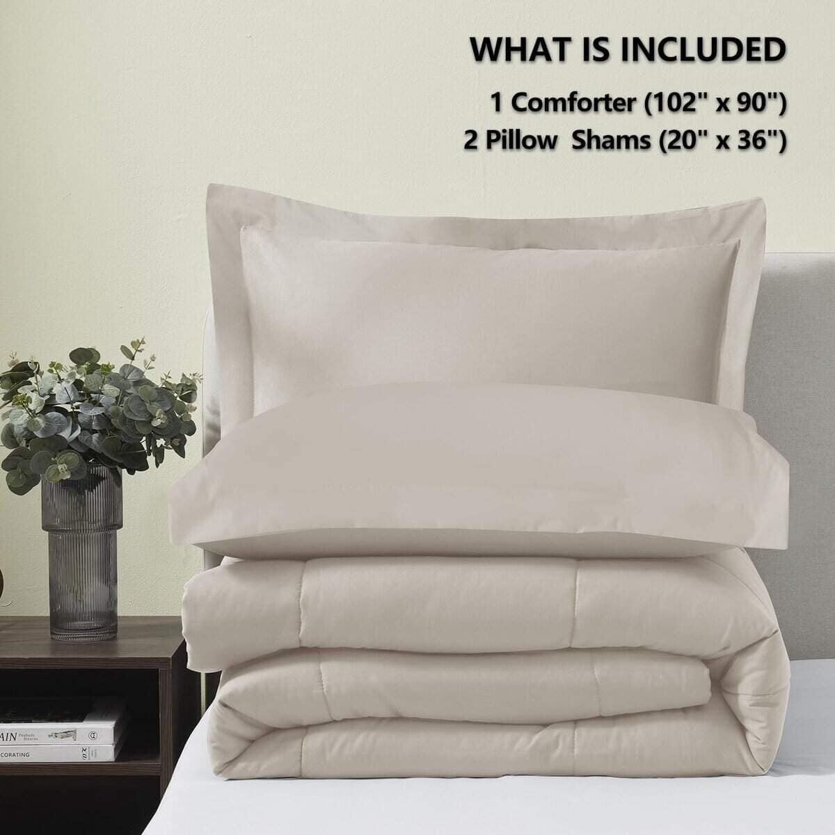 4. Lo Que Obtienes: El juego de edredón tamaño king incluye 1 edredón (102×90 pulgadas), 2 fundas de almohada (20×36 pulgadas). Consejos Cálidos: Dado que el edredón viene en un empaque al vacío, se recomienda lavarlo y secarlo a baja temperatura para esponjar el edredón antes del primer uso. También puedes exponerlo al sol y golpear suavemente, luego se esponjará nuevamente después de unas horas.
