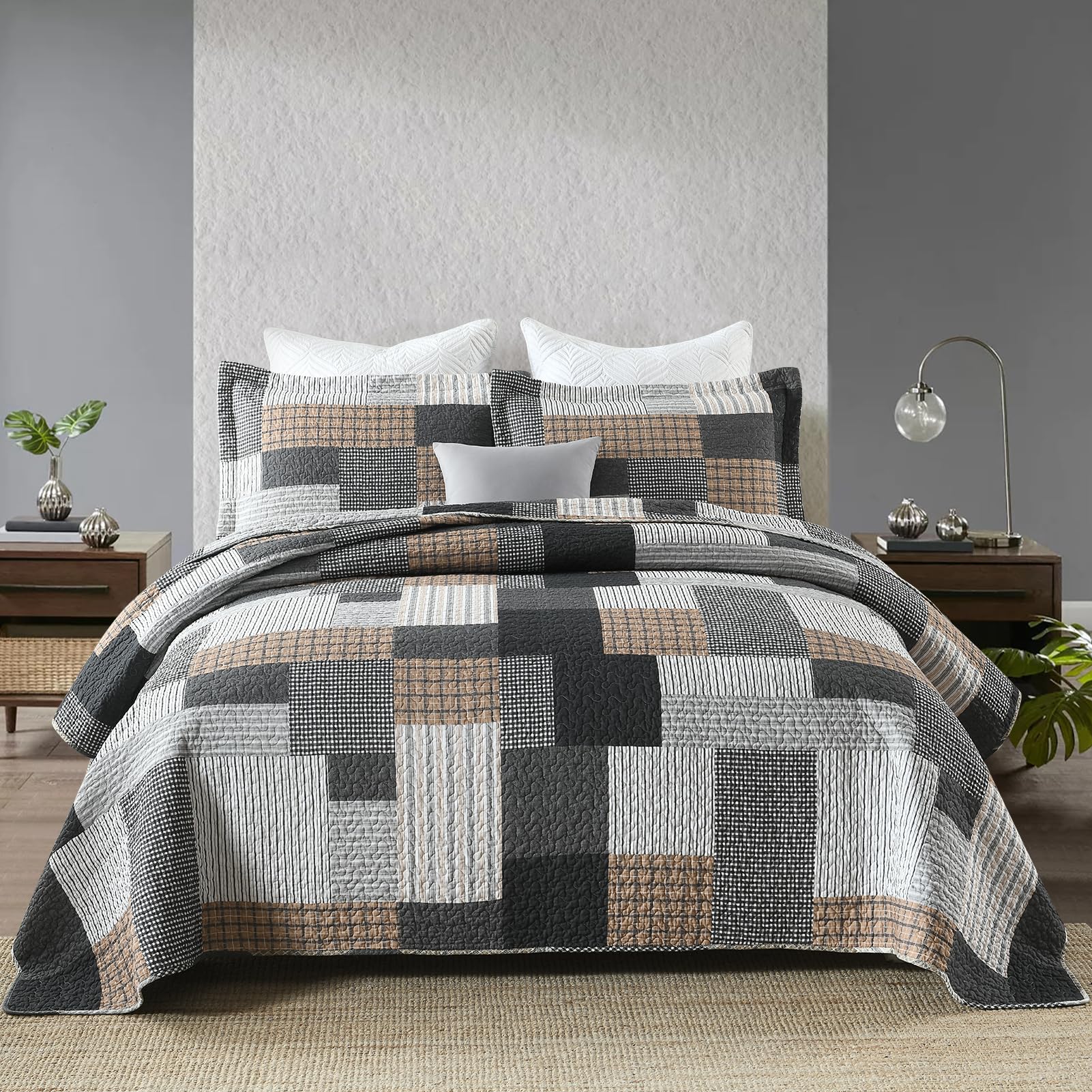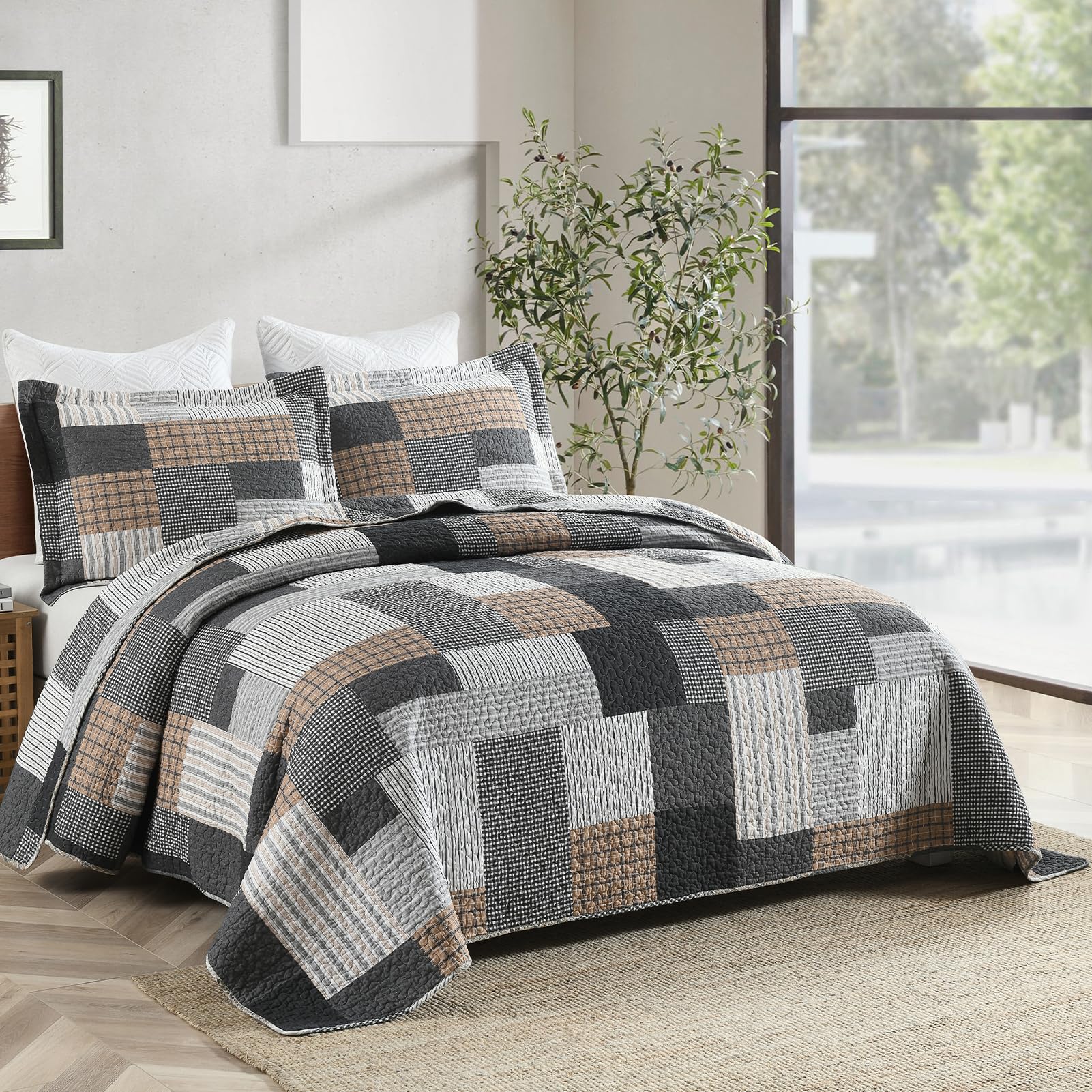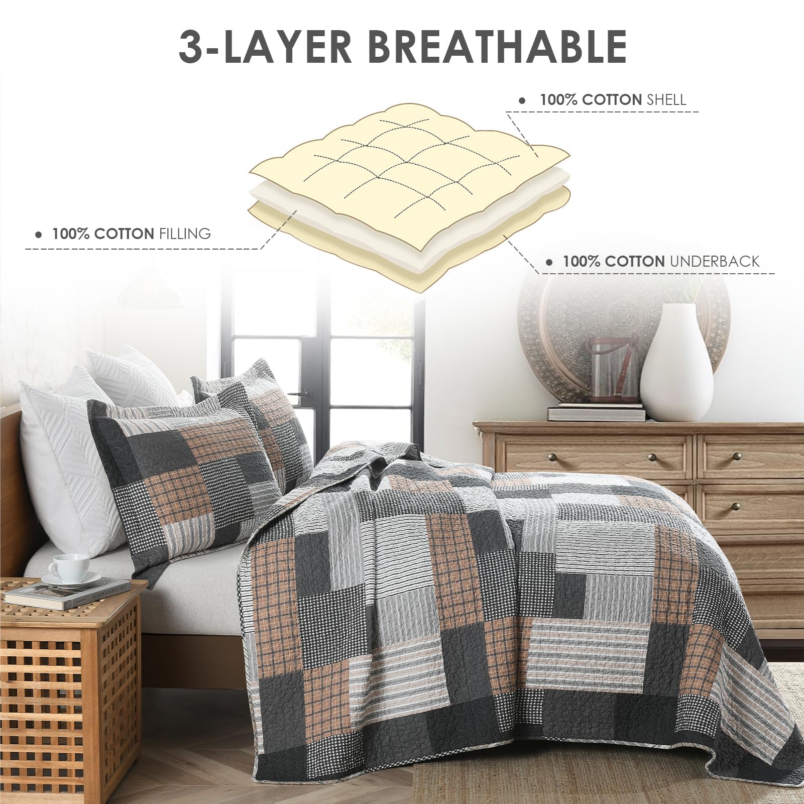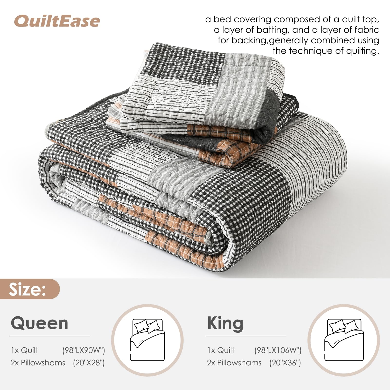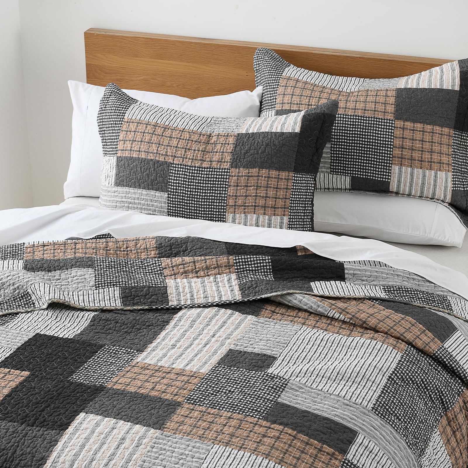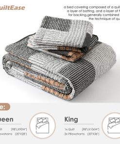 El juego de edredón de cuadros Queen Size de QuiltEase es la opción perfecta para aquellos que buscan una ropa de cama de calidad hecha de 100% algodón natural. Con un diseño reversible en tonos marrón, negro, gris y blanco, este juego de edredón agregará un toque acogedor y atemporal a cualquier dormitorio. La tela y el relleno de algodón garantizan una opción suave, transpirable e hipoalergénica que durará años.