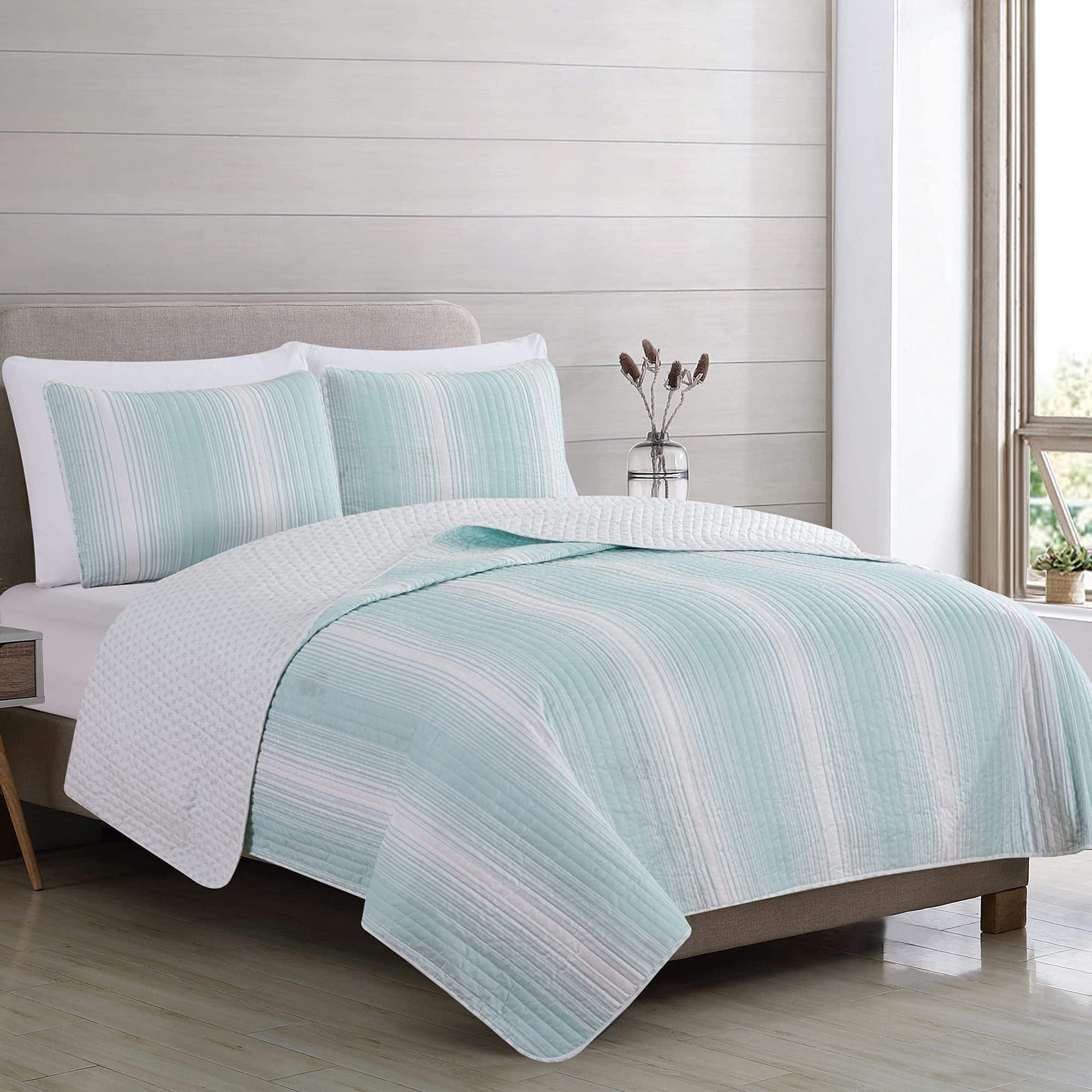 Juego de Edredón de 3 Piezas Reversible Azul Full/Queen con