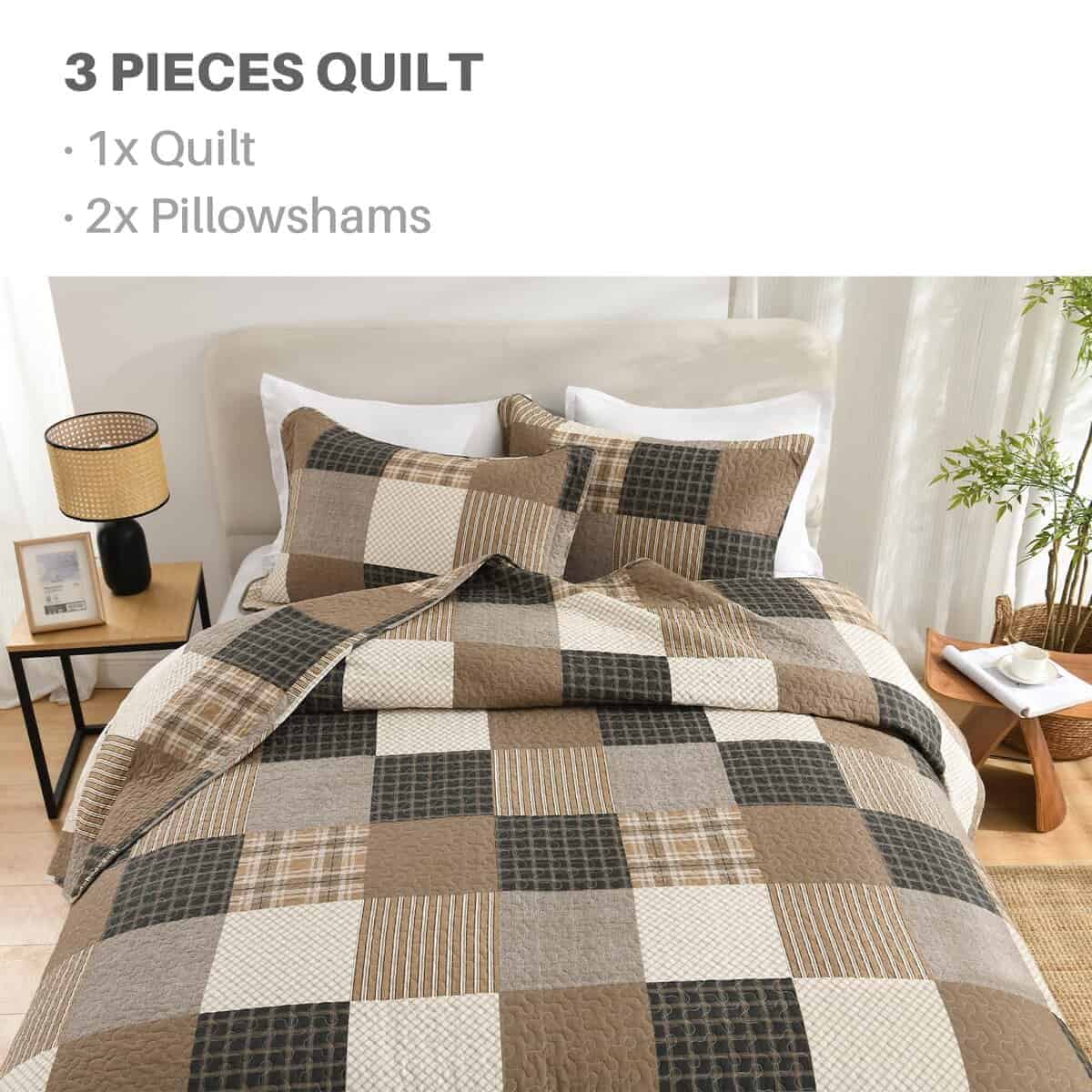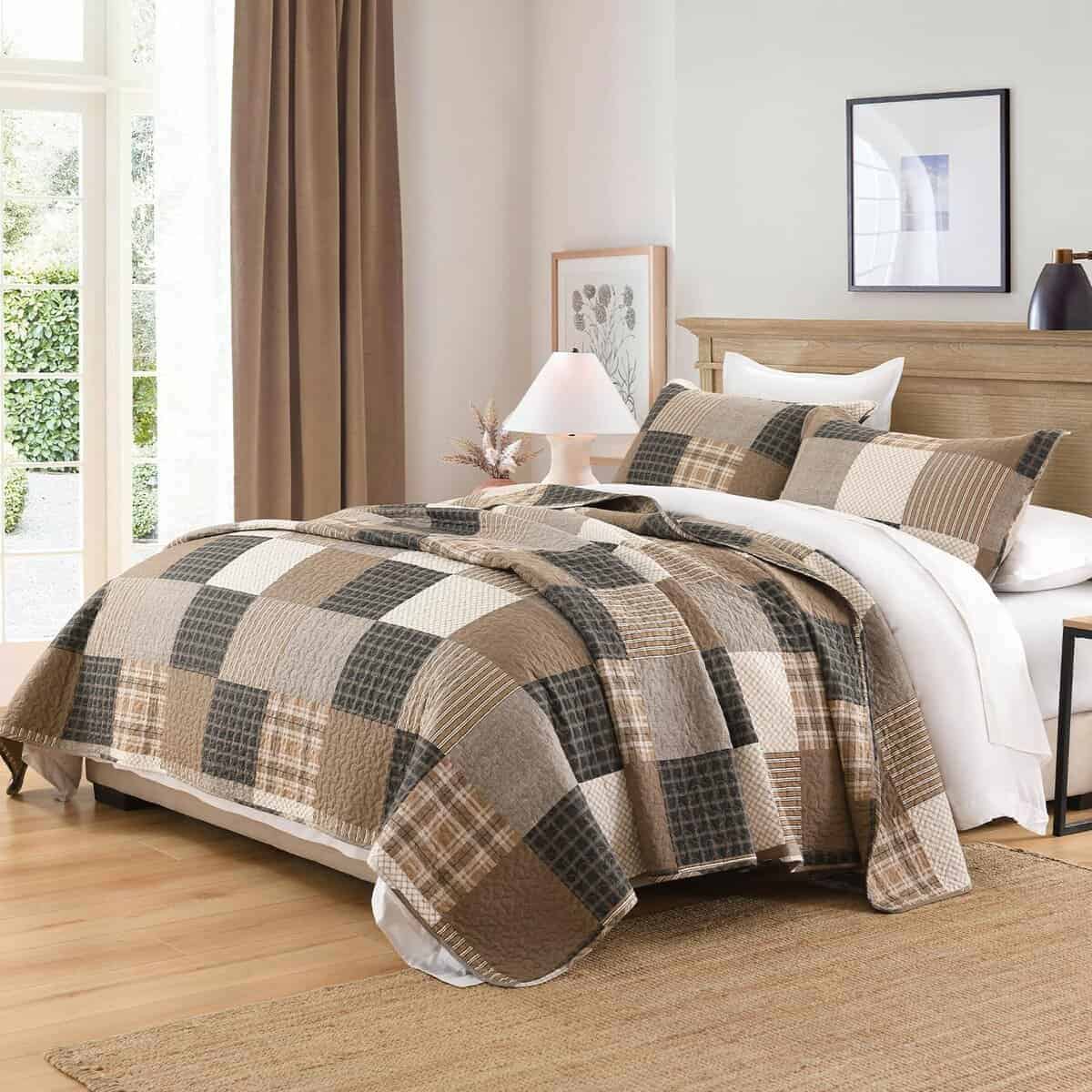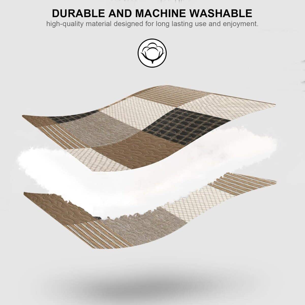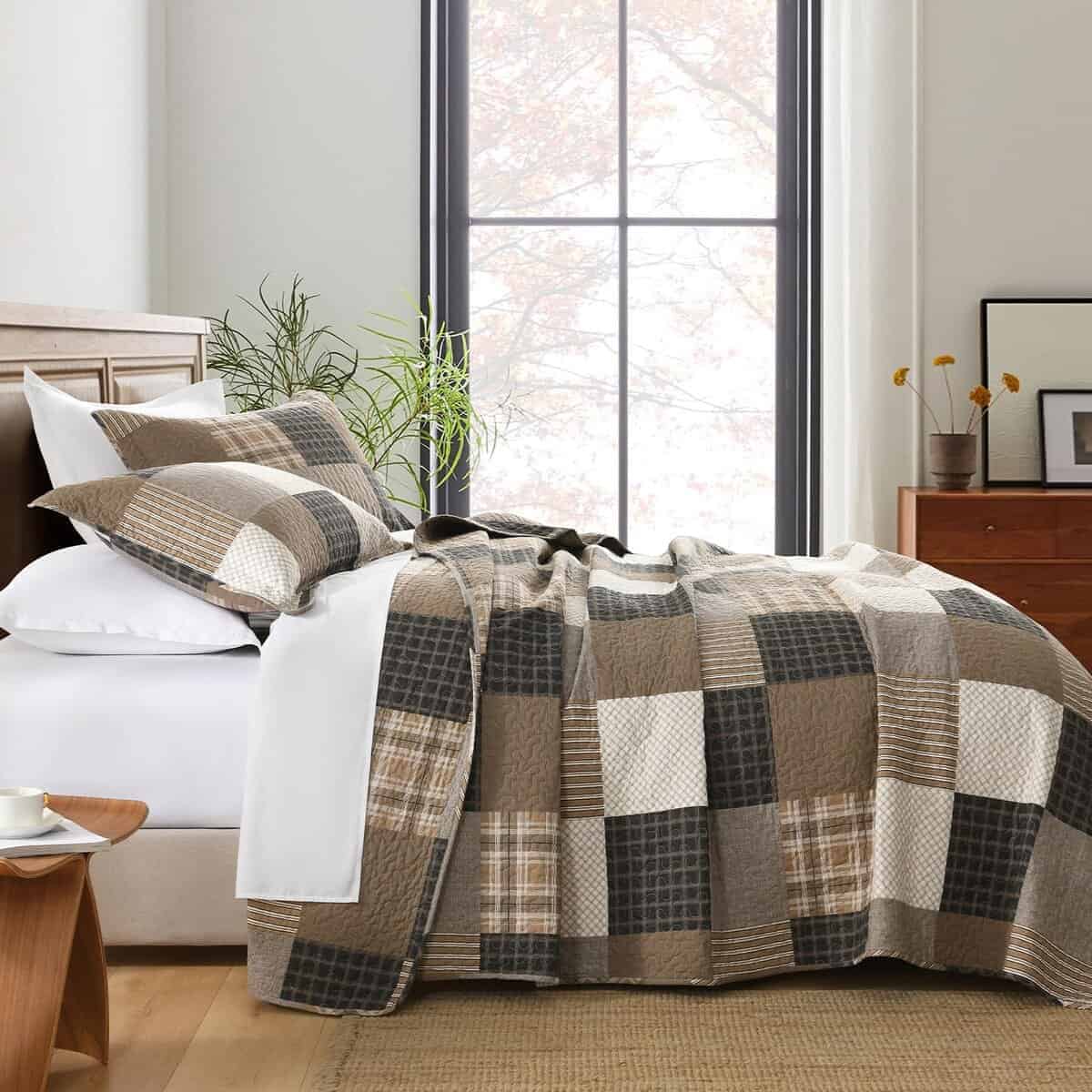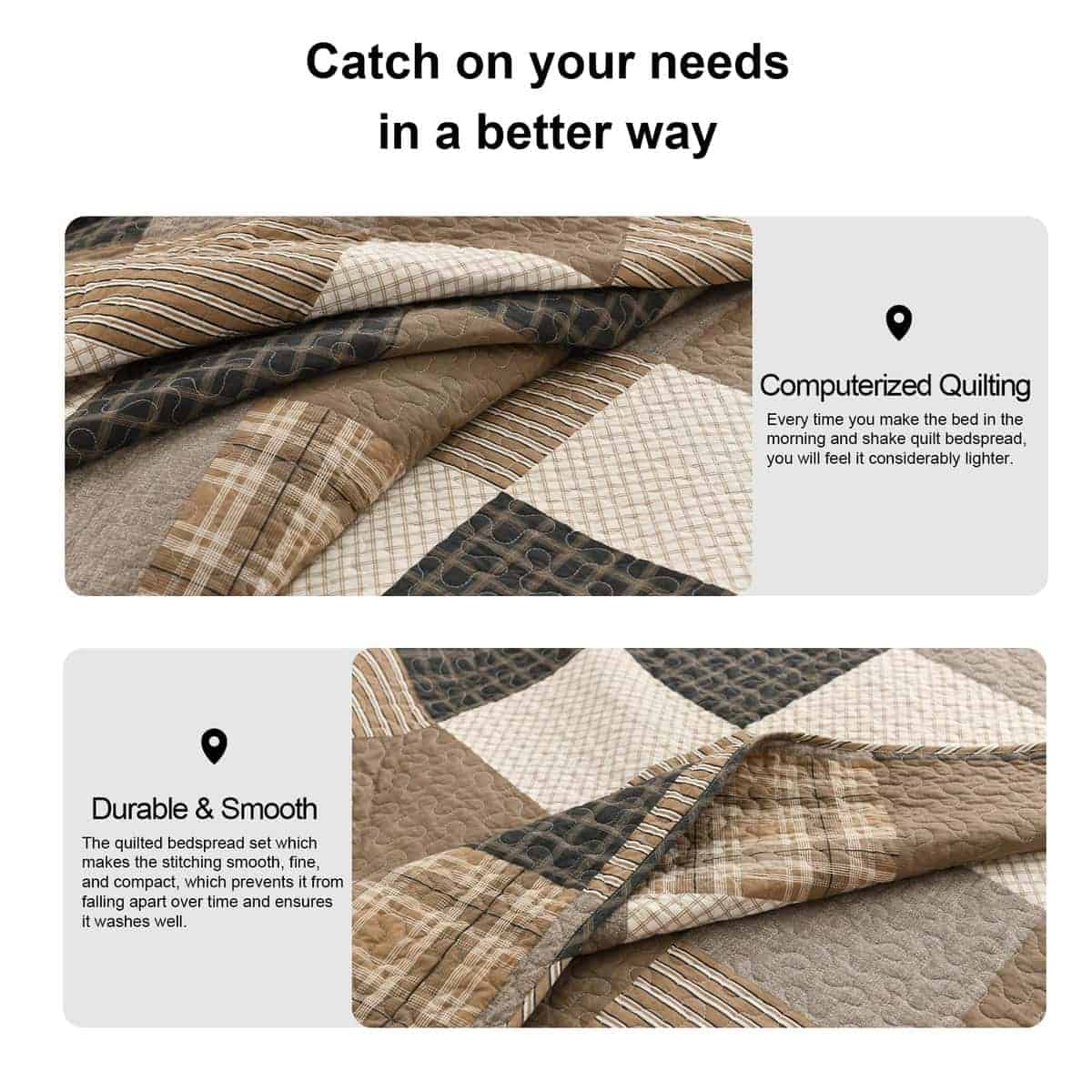2. Para Varias Habitaciones: Ambos lados de este juego de edredón tienen los mismos patrones de cuadros en tonos de carbón, beige y marrón, combina fácilmente con la decoración de tu habitación. Es adecuado para dormitorios, salas de estar, habitaciones principales, habitaciones de huéspedes, estudios, dormitorios y RVs. Es ligero y portátil para habitaciones interiores y acampadas al aire libre. Este juego de edredón es ampliamente aplicable, por lo que puede ser una buena elección como regalo.