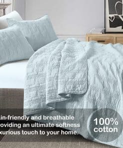 Juego de Edredón de Algodón 100% Queen Size, Baby Blue
