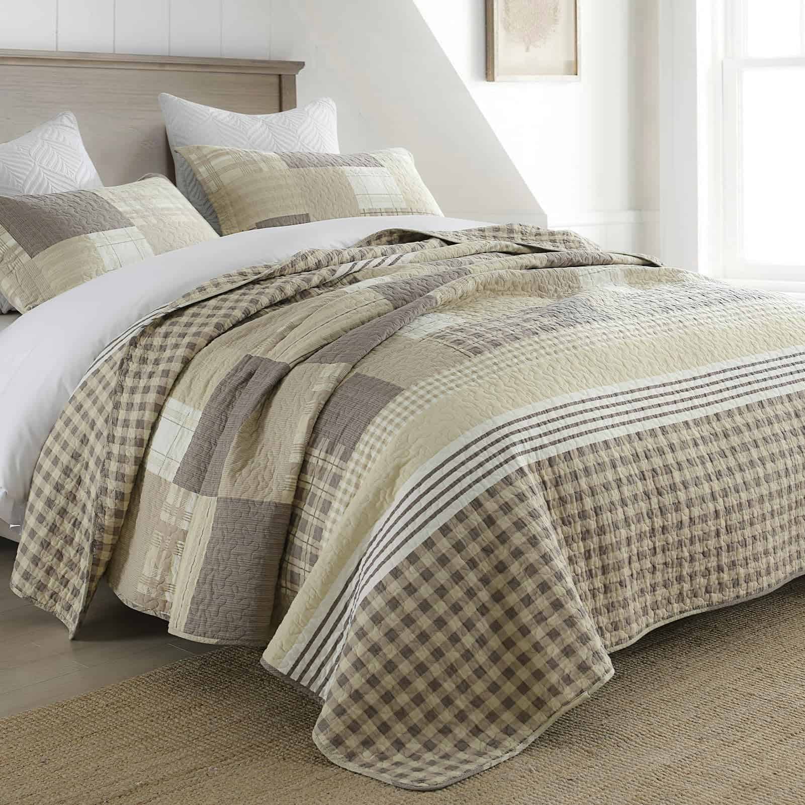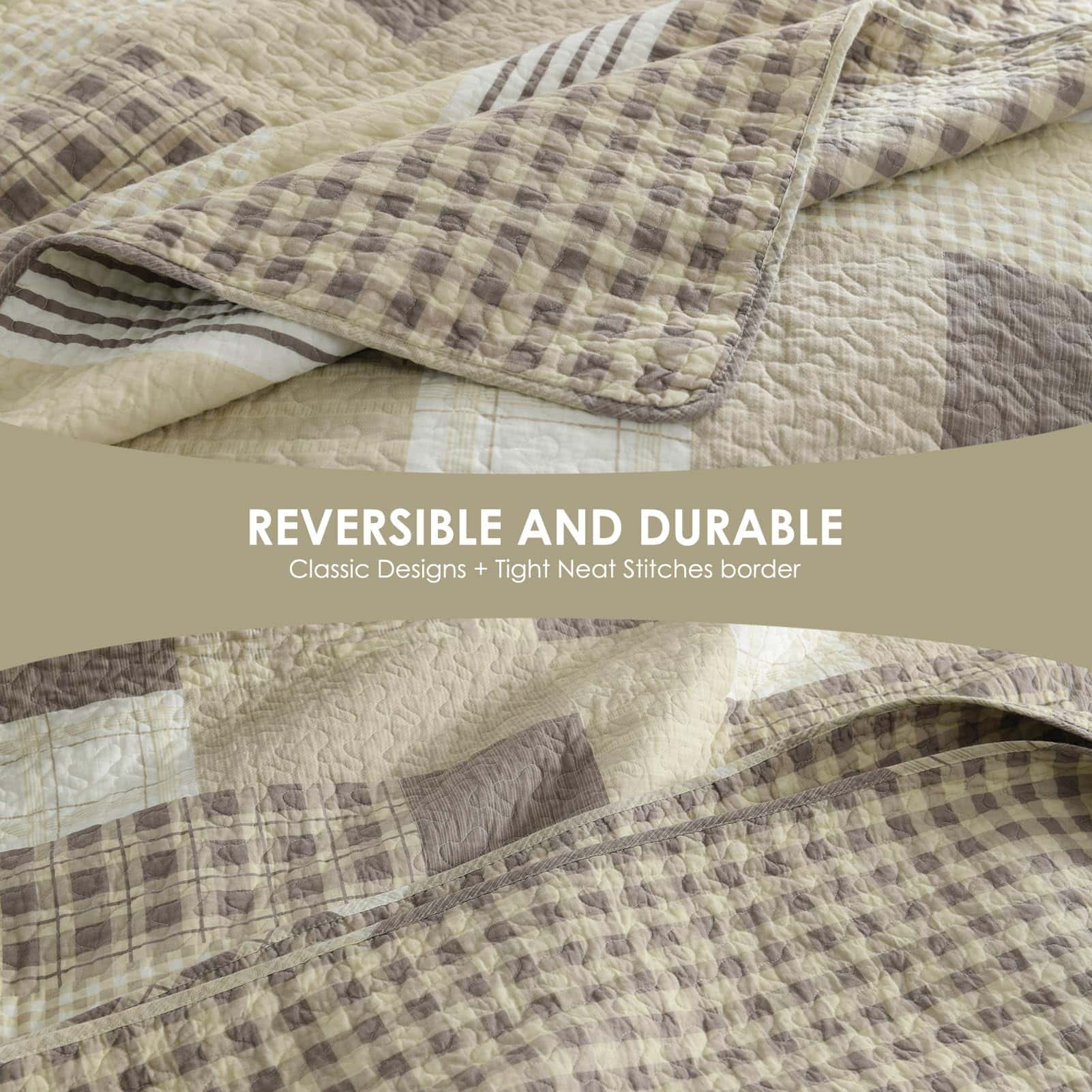 El juego de edredón tamaño king es de estilo moderno y de granja con colores café, marrón, crema y beige, diseño único de patrón clásico de cuadros, adopta un excelente artesanía de doble costura e imprime el hermoso patrón en el edredón tamaño king, una bonita decoración para tu habitación. Este juego de edredón se puede usar en primavera, verano, otoño e invierno. Si tiendes a sudar más al dormir, el juego de edredón se puede usar solo en clima frío, o puedes usar este juego de edredón junto con una manta o edredón en clima frío. El juego de edredón de 3 piezas para cama king incluye: 1 Edredón (98 x 106 pulgadas) + 2 Fundas de Almohada (20 x 36 pulgadas). Este juego de edredón combina fácilmente con la decoración de tu habitación. Es adecuado para dormitorio, sala de estar, habitación principal, habitación de invitados, estudio, dormitorios y RVs. Y es ligero y portátil para habitaciones interiores y campamentos al aire libre. Material duradero, costuras ordenadas y apretadas garantizan un uso a largo plazo. El diseño ligero facilita su transporte, cuidado y lavado, si tienes mascotas, este edredón también es una buena opción. Es ampliamente aplicable, por lo que puede ser una buena elección como regalo. Instrucciones de cuidado: Lavar a máquina por separado en agua fría, secar en secadora a baja temperatura, no usar lejía. El edredón mantendrá el calor y su forma original después de lavarlo. Si tienes mascotas, el edredón lavable es una buena elección.