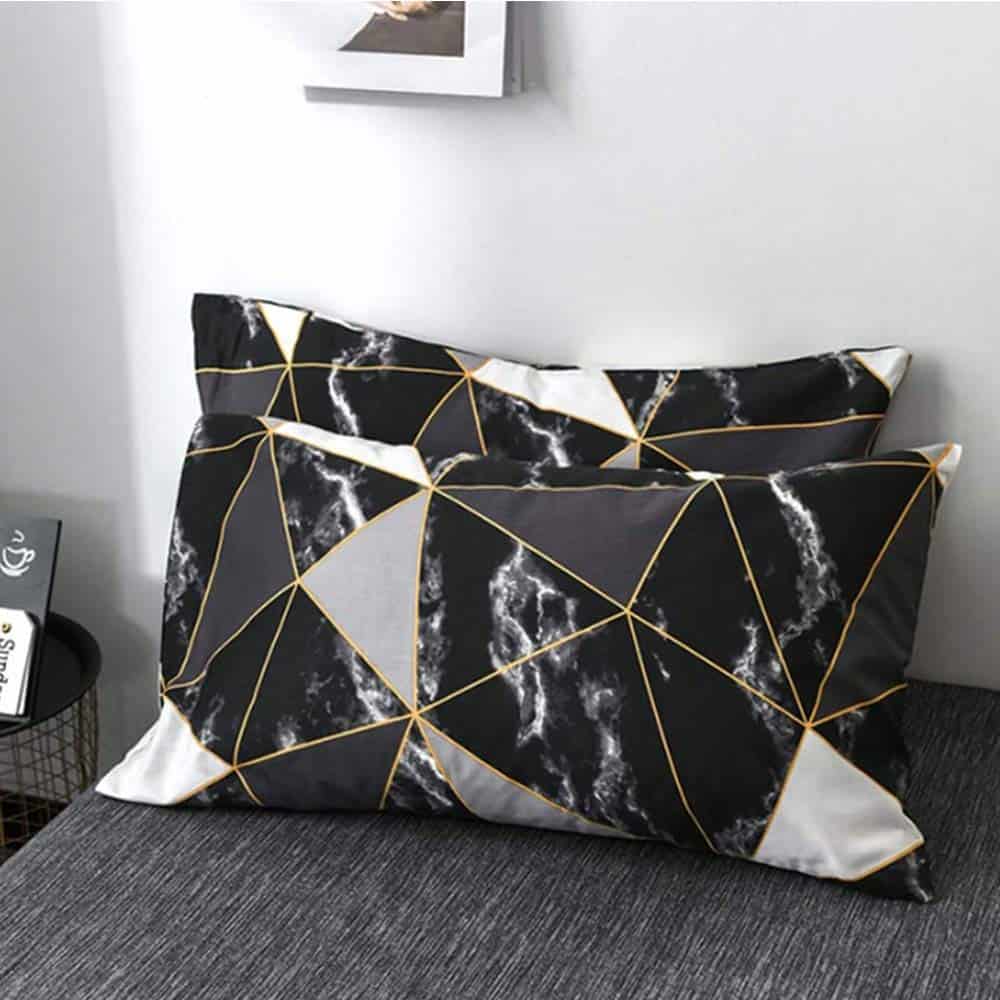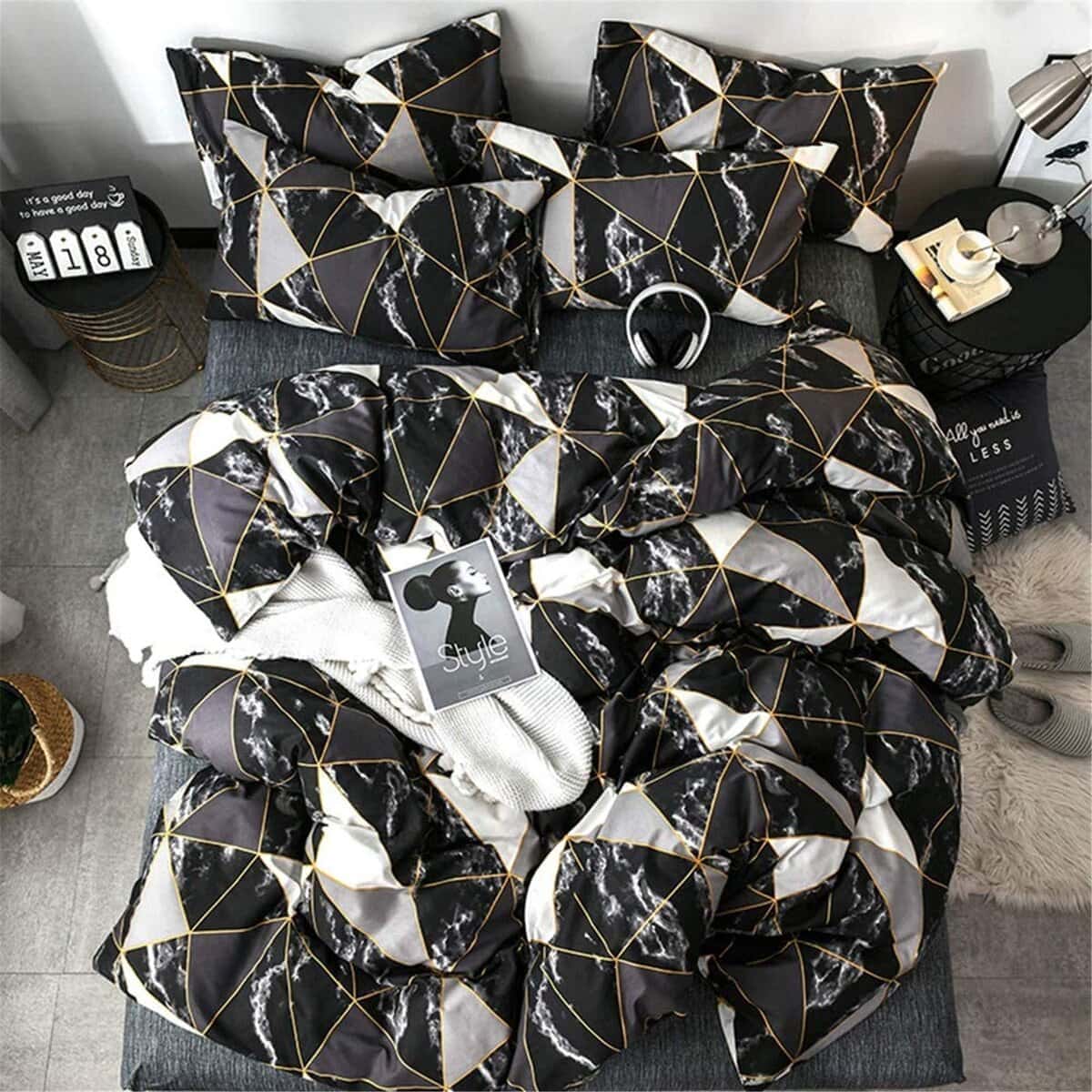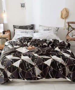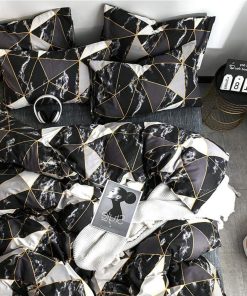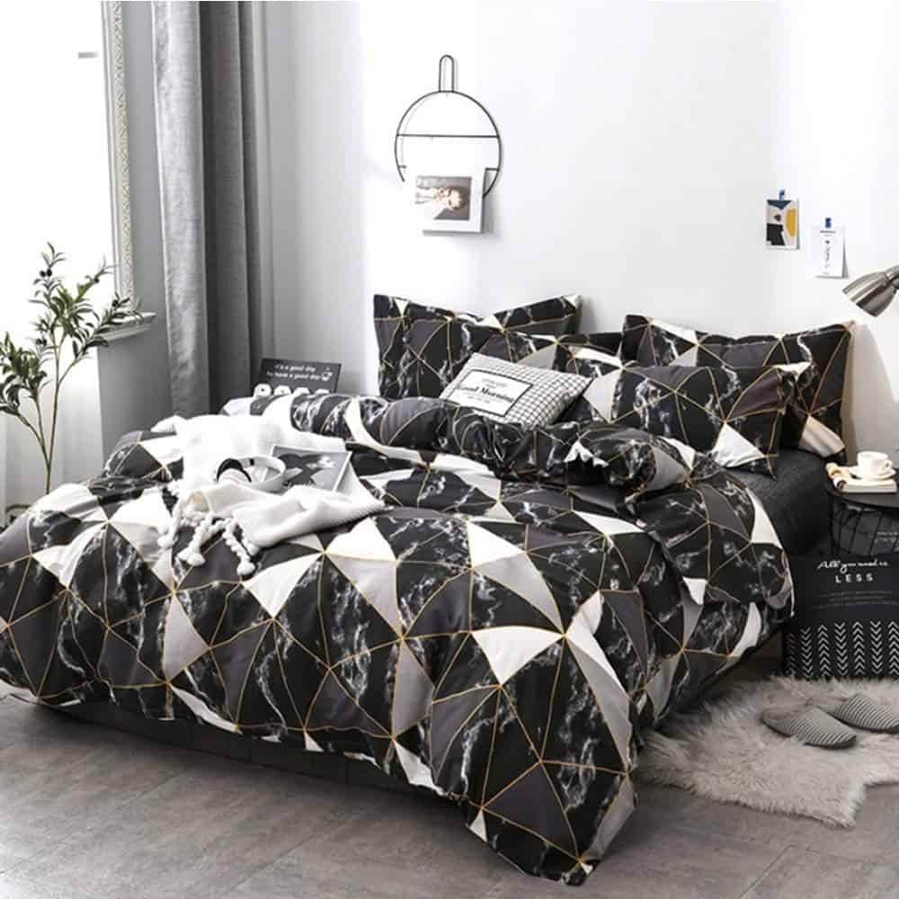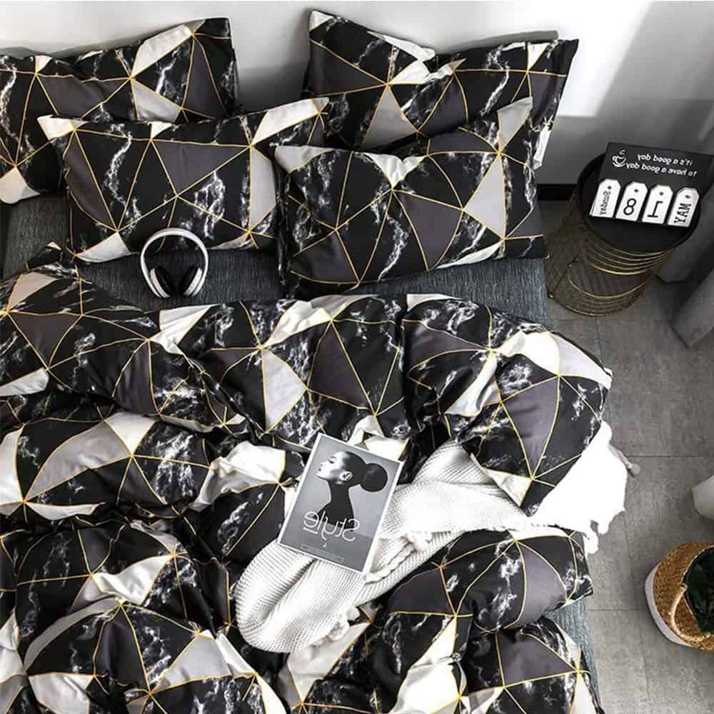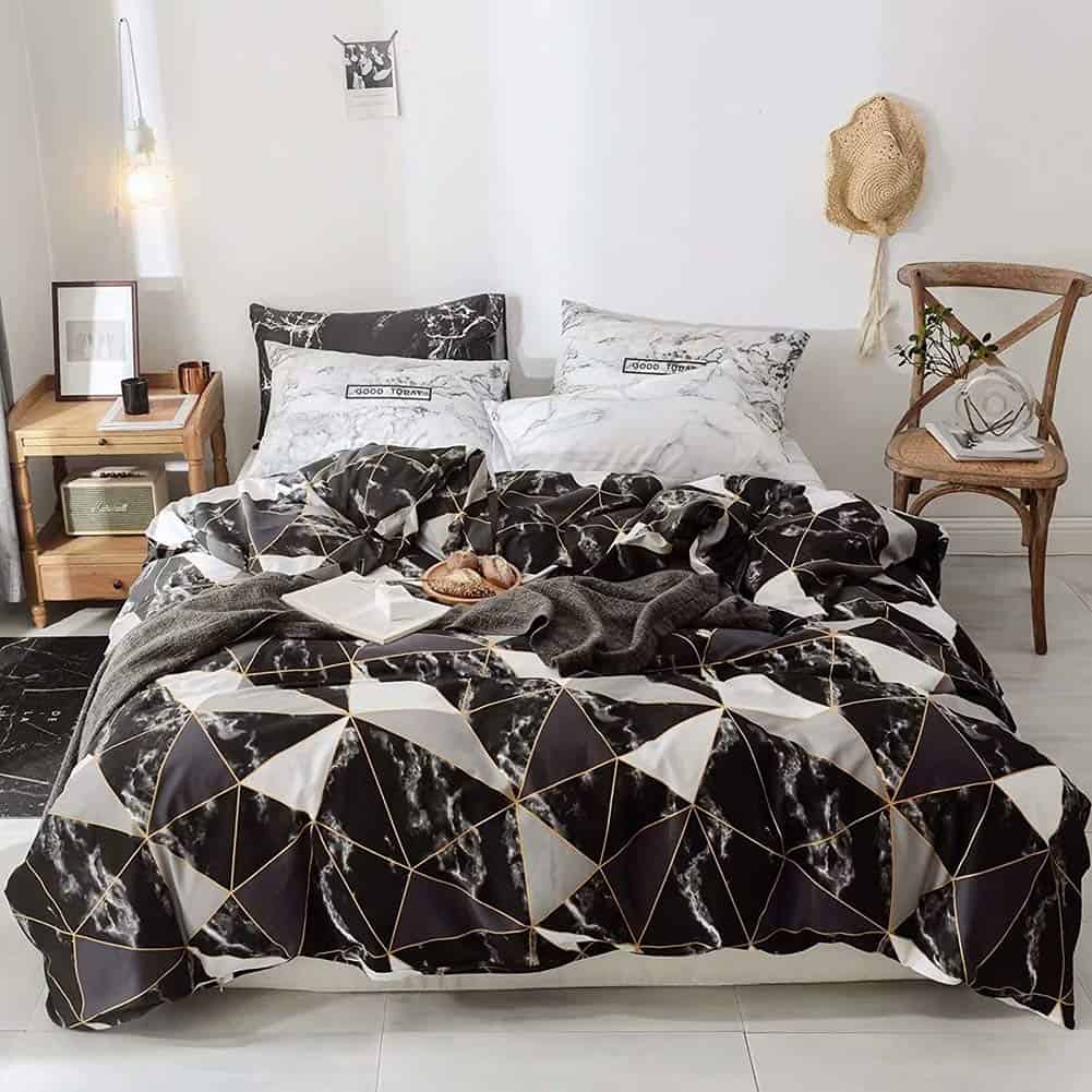 Tejido suave: Tela de algodón y relleno de microfibra suave. Transpirable, amigable con la piel, ligero. Cómodo para el juego de edredón de mármol negro.