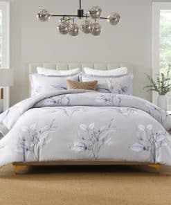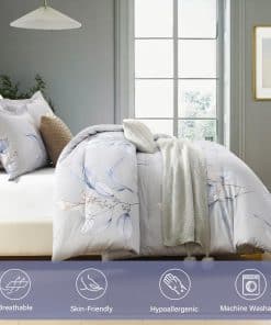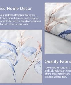 Juego de edredón queen de Finlonte, hecho con algodón de fibra larga 100% en la superficie y relleno de poliéster en el interior, proporciona una suavidad increíble para una comodidad tipo nube que te mantendrá acogedor durante todo el año. El diseño en color gris azul y blanco, estilo vintage y moderno, con patrón floral y de plantas, aporta un toque único y lujoso a tu habitación. Con telas exquisitas y costuras delicadas, añade un atractivo estético sin precedentes a tu espacio, creando una atmósfera discreta pero lujosa y digna. El juego de edredón de 3 piezas incluye 1 edredón (90″ x 90″) y 2 fundas de almohada (20″ x 26″ + 2″) . Con diseño acolchado para una distribución uniforme del relleno en su interior y costuras ajustadas que evitan que el relleno se desplace, es ideal para uso durante todo el año, manteniéndote cálido en invierno y fresco en verano. Fácil de mantener, lavar a máquina en ciclo suave con agua fría, secar al sol o planchar para una restauración como nueva, no usar lejía para mantener el color vibrante. Certificado Standard 100 por OEKO-TEX por cumplir con los criterios de prueba más altos para sustancias químicas nocivas, es la mejor opción para personas con alergias.