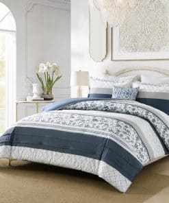 Juego de Edredón de Algodón SahSahCasa Tamaño -Azul Marino/G