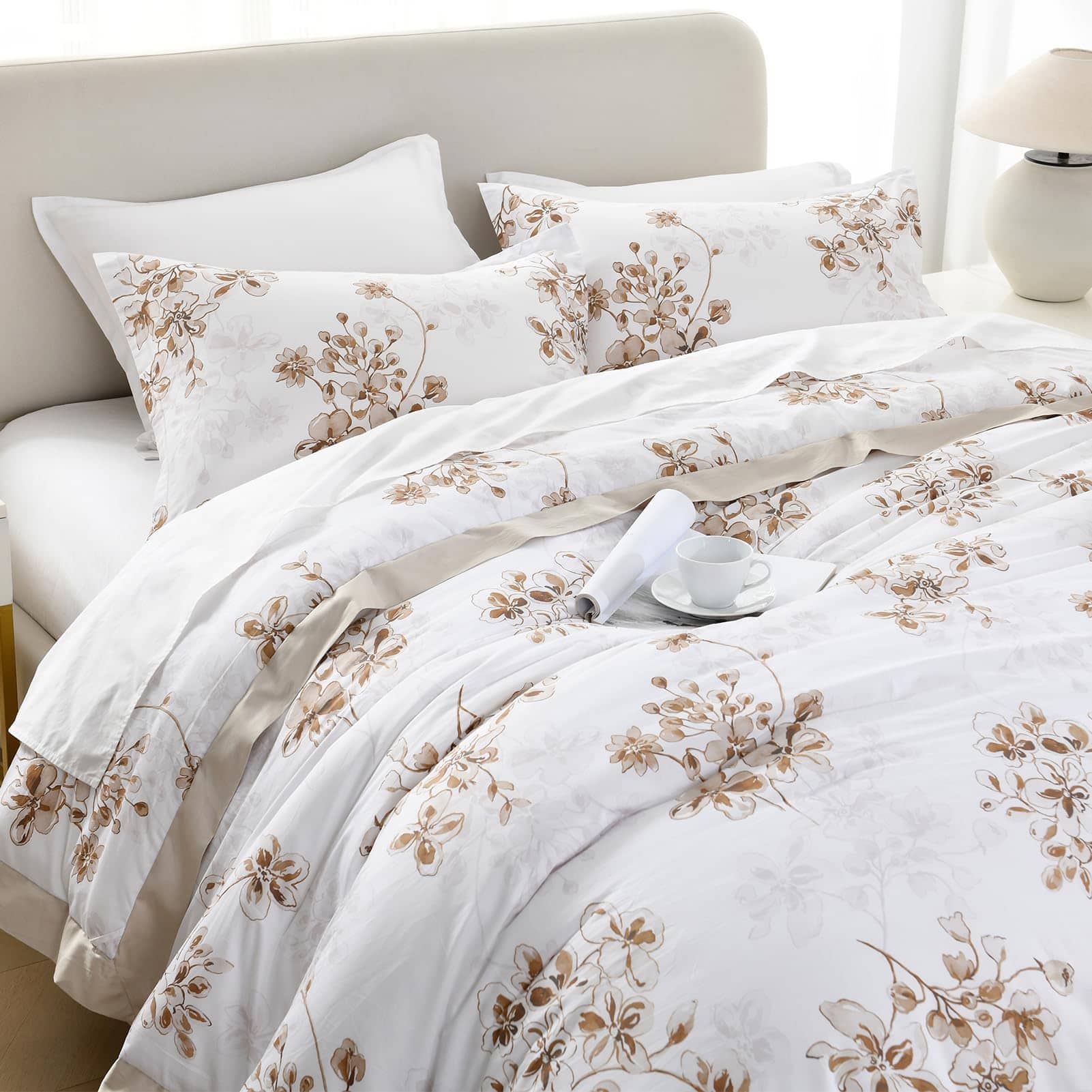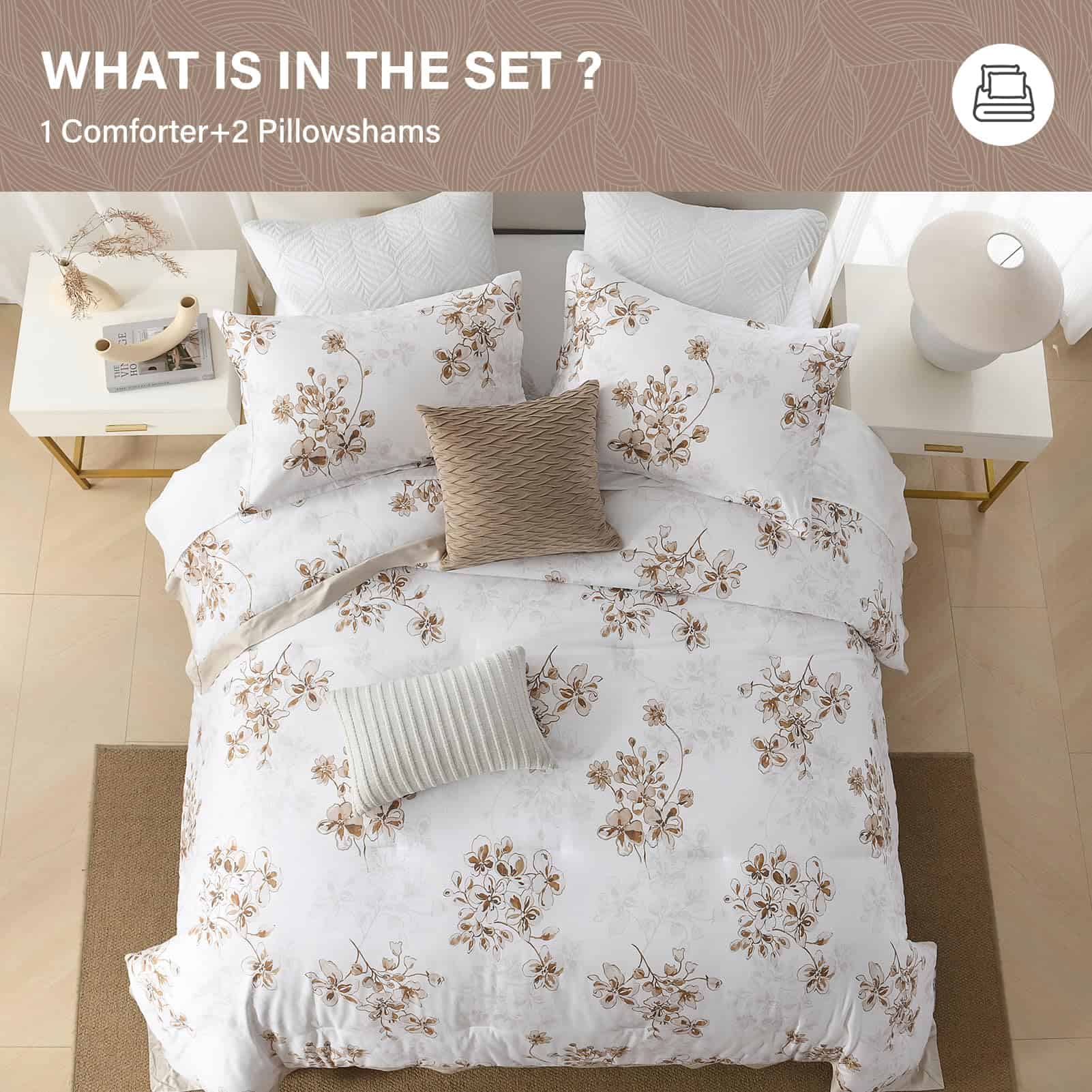 2. Diseños únicos: Juego de edredón lujoso con diseños de bordes anchos. Ambos lados diseñados con diferentes patrones florales chic en tonos marrones. Este edredón agrega un toque de moda y elegancia artística a su habitación. Dale a tu habitación un nuevo aspecto. Ideal para dormitorio, habitación principal, habitación de invitados, dormitorio universitario, interiores, acampadas y vehículos recreativos.