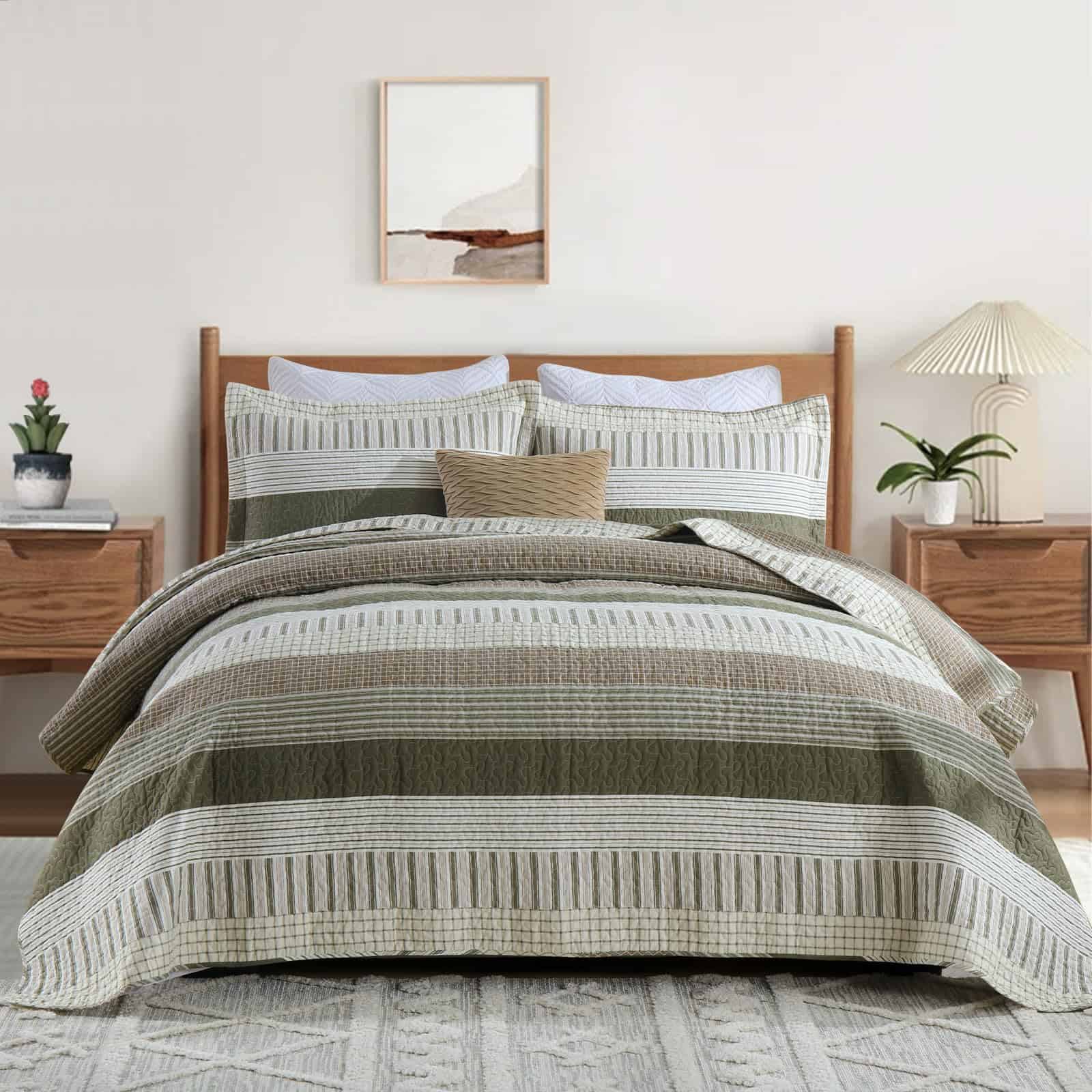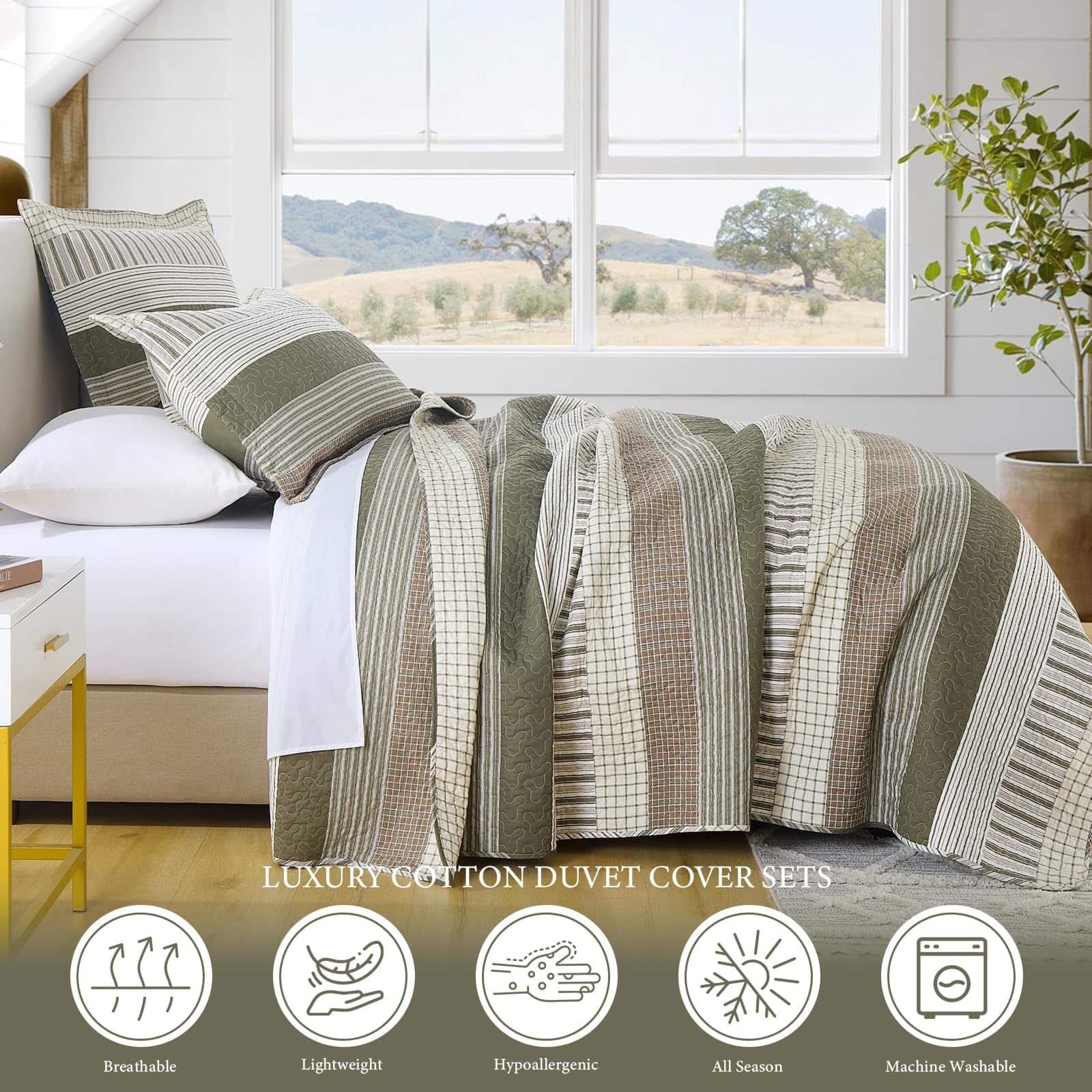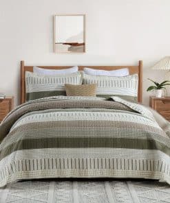 Uniclinens Cotton Quilt Set Queen Size ofrece un juego de edredón de alta calidad que es ideal para cualquier hogar. Hecho de 100% algodón natural, este juego de edredón es suave, cómodo y hipoalergénico, lo que lo hace perfecto para personas con piel sensible. El diseño clásico del juego de edredón combina patrones botánicos y de rayas, lo que lo convierte en una adición elegante y versátil a cualquier decoración de dormitorio. El juego de edredón es adecuado para su uso durante todo el año, ya que su diseño ligero proporciona cobertura cómoda para verano y calor adaptativo para invierno. El set incluye un edredón de tamaño Queen y 2 fundas de almohada a juego, lo que lo hace perfecto para cualquier cama tamaño Queen. Además, el juego de edredón es fácil de cuidar, ya que se puede lavar a máquina en agua fría y secar a baja temperatura, manteniendo su suavidad y viveza de colores durante mucho tiempo. Añade este hermoso juego de edredón a tu dormitorio y disfruta de comodidad y estilo.