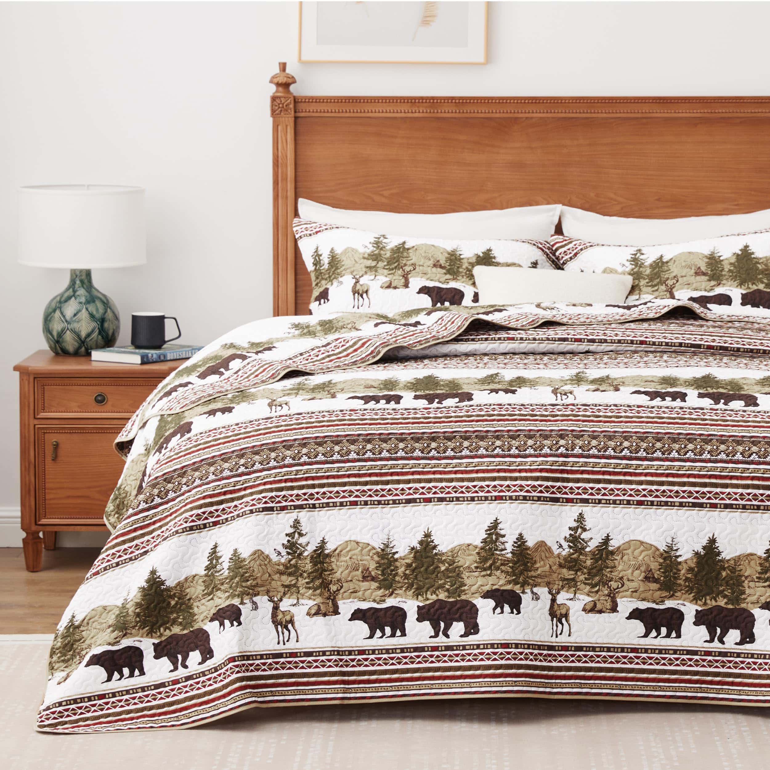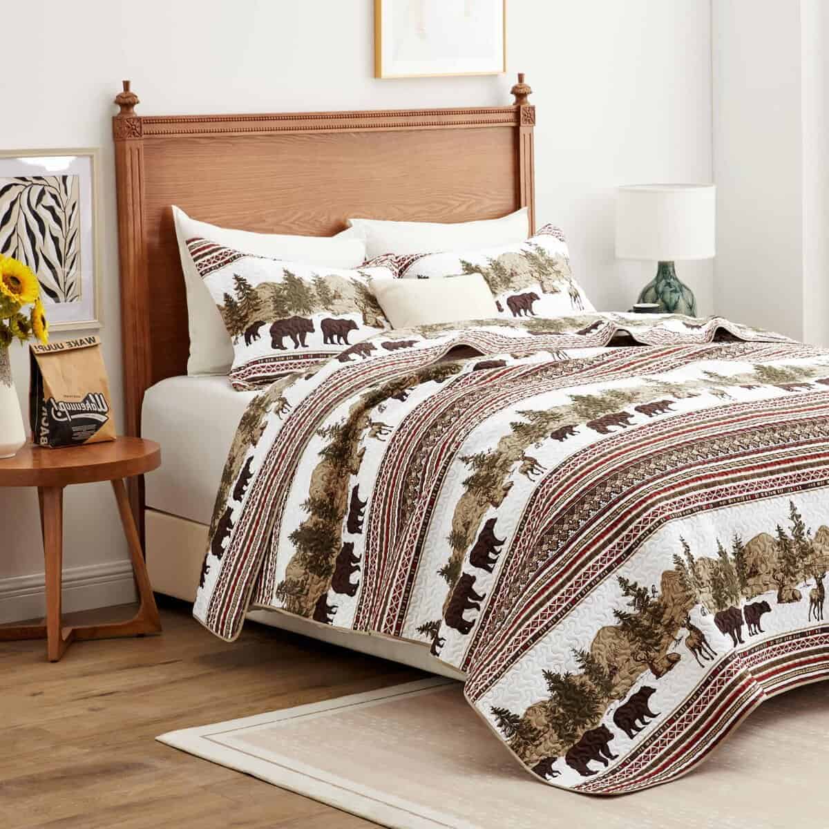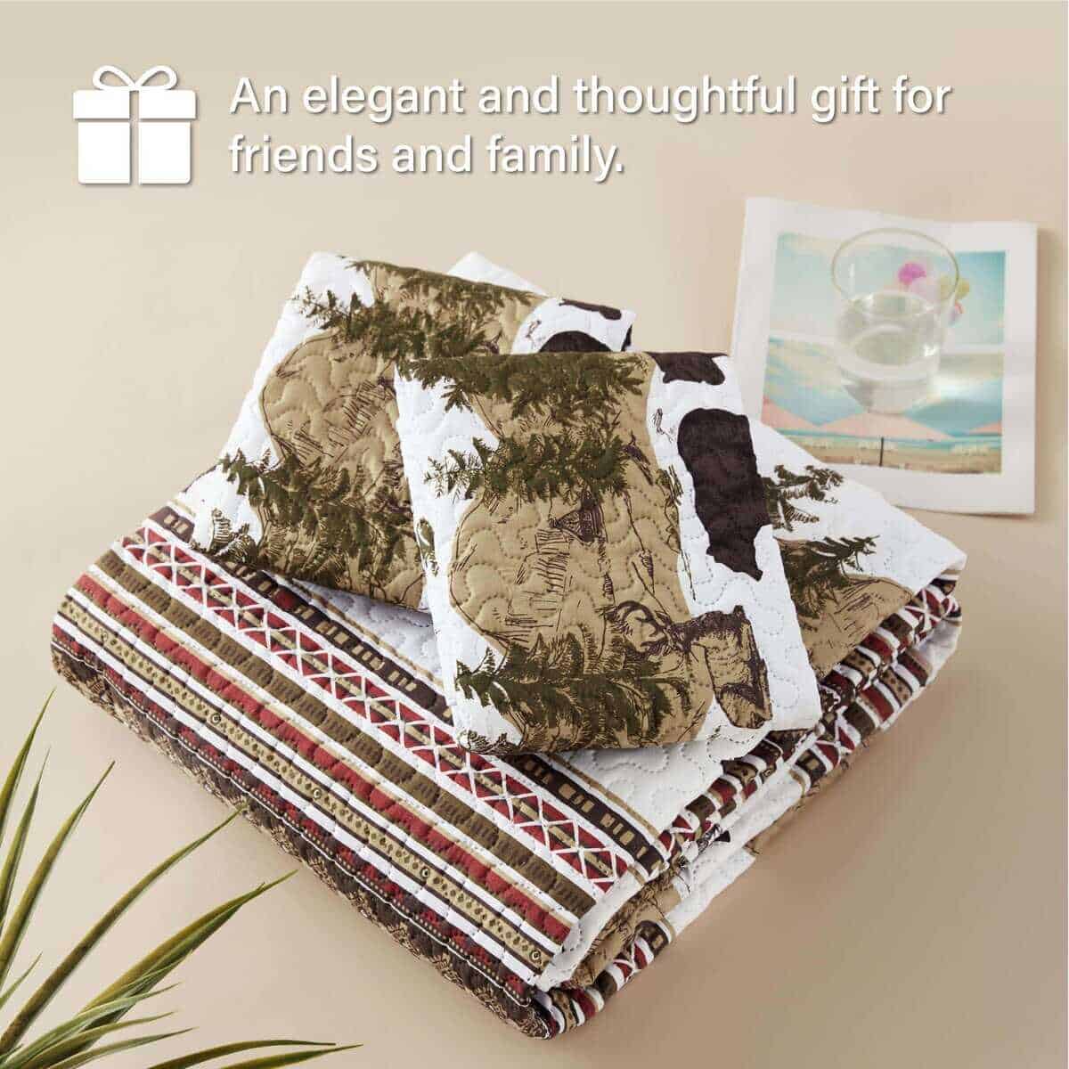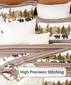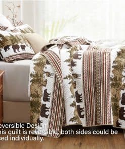 Juego de Edredón de Cabaña Navideña PPOLCA para Cama Queen es la perfecta adición rústica para su hogar. Este juego de edredón de alta calidad de 3 piezas está hecho de material de microfibra súper suave y cuenta con tecnología de estampado ultrasónico que protege el relleno interior de manera superior a la costura tradicional. El diseño reversible lo hace ideal para todas las estaciones, con un diseño de patchwork en un lado y un diseño de color sólido en el otro. Puede lavarse a máquina en frío y secarse a baja temperatura para un uso prolongado y disfrute. Además, este versátil juego de edredón de cabaña puede usarse como colcha, edredón o manta, y es perfecto para decorar su dormitorio, habitación de invitados, habitación de niños, cabaña o casa de campo. También es un regalo maravilloso para bodas, cumpleaños, Navidad, otras fiestas y muchas otras ocasiones. El juego de edredón de cabaña incluye 1 edredón queen size (90″ x 96″) y 2 fundas de almohada (20″ x 26″+2″) para completar su conjunto de cama.