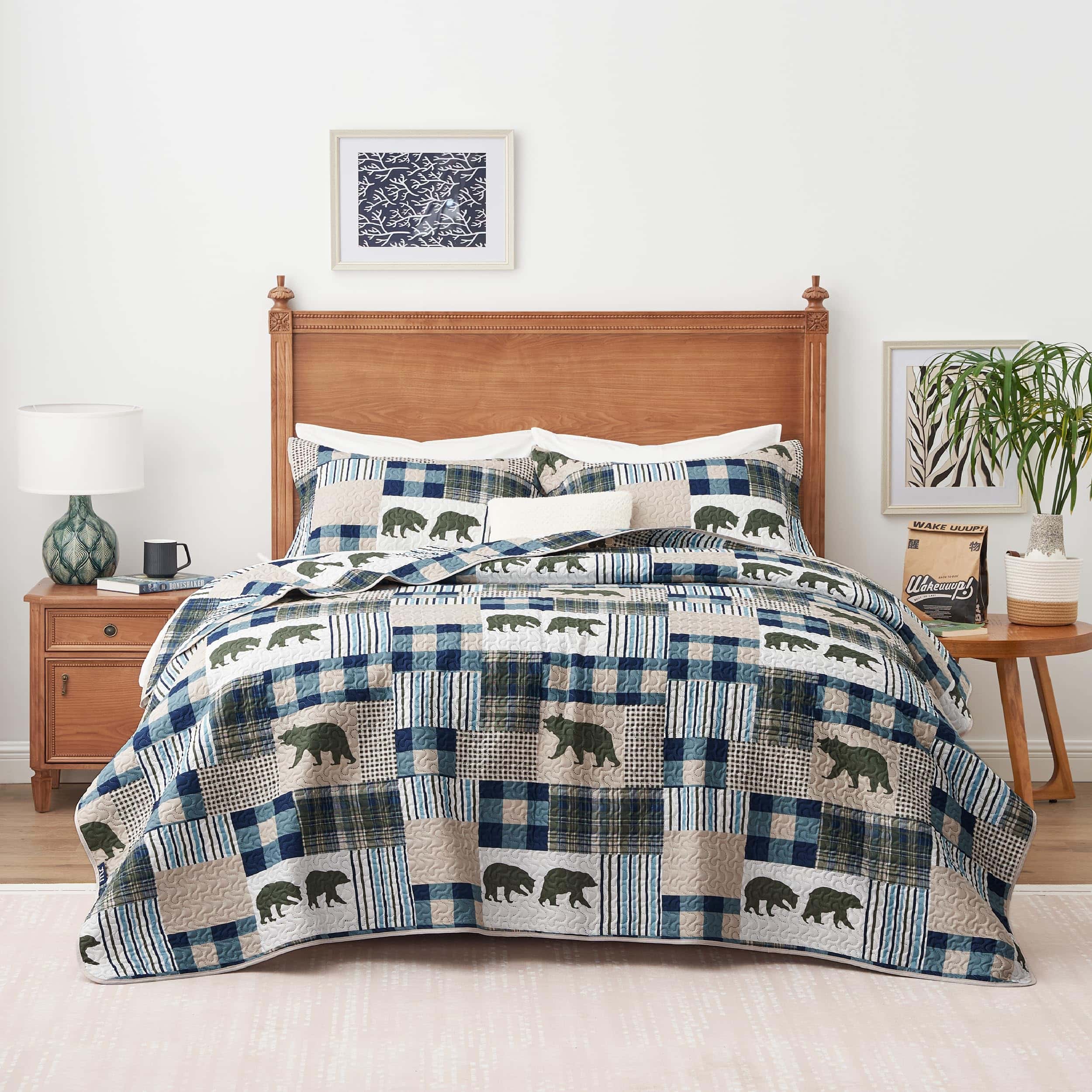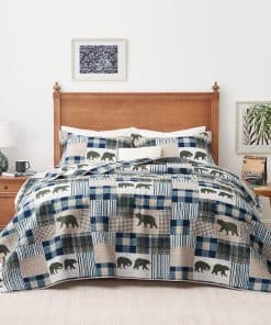 Juego de Edredón de Cabaña Navideña PPOLCA Queen, 3 Piezas, Edredón Reversible Ligero para Todas las Estaciones con Estampado de Oso, Juego de Cama de Cabaña Tamaño Queen con 2 Fundas, Edredón Rústico Cubrecama. Características: 1. Alta Calidad 3 Piezas de Juego de Edredón de Patchwork: Hecho de material de microfibra súper suave, la tecnología de grabado ultrasónico puede proteger el relleno interior más que la costura tradicional. No se deshilachará después de muchos lavados y se puede usar durante muchos años. 2. Diseño Reversible para Todas las Estaciones: La ropa de cama rústica presenta un diseño reversible con un estampado de patchwork en el frente y un diseño de color sólido en el otro lado, este edredón rústico es adecuado para su uso durante todo el año. 3. Lavable a Máquina: Lavar a máquina en frío y secar a baja temperatura. Material de cama de cabaña ligero de alta calidad diseñado para un uso y disfrute duraderos. 4. Multifuncional: El juego de edredón de cabaña puede usarse como colcha o cubrecama o edredón para brindar calidez y suavidad. Es perfecto para decorar su dormitorio, habitación de invitados, habitación infantil, cabaña o casa de campo. También puede ser un maravilloso regalo para bodas, cumpleaños, Navidad, otras fiestas y muchas otras ocasiones. 5. Lo que Puede Obtener: 2 piezas de juego Twin incluyen 1 edredón (68″ 96″), 1 funda de almohada (20″ 26″+2″); 3 piezas de juego Queen incluyen 1 edredón (90″ 96″) y 2 fundas de almohada (20 26″+2″); 3 piezas de juego King incluyen 1 edredón (106″ 96″), 2 fundas de almohada (20″ 36″+2″)