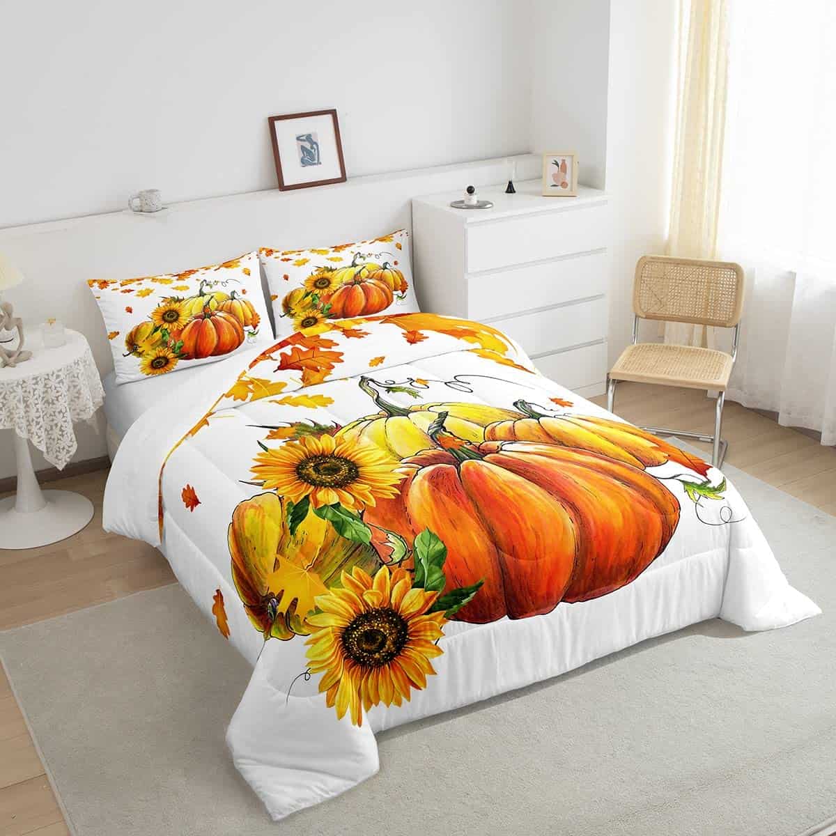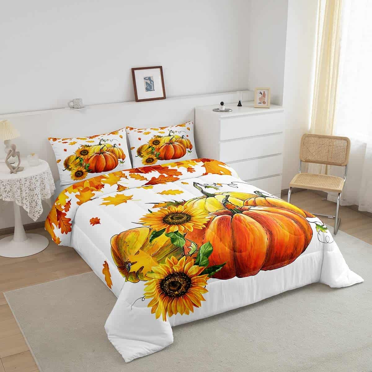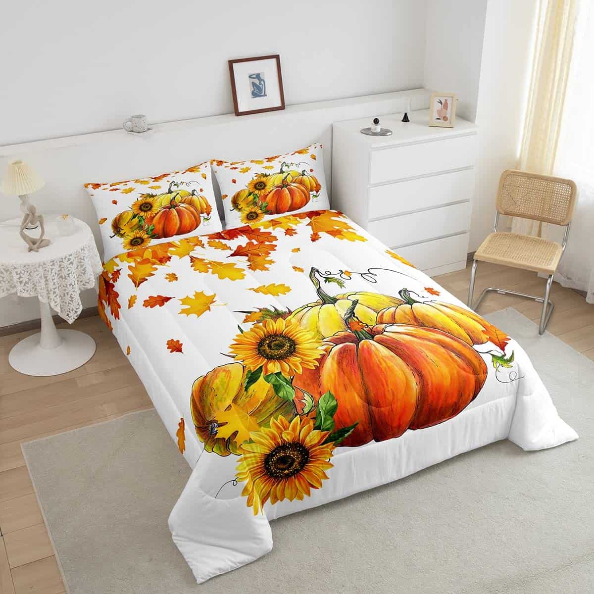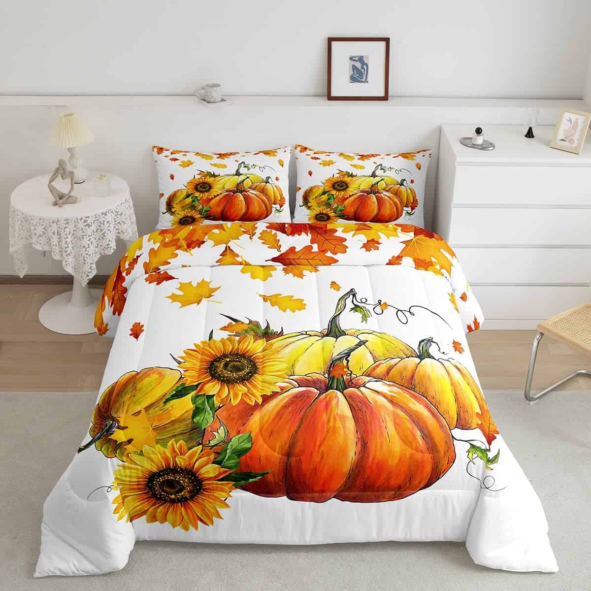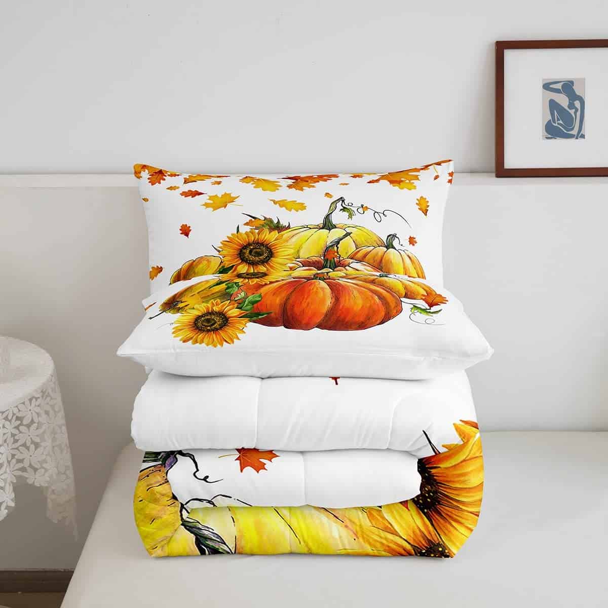 Juego de edredón de calabazas de otoño para cama King Size