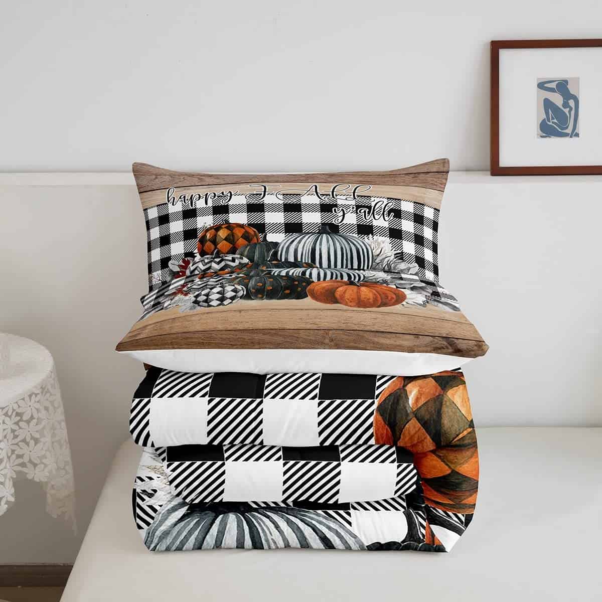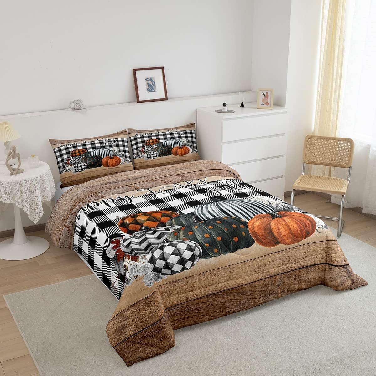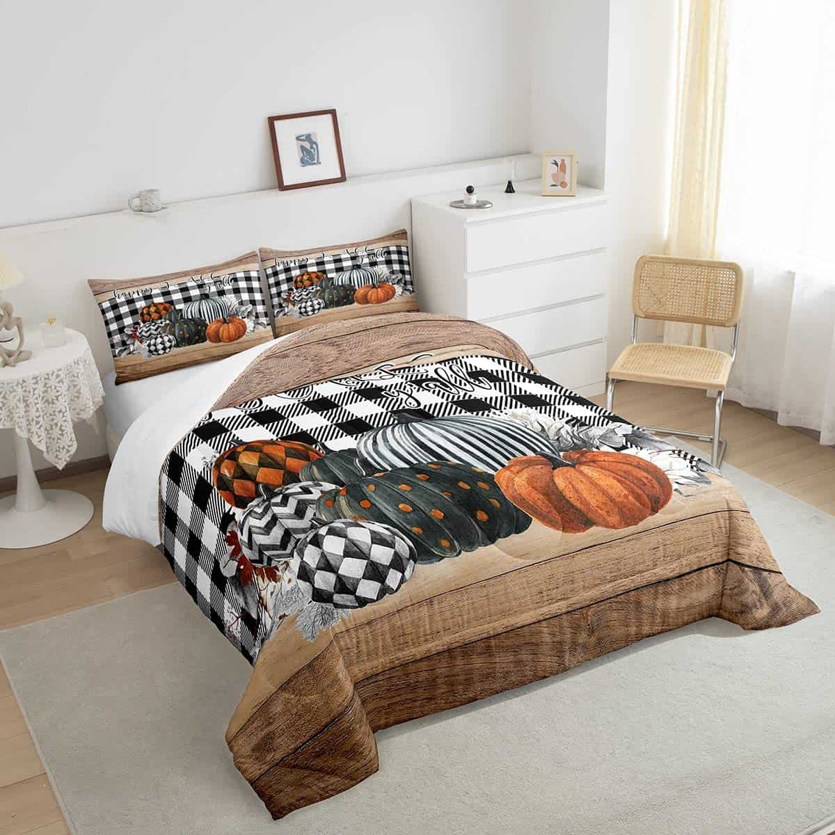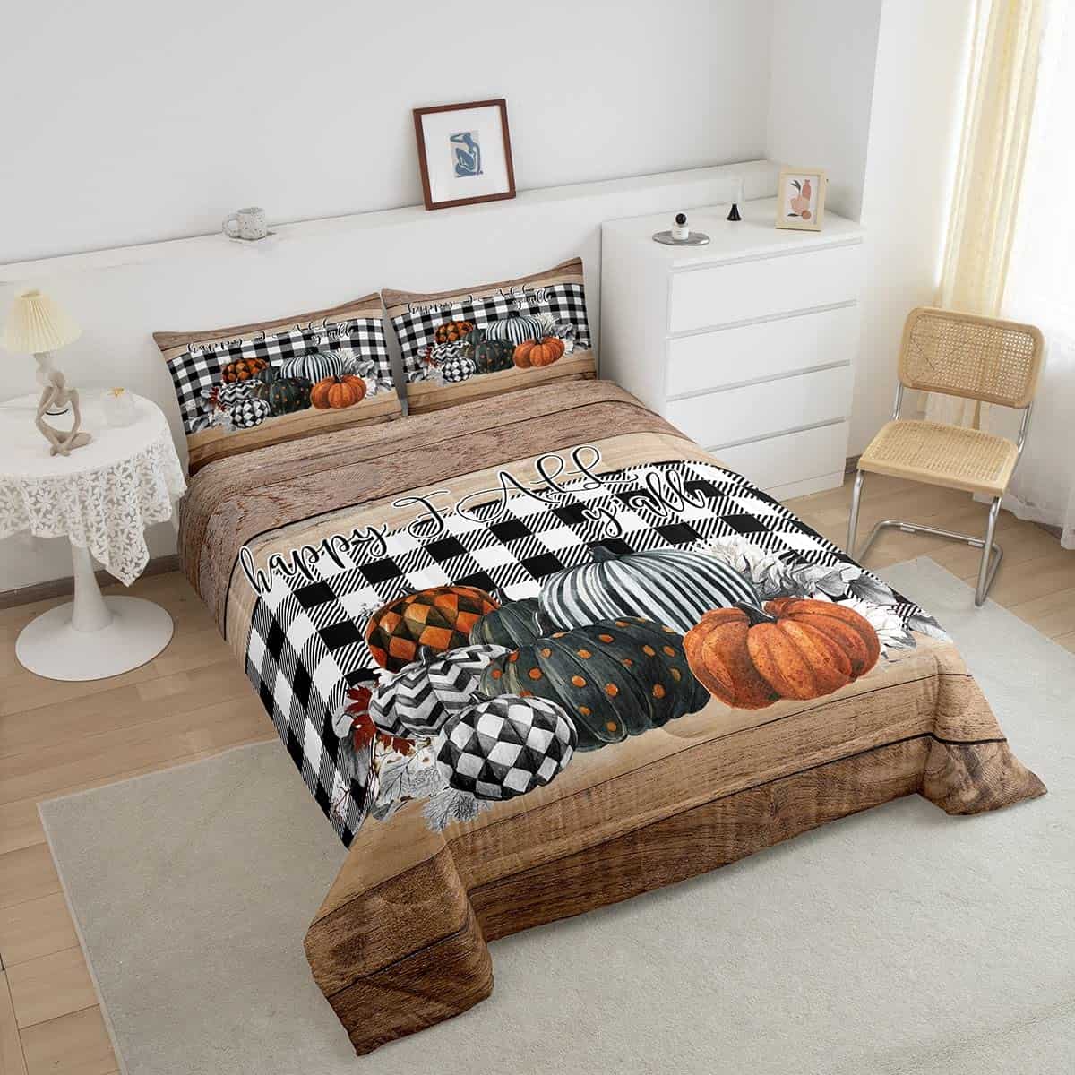 Juego de edredón de calabazas de otoño tamaño king tema de