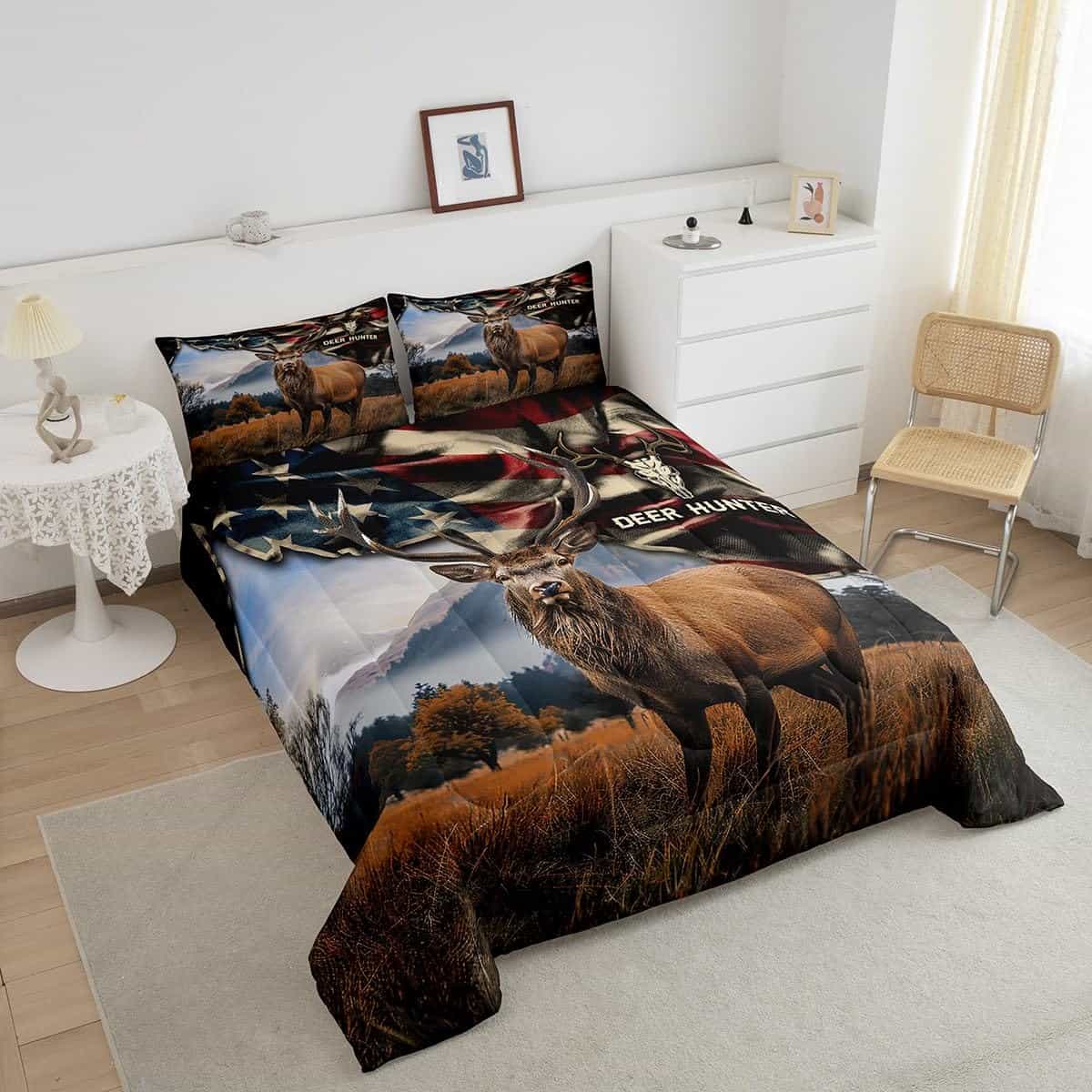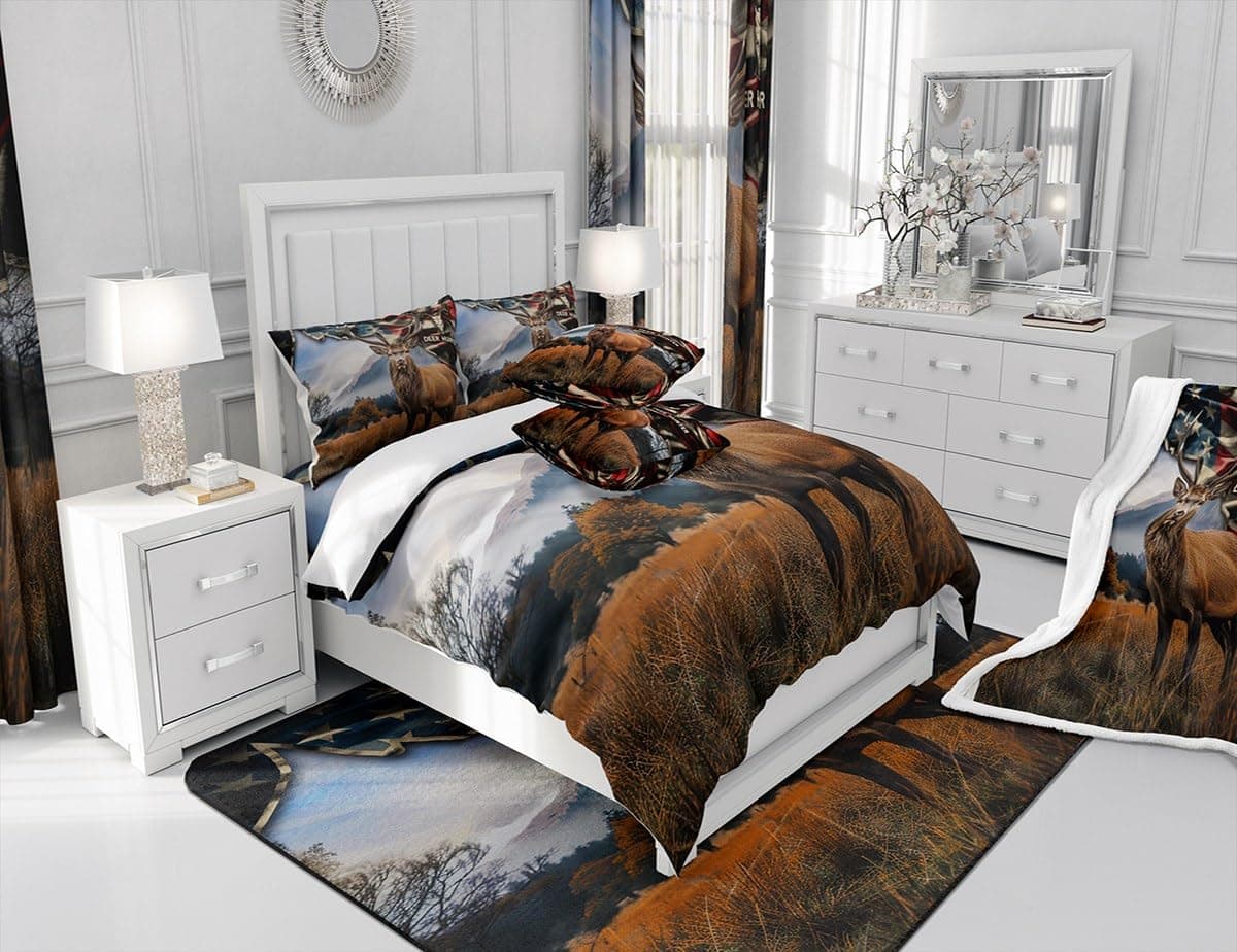 Juego de edredón de caza de ciervos tamaño King Juego de