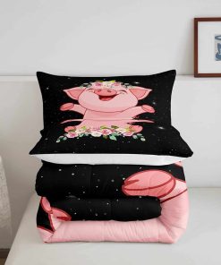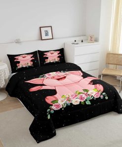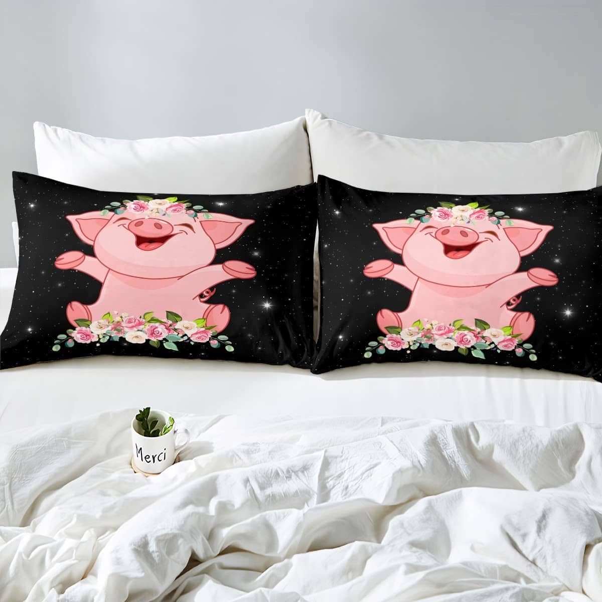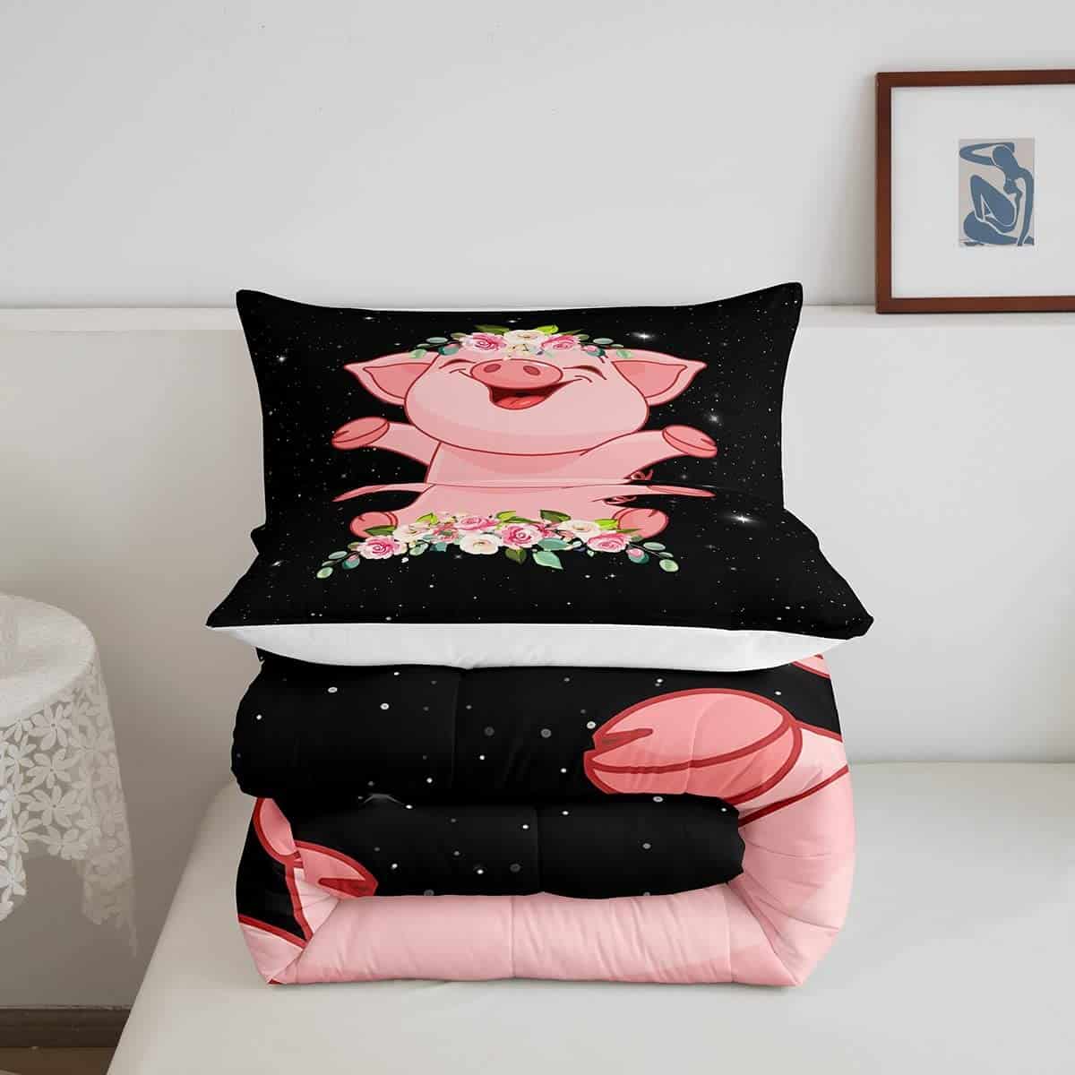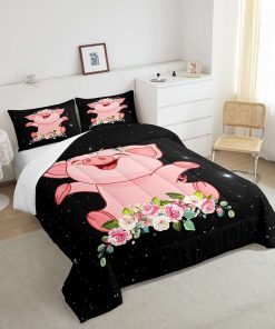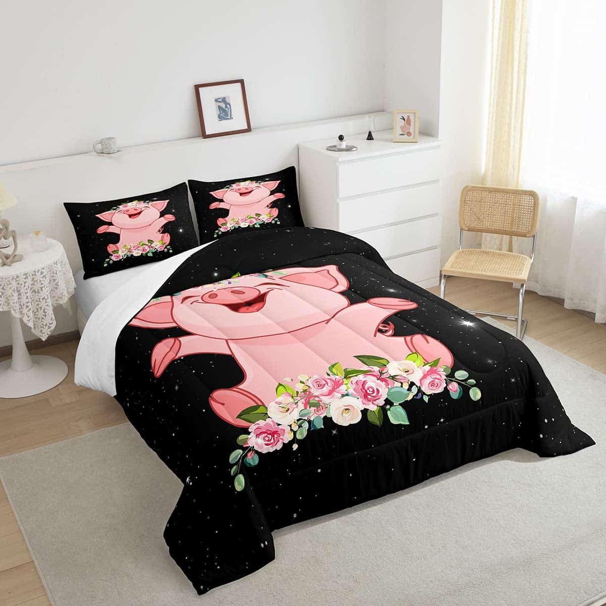 Juego de Edredón de Cerdo Rosa Erosebridal para Niñas