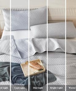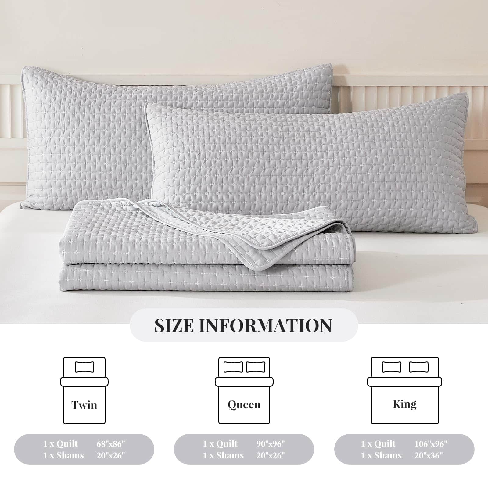 1. Material Premium WARMDERN juego de edredón gris es ultra suave y amigable con la piel, el conjunto de funda de cama acolchado le brindará comodidad toda la noche. 2. Decoración de Hogar Clásica Diseño minimalista con patrón de acolchado cruzado en nuestro juego de edredón gris. Exquisita costura, proceso especial de teñido que no se desvanece fácilmente y mantiene el color brillante. Los juegos de edredón de color sólido se adaptan a una variedad de estilos de hogar y serán una decoración perfecta para sus dormitorios, habitaciones infantiles o habitaciones de invitados. 3. Múltiples Ocasiones El juego de edredón ligero WARMDERN es adecuado para todas las estaciones. Este edredón de verano con función refrescante es muy transpirable, especialmente para quienes tienen calor al dormir y sudoración nocturna. También se puede utilizar con otro juego de ropa de cama como colchas o cubrecamas para proporcionar calor adicional en tiempo frío. 4. Instrucciones de Cuidado Para mantener una buena experiencia, se recomienda encarecidamente lavar este edredón antes del primer uso. Lavar por separado, apto para lavar a máquina en agua fría en ciclo suave. No usar lejía, lavar suavemente en agua fría y secar a temperatura baja si es necesario. 5. Lo Que Puede Obtener Este juego de edredón WARMDERN certificado estándar 100 por OEKO-TEX viene con 1 edredón queen (90″ x 96″) y 2 fundas de almohada (20″ x 26″). WARMDERN siempre tiene como objetivo obtener la confianza y satisfacción de cada cliente con un servicio atento. Si tiene alguna pregunta, por favor contáctenos. El reembolso o reemplazo está disponible dentro de los 30 días.