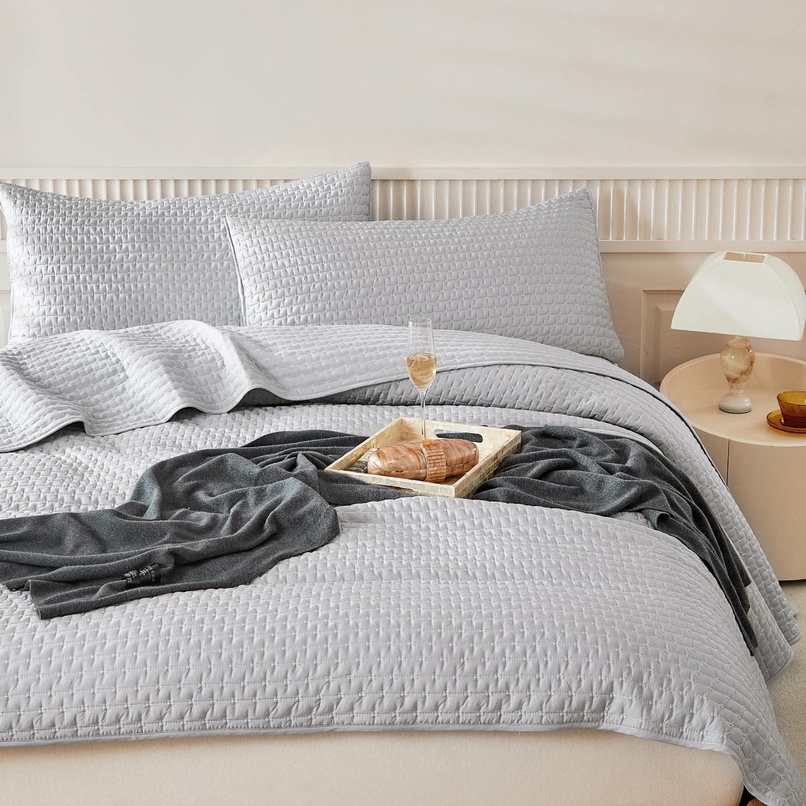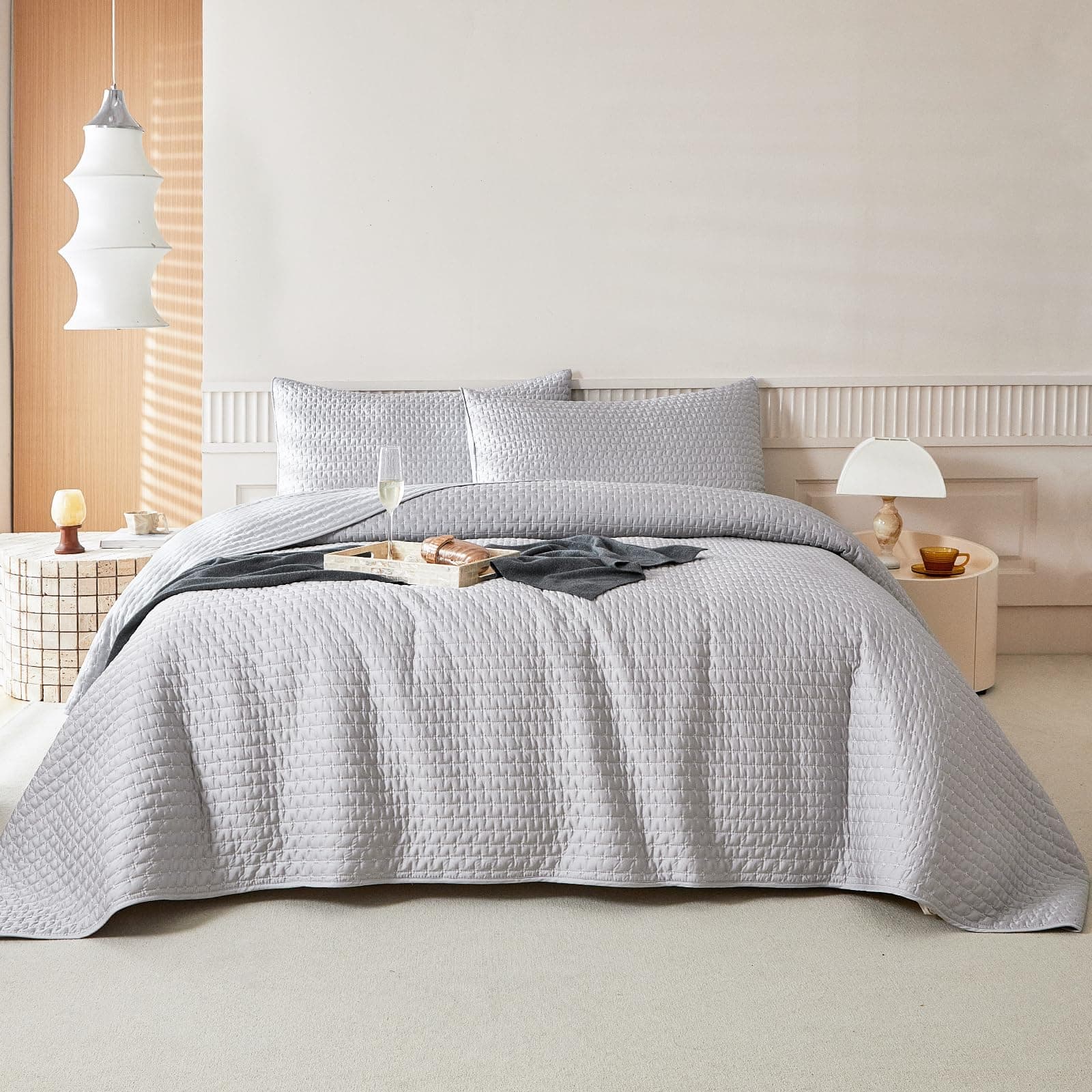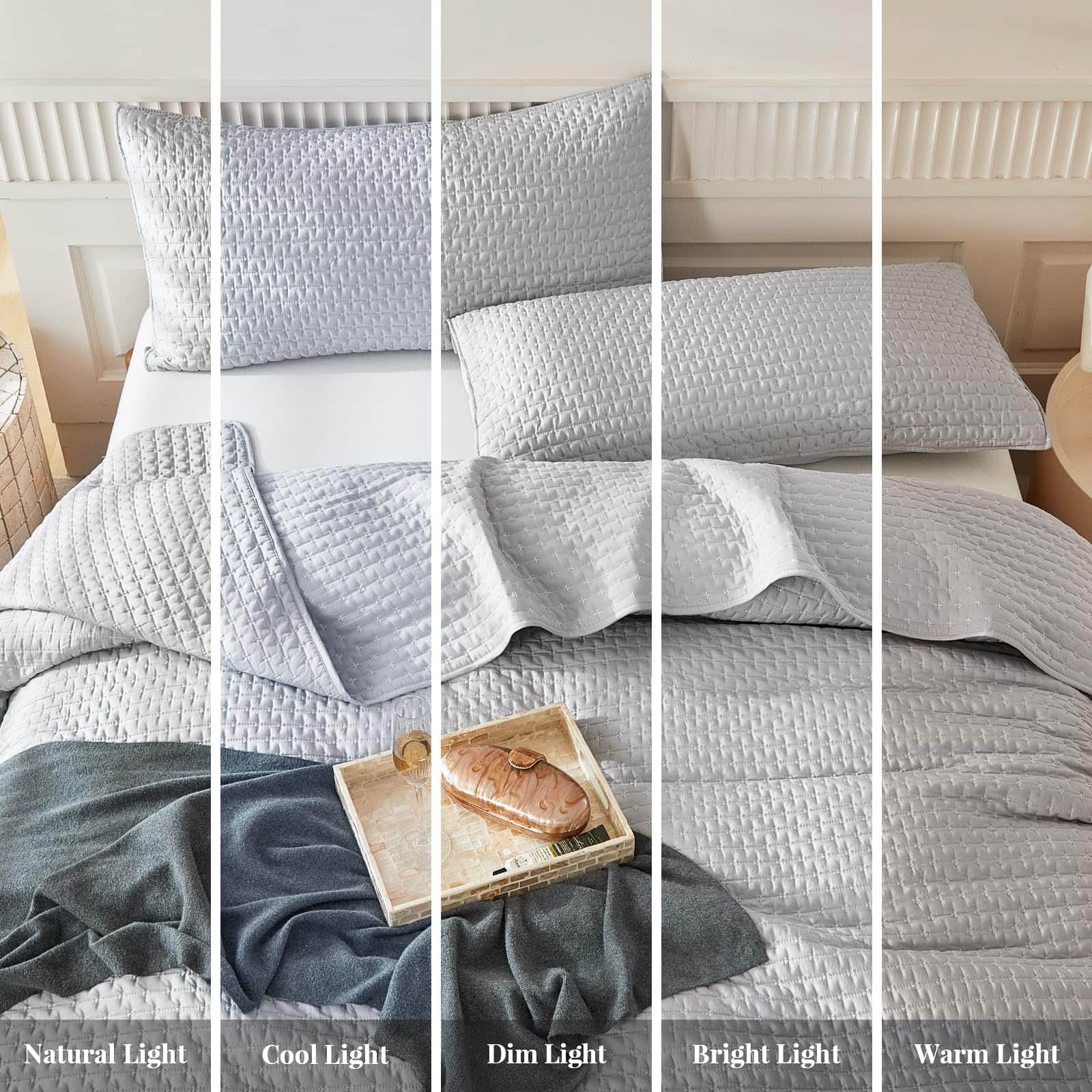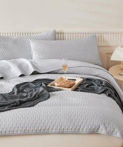 Juego de Edredón de Color Gris Claro WARMDERN Tamaño Queen,
